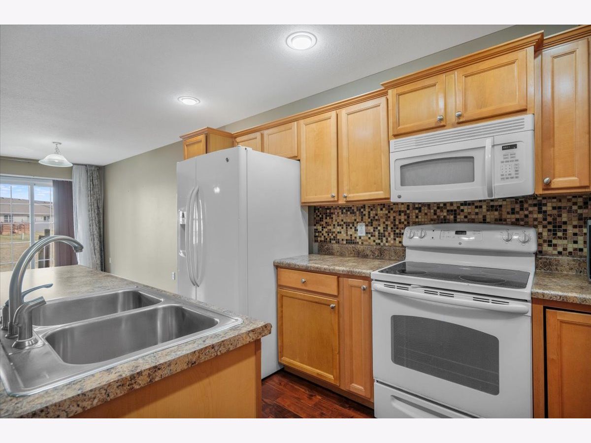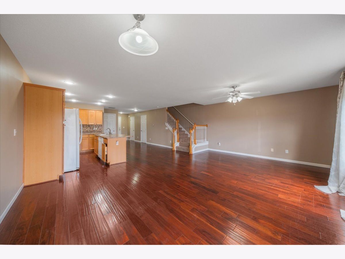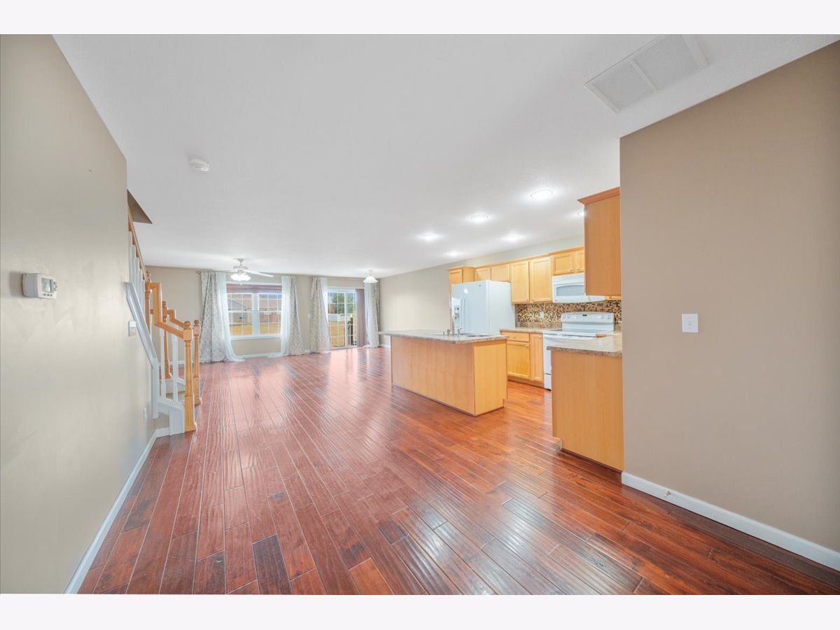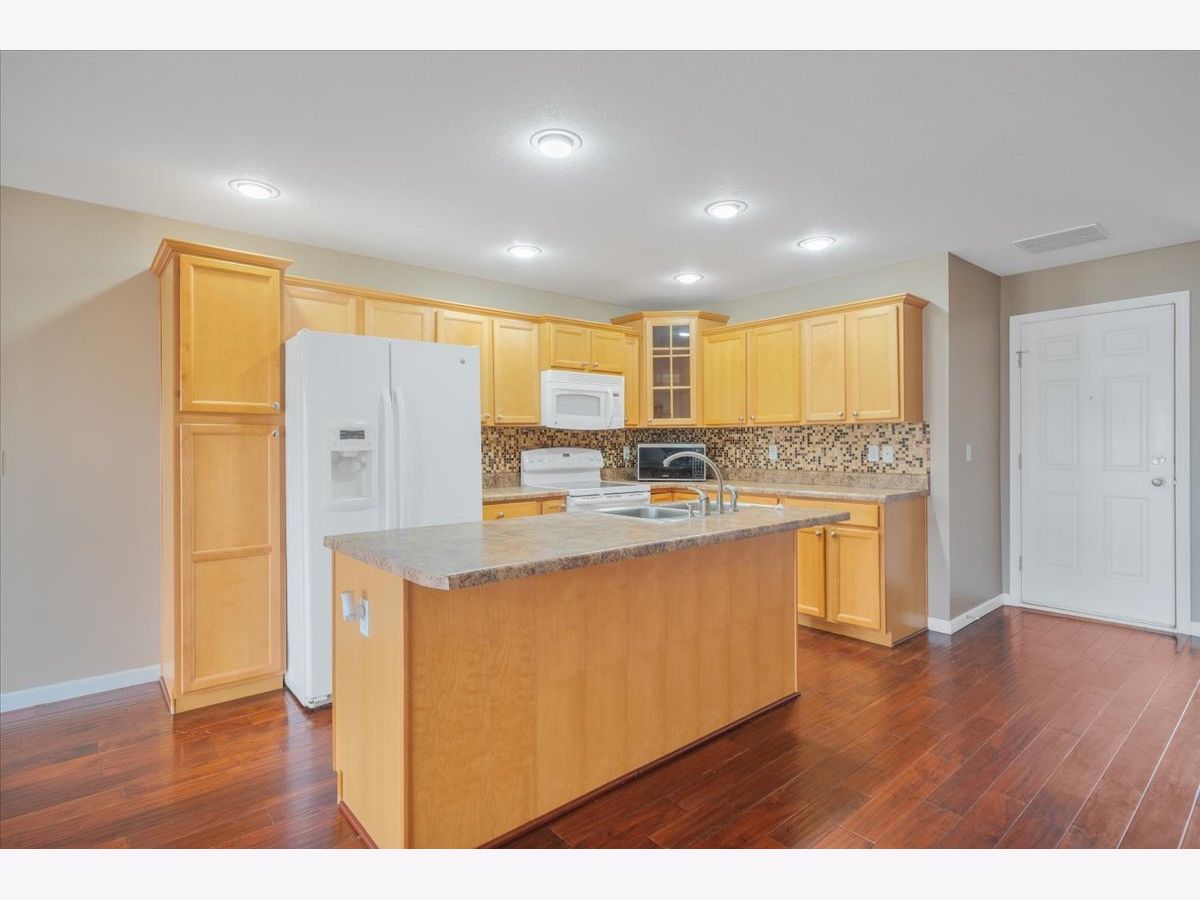 Gorgeous modern updated zerolot townhouse in Boulder Ridge with open layout and abundant space. Main level features newer hardwood floors, spacious living and dining areas, kitchen with island and breakfast bar, and convenient half bath. Backyard opens to a large green space with peaceful lake views. Upstairs offers 3 bedrooms, a loft-style family room, and 2nd-floor laundry. Primary suite includes a walk-in closet and private bath; two additional bedrooms share a full bath. Enjoy nearby Sunset Ridge Park, walking trails, tennis/pickleball and basketball courts, and open recreation areas. Don't miss this opportunity to make it yours!