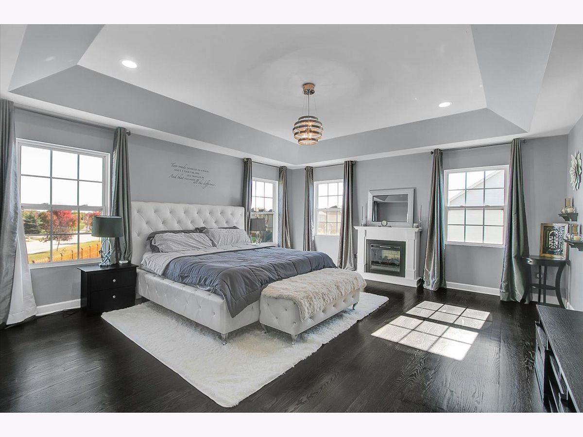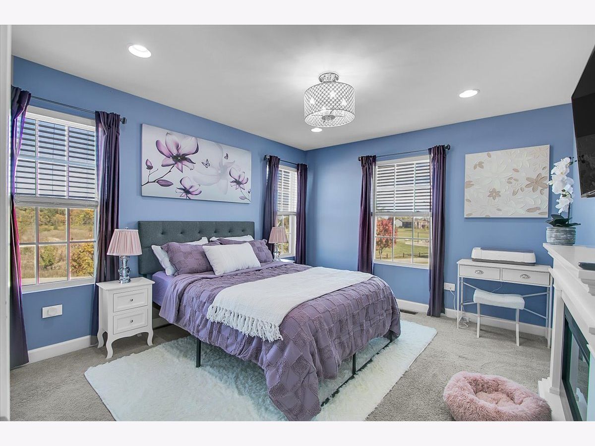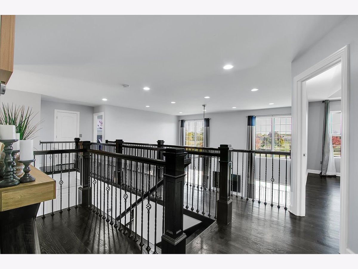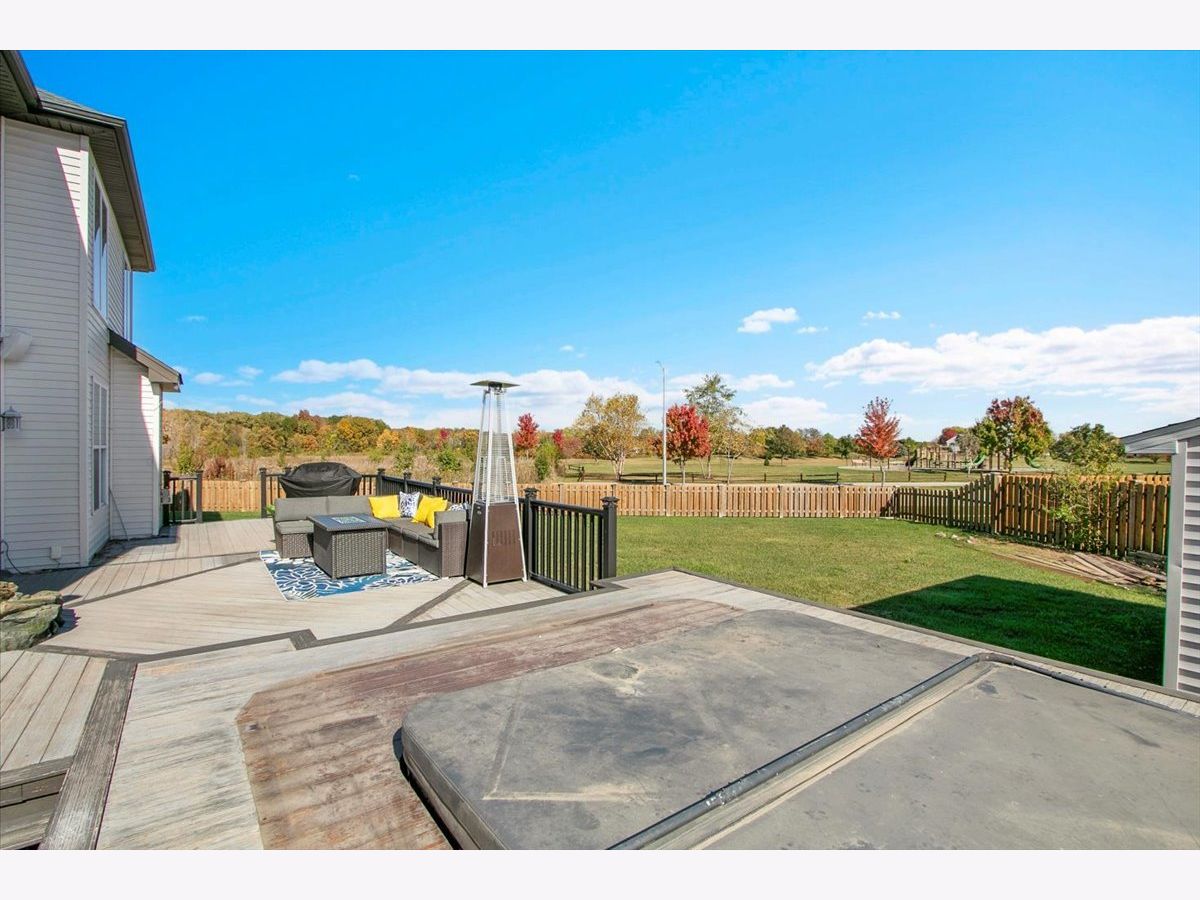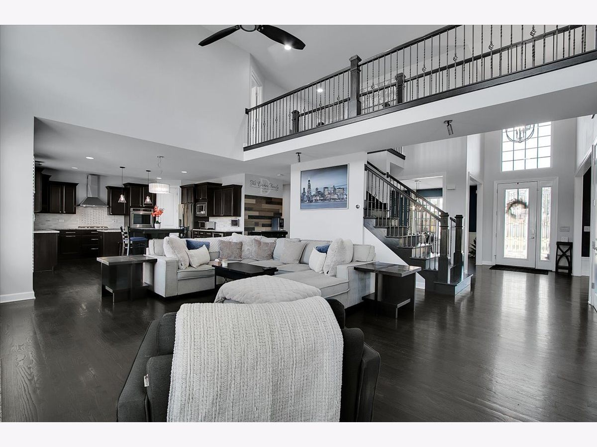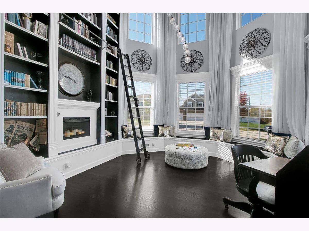 Our home is a custom built model and no similar homes are in the subdivision. We've been the only owners. The home is on a premium corner lot and overlooks the park from the backyard. There's a 3 car driveway with curb cutout. The garage floor has custom marble epoxy flooring and a mini split system for a/c and heat. There's a cedar fence around the backyard and a deck with hot tub. There's an open field on one side of the property, which the kids use for riding dirt bikes and ATVs. We have a two story library in the turret, with 18 ft custom built bookcases, 10 windows for natural sunlight and a drop chandelier. We also have can/recessed lighting in the library, 1st floor office, kitchen, family room and all 4 bedrooms. There's custom accent tile work behind the stove in the kitchen. The master bedroom has a stand up shower as well as a jetted deep soak 6' tub and custom tile work on the walls. There's a first floor office with double doors and a walk-in closet that could be used as a 5th bedroom. The second bedroom upstairs offers a walk-in closet with a bonus room attached. The house has real oak hardwood floors throughout the first floor, on the stairs, on the catwalk and in the master bedroom. There's a full unfinished basement with rough in plumbing. I'll send the blueprints and plat of survey for all dimensions/square footage.