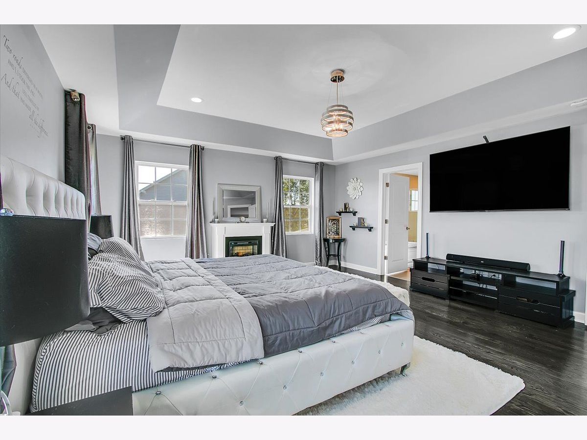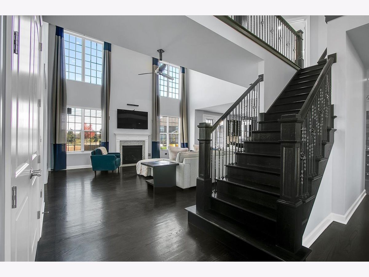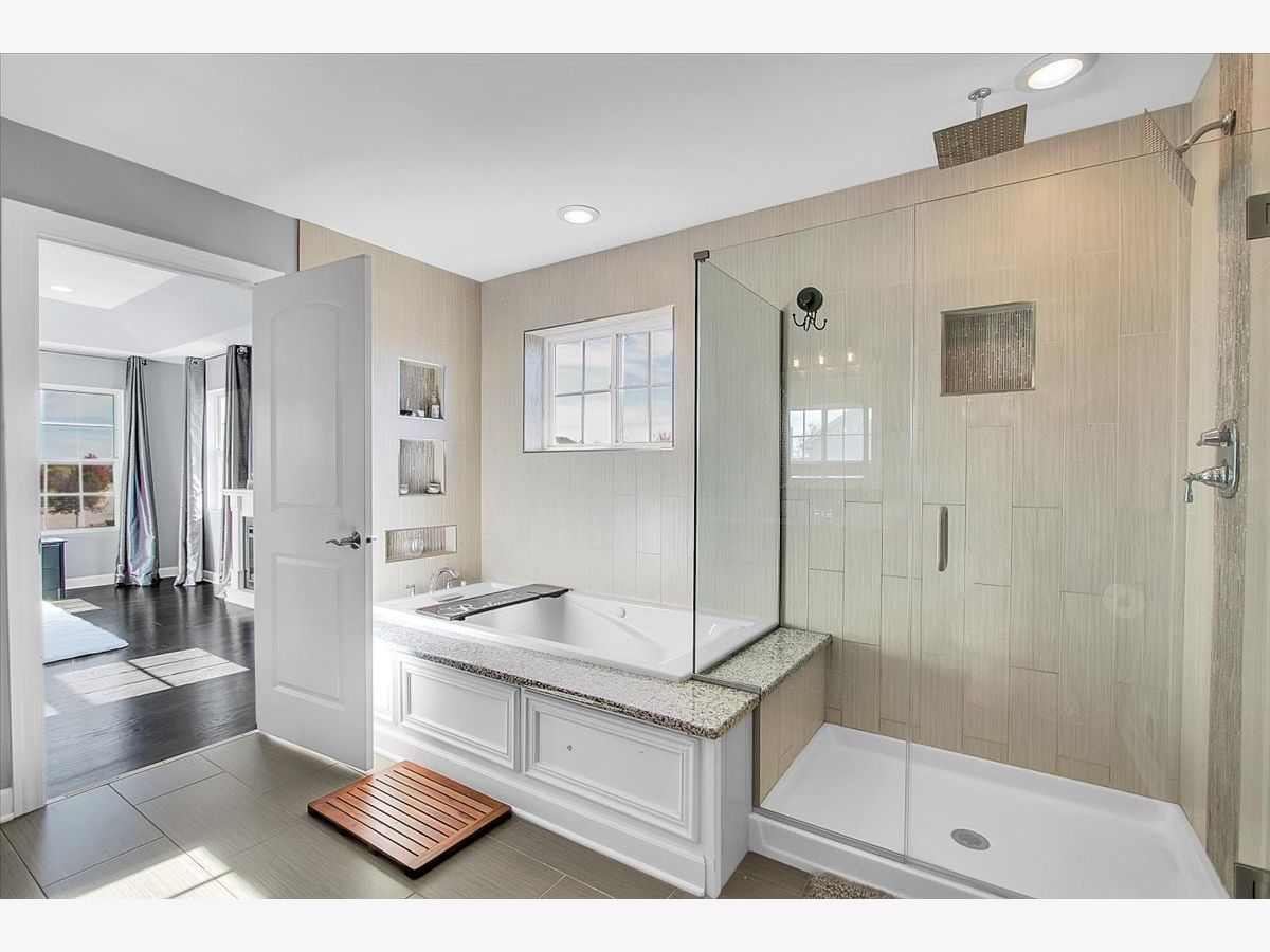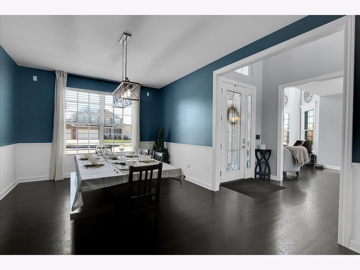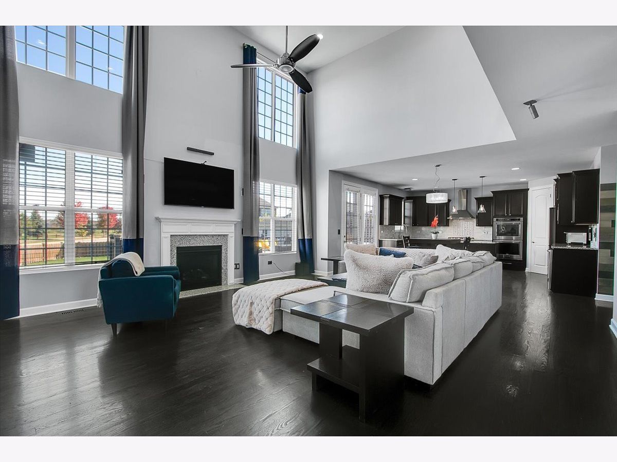 Our home is a custom built model and no similar homes are in the subdivision. We've been the only owners. The home is on a premium corner lot and overlooks the park from the backyard. There's a 3 car driveway with curb cutout. The garage floor has custom marble epoxy flooring and a mini split system for a/c and heat. There's a cedar fence around the backyard and a deck with hot tub. There's an open field on one side of the property, which the kids use for riding dirt bikes and ATVs. We have a two story library in the turret, with 18 ft custom built bookcases, 10 windows for natural sunlight and a drop chandelier. We also have can/recessed lighting in the library, 1st floor office, kitchen, family room and all 4 bedrooms. There's custom accent tile work behind the stove in the kitchen. The master bedroom has a stand up shower as well as a jetted deep soak 6' tub and custom tile work on the walls. There's a first floor office with double doors and a walk-in closet that could be used as a 5th bedroom. The second bedroom upstairs offers a walk-in closet with a bonus room attached. The house has real oak hardwood floors throughout the first floor, on the stairs, on the catwalk and in the master bedroom. There's a full unfinished basement with rough in plumbing. I'll send the blueprints and plat of survey for all dimensions/square footage.