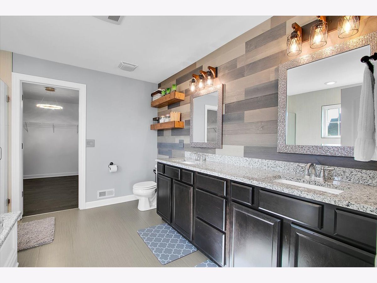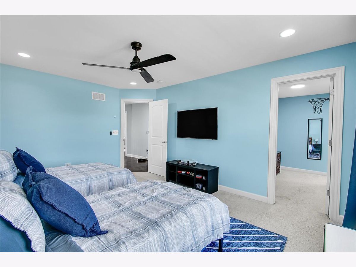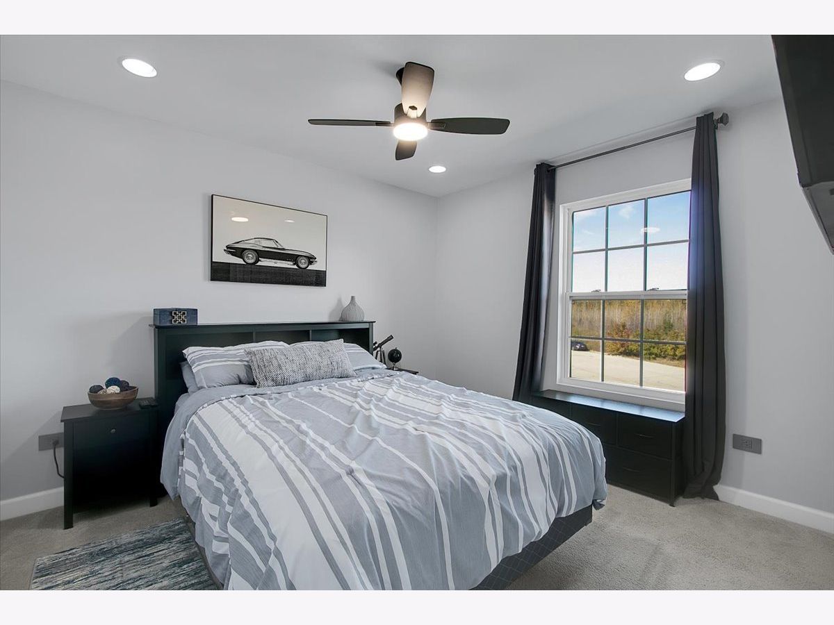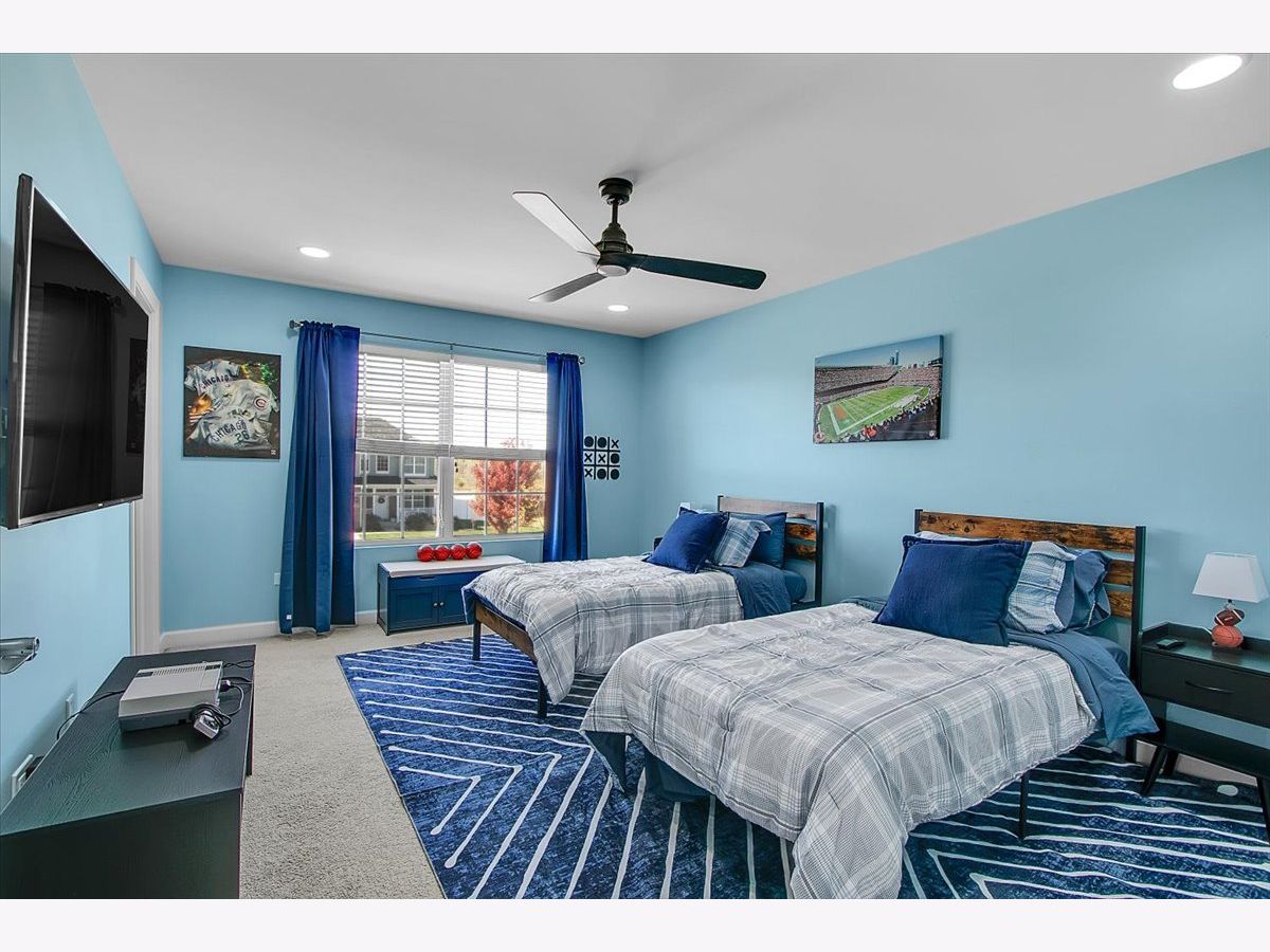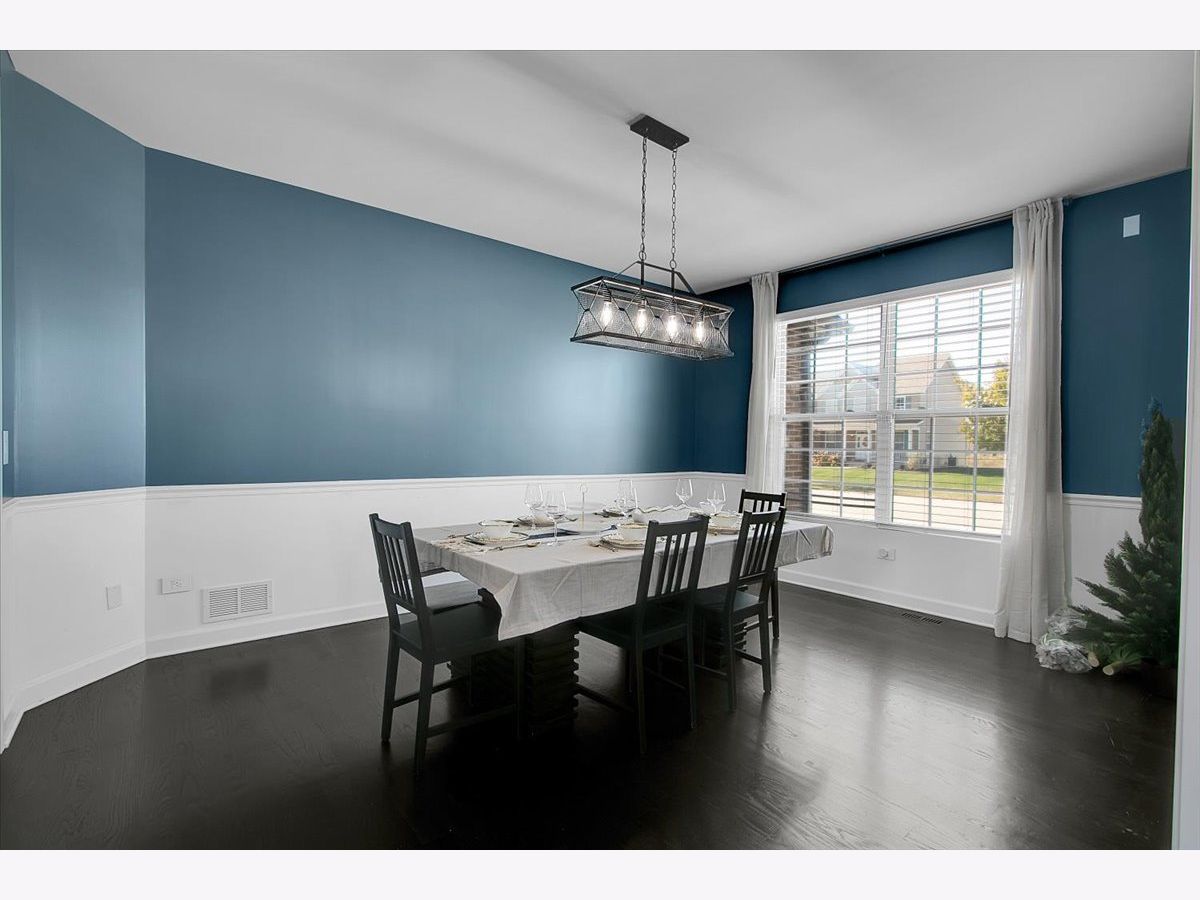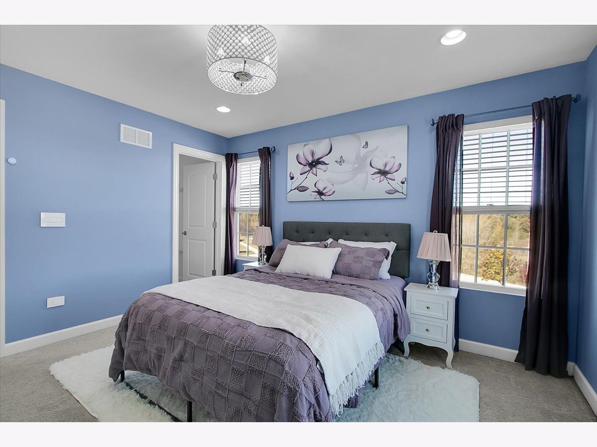 Our home is a custom built model and no similar homes are in the subdivision. We've been the only owners. The home is on a premium corner lot and overlooks the park from the backyard. There's a 3 car driveway with curb cutout. The garage floor has custom marble epoxy flooring and a mini split system for a/c and heat. There's a cedar fence around the backyard and a deck with hot tub. There's an open field on one side of the property, which the kids use for riding dirt bikes and ATVs. We have a two story library in the turret, with 18 ft custom built bookcases, 10 windows for natural sunlight and a drop chandelier. We also have can/recessed lighting in the library, 1st floor office, kitchen, family room and all 4 bedrooms. There's custom accent tile work behind the stove in the kitchen. The master bedroom has a stand up shower as well as a jetted deep soak 6' tub and custom tile work on the walls. There's a first floor office with double doors and a walk-in closet that could be used as a 5th bedroom. The second bedroom upstairs offers a walk-in closet with a bonus room attached. The house has real oak hardwood floors throughout the first floor, on the stairs, on the catwalk and in the master bedroom. There's a full unfinished basement with rough in plumbing. I'll send the blueprints and plat of survey for all dimensions/square footage.