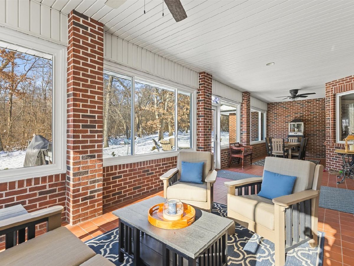 Welcome to this exceptional all-brick home offering grand curb appeal and a truly rare setting in the highly sought-afterPrairie Hill / Hononegah school district. Tucked at the end of a quiet cul-de-sac in an established neighborhood with no through traffic, this home sits on just shy of an acre and backs directly to over 200+ acres of protected wooded land, delivering unmatched privacy and serene, wooded views. Inside, a grand entryway sets the tone for the home's elegant yet functional layout. The main level features a formal dining room, along with a den/second living space complete with a fireplace, offering flexibility for entertaining, relaxing, or working from home. The main living room is open to the kitchen and showcases new custom built-in cabinetry for storage and display, anchored by a striking focal stone wall that creates a warm and inviting centerpiece. At the heart of the home is the brand-new Benson Stone remodeled kitchen, featuring soft-close custom cabinetry, granite countertops that extend up the backsplash, a large kitchen island, and high-end appliances. All-new hardwood flooring flows throughout the main level, while the bedrooms feature brand-new flooring for added comfort. A convenient main-floor laundry room completes the space. The expansive three-season room spans the entire length of the back of the home, boasting new windows and uninterrupted views of the wooded backyard-an ideal space to enjoy the changing seasons in total privacy. This home offers five true bedrooms, including four bedrooms upstairs and a private primary suite on the main level. And if the main level wasn't enough, the entire basement is fully finished with new flooring, providing abundant additional living space for entertaining, recreation, a home gym, or guest accommodations. Additional peace-of-mind updates include a radon mitigation system, two brand-new HVAC systems, a brand-new roof, and a new hot water tank. A large garage and a home that is truly move-in ready complete this impressive offering. Luxury, privacy, space, and location come together seamlessly in this one-of-a-kind property.