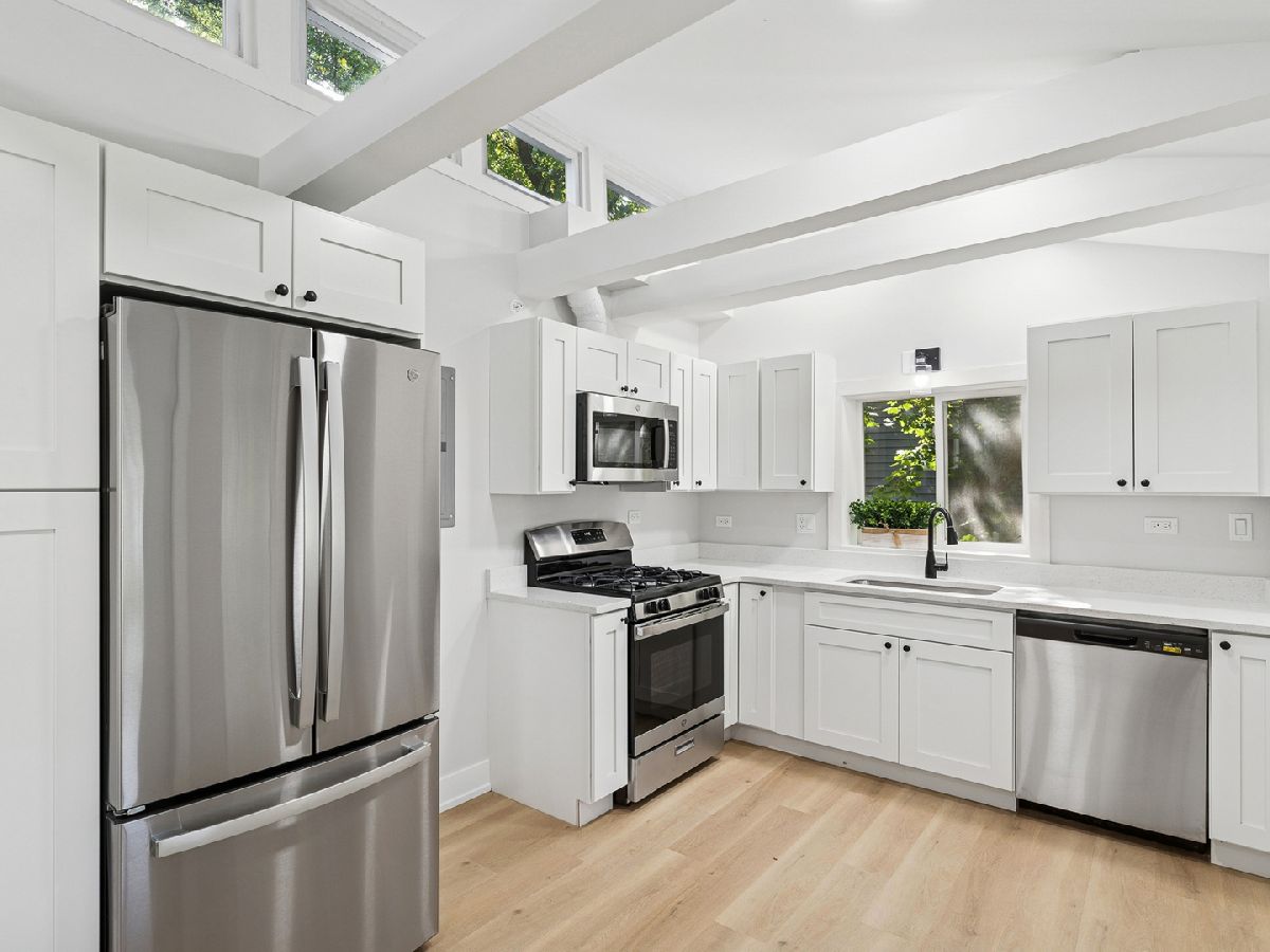 Fully Remodeled 4 Bedroom, 2 Full Bathroom Ranch House with 2.5 Car Garage on Rare 3 Lot Property! ALL NEW Electrical, Plumbing, HVAC in entire house! House interior was re-framed and re-configured to enjoy the best home layout! Eat-In Kitchen features new shaker cabinets, new appliances, and new quartz countertops. Enjoy the large living room with the tall ceiling and natural light with the abundance of windows! All 4 bedrooms are generously sized. The primary bedroom has an en-suite bathroom with a new tub, double sink vanity, custom tile work, and a skylight! New vinyl flooring throughout kitchen, dining, and bathrooms. New carpet throughout living room, and bedrooms. All new doors, baseboards, and trim work throughout house. Entire home has been freshly painted. New Spray Foam Insulation on exterior walls and ceilings. Residential Fire Sprinkler System installed inside entire house for your top notch safety. New Roof on House & Garage, New Siding & Gutters on House & Garage, New Furnace, New Central A/C, New A/C Condenser Unit, New Electrical Panel, New Electrical Service upgraded, New Water Heater, New Windows, New Garage Motor, New Water & Gas Meters. Welcome Home! Seller is a Licensed Illinois Real Estate Managing Broker.