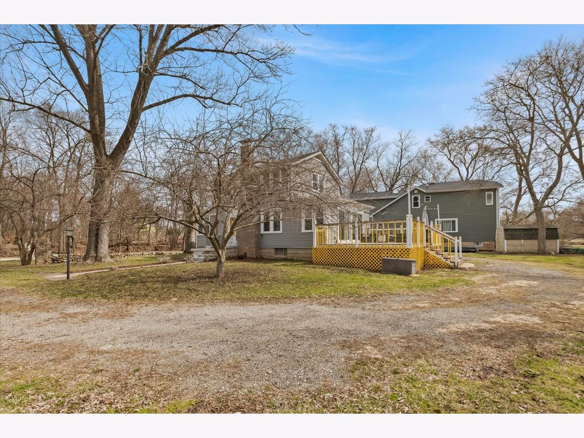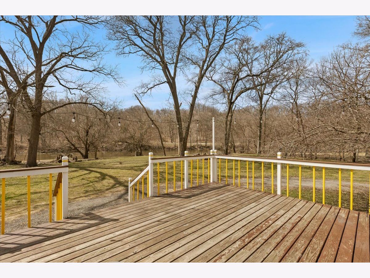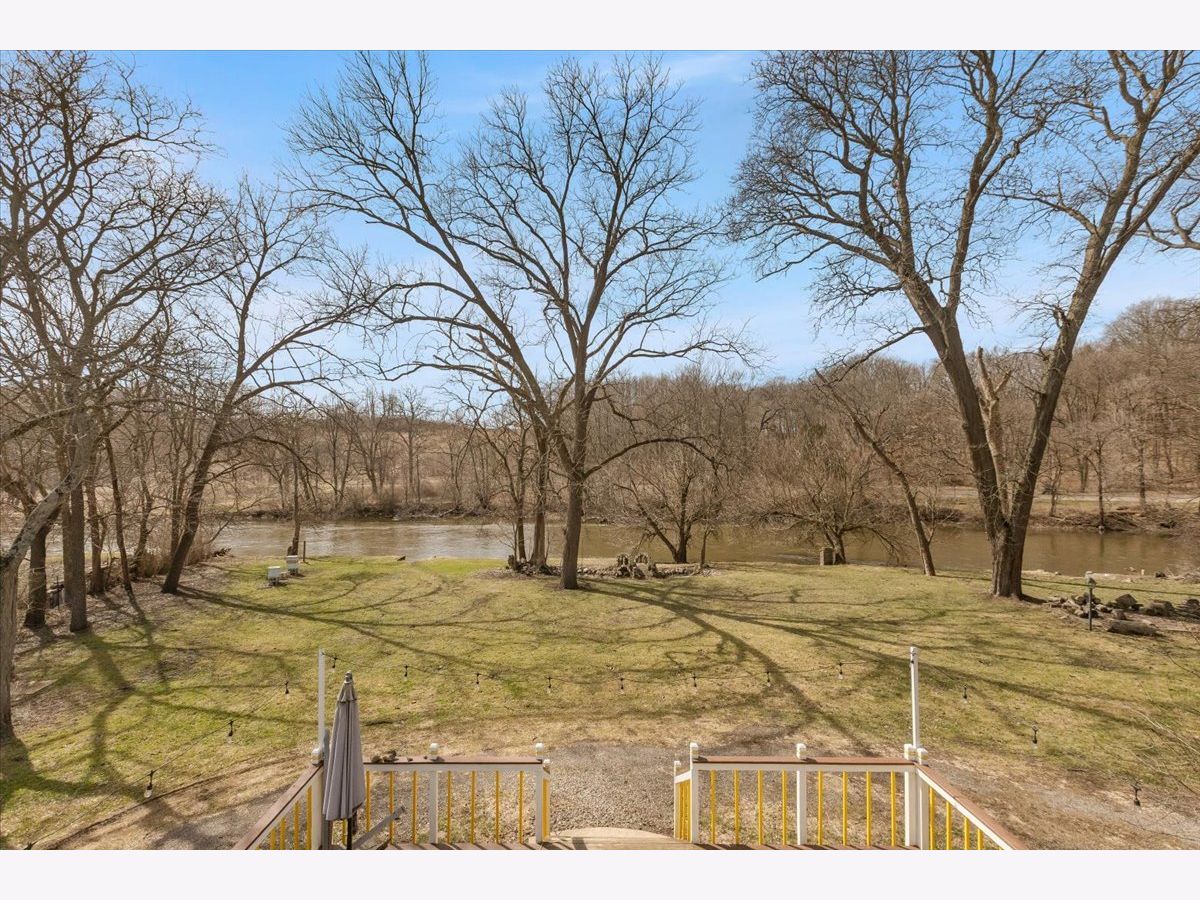 Welcome to your woodland retreat on the Fox River. This light-filled 3-bedroom, 2.5-bath farmhouse with an attached 2-car garage offers great space, scenic views, and a peaceful setting. The main floor features a spacious living room with a fireplace, wood beams, and an adjoining sun room with wood floors, perfect for relaxing or entertaining. The dining area flows easily into a large kitchen with ample counter space, plenty of cabinets, and new stainless steel appliances. The primary suite is set on its own private landing and includes a large walk-in closet, laundry, and an en-suite bath with double sinks, a walk-in shower, and a deep soaking tub. At the next landing you'll find the additional bedrooms, and the second full bathroom. The bedrooms are generously sized and offer views of the river and surrounding trees. Outside, a large deck overlooks the Fox River, and the property spans five lots, providing a sizable yard and frequent visits from deer. Located near public walking trails that lead directly to restaurants and shops in downtown Algonquin.