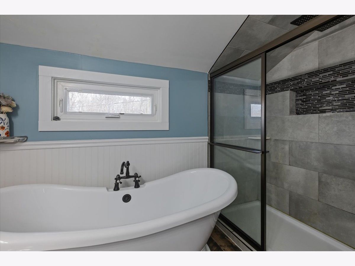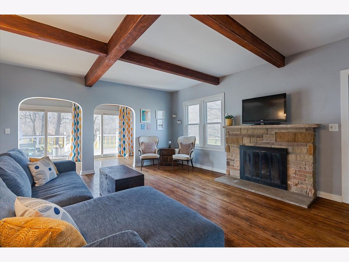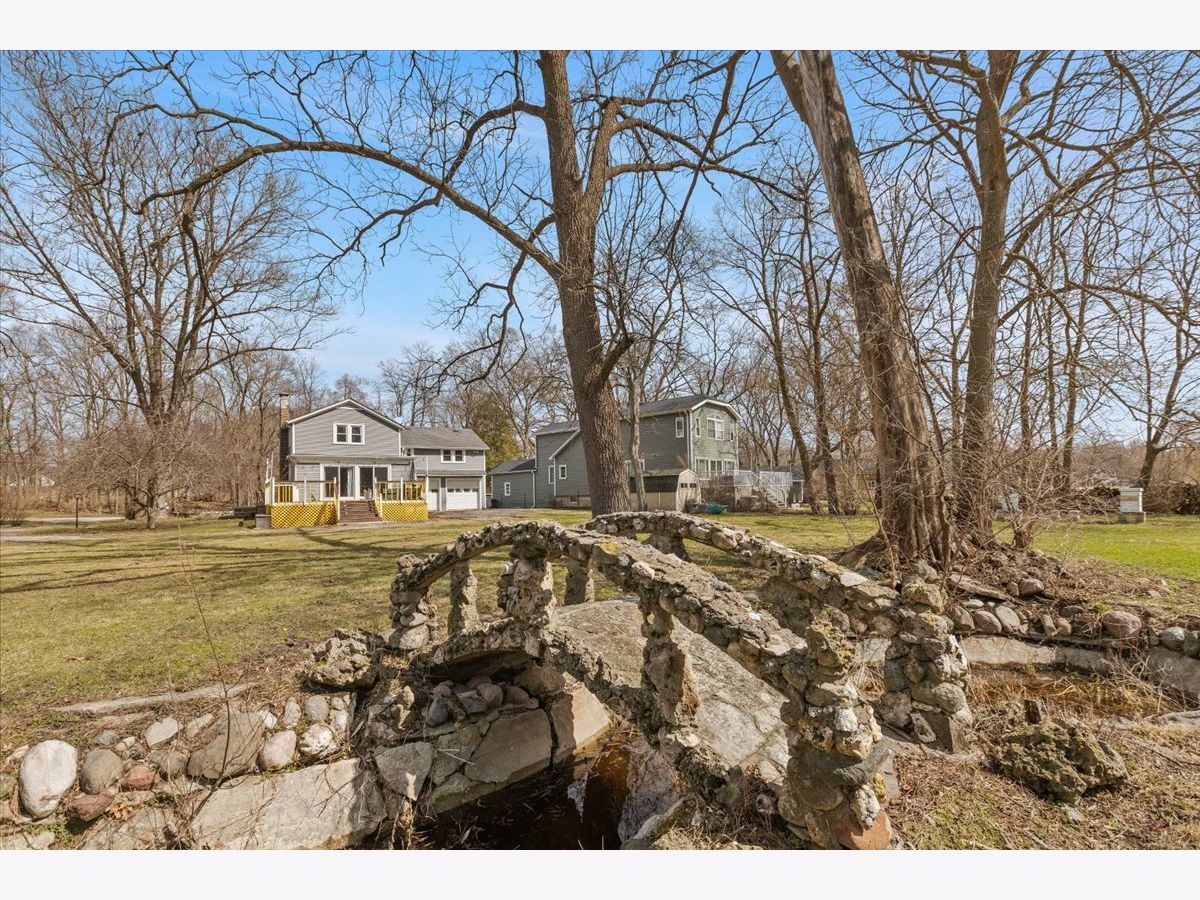 Welcome to your woodland retreat on the Fox River. This light-filled 3-bedroom, 2.5-bath farmhouse with an attached 2-car garage offers great space, scenic views, and a peaceful setting. The main floor features a spacious living room with a fireplace, wood beams, and an adjoining sun room with wood floors, perfect for relaxing or entertaining. The dining area flows easily into a large kitchen with ample counter space, plenty of cabinets, and new stainless steel appliances. The primary suite is set on its own private landing and includes a large walk-in closet, laundry, and an en-suite bath with double sinks, a walk-in shower, and a deep soaking tub. At the next landing you'll find the additional bedrooms, and the second full bathroom. The bedrooms are generously sized and offer views of the river and surrounding trees. Outside, a large deck overlooks the Fox River, and the property spans five lots, providing a sizable yard and frequent visits from deer. Located near public walking trails that lead directly to restaurants and shops in downtown Algonquin.