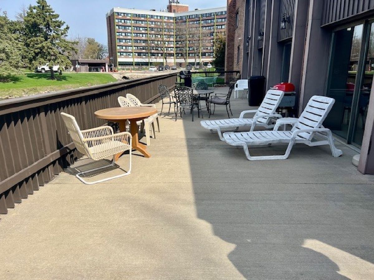 Enjoy a carefree and secure lifestyle in Woodlawn Terrace! This beautifully maintained unit offers serene courtyard views from every window, creating a peaceful and inviting atmosphere. Inside, you'll find a spacious living and dining room combination highlighted by a striking natural brick wall-perfect for both relaxing and entertaining. The home features two bedrooms with ample closet space and a full bathroom, showcasing a brand-new walk-in shower. The kitchen includes a convenient island with seating, ideal for casual dining. Additional features include in-unit laundry and one designated space in the underground heated garage, complete with an extra storage cabinet above. The building offers elevator access and a secure entrance for added comfort and peace of mind. Residents enjoy a wide range of amenities, including a clubhouse with an indoor pool, sundeck, grills, library, party room, and exercise room. The beautifully maintained grounds feature walking paths, a fenced dog park, outdoor pavilions with gas grills, and covered gathering areas-perfect for enjoying the outdoors. The HOA fee includes water, scavenger service, exterior maintenance, lawn care, and snow removal, making for truly low-maintenance living.