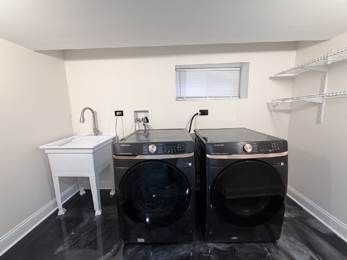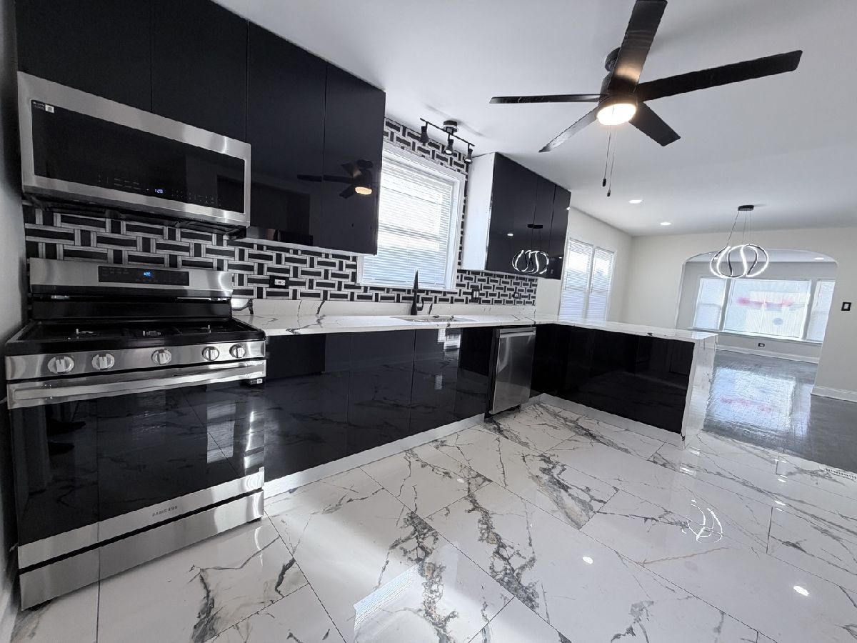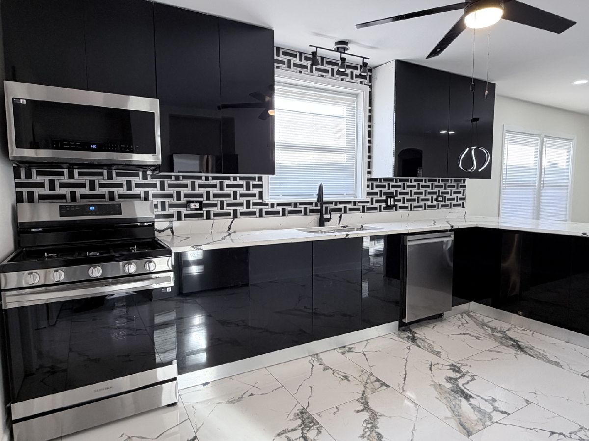 Absolutely stunning 4-bedroom, 2-bath brick ranch with a fully finished basement. The updated kitchen features porcelain tile flooring, sleek modern cabinetry with soft-close drawers, quartz countertops, and top-of-the-line stainless steel appliances. Enjoy the beautiful push-button fireplace and tastefully updated bathrooms offering porcelain tile, modern vanities, LED mirrors, and glass shower doors. Refinished hardwood floors run throughout the main level. The expansive finished basement includes epoxy floors, a large family room, fourth bedroom, and a laundry room equipped with high-end washer and dryer. Truly nothing to do but move in and enjoy. Easy to show!