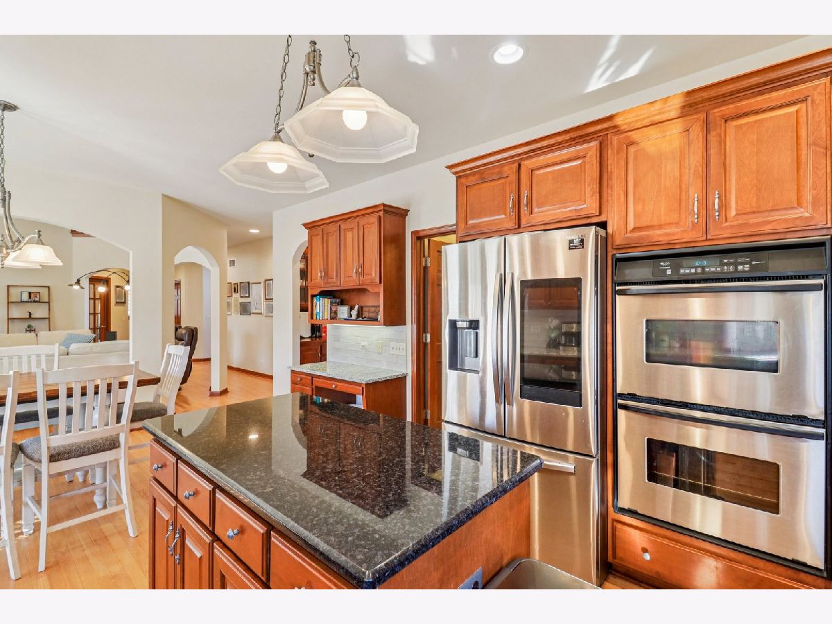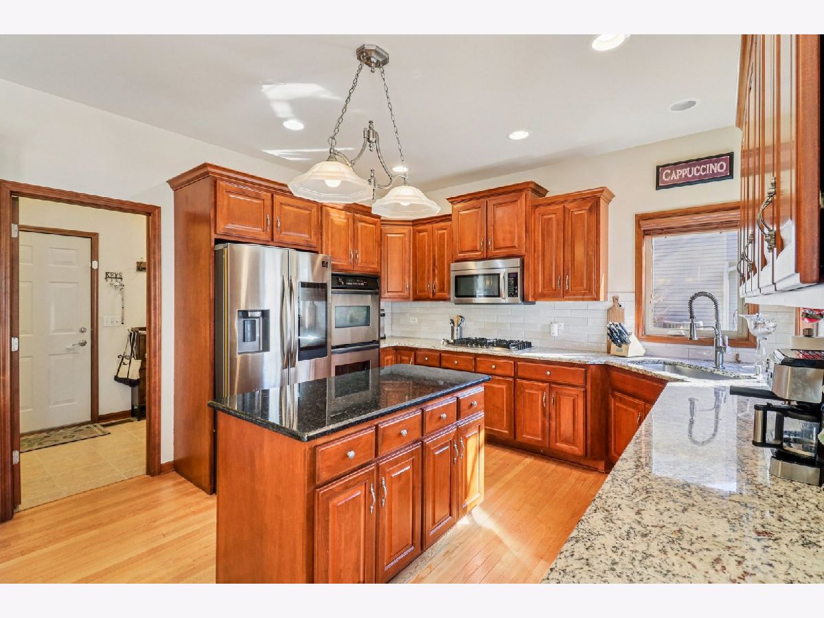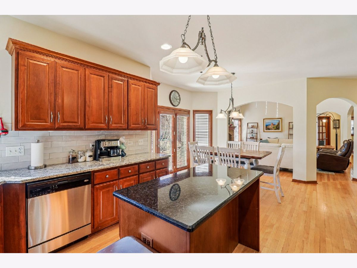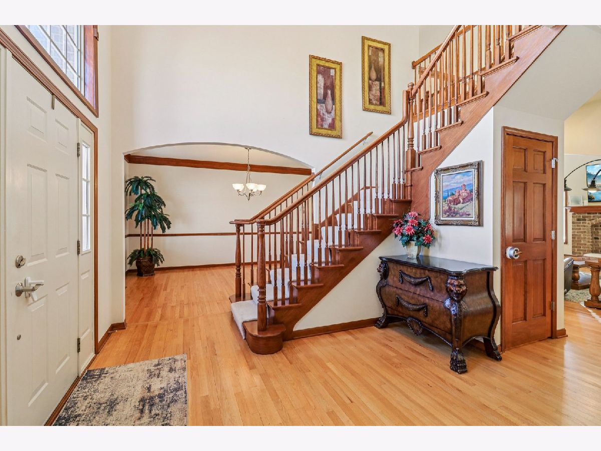 This stunning 4-bedroom, 2.5-bathroom Oswego home has been meticulously updated to offer both modern luxury and peace of mind. From the moment you step into the grand entryway with its soaring ceilings and gleaming hardwood floors, you will notice how the home's excellent sun exposure creates an airy, vibrant atmosphere with abundant natural light in every room. To the right, the formal living room features custom built-in bookcases and currently serves as a sophisticated office, while the formal dining room to the left is perfectly positioned for hosting. A convenient butler's pantry leads into the heart of the home: a large eat-in kitchen featuring a new cooktop and sink, gorgeous new granite countertops installed in 2025, a center island, and stainless steel appliances. The high-ceiling great room serves as a breathtaking centerpiece, anchored by a cozy fireplace and a sense of open volume. The main floor also provides a second dedicated office, a powder room, and a massive laundry room with ample storage and access to the attached three-car garage. Major mechanical and exterior updates ensure years of low-maintenance living, including a new roof, siding, and gutters all replaced in 2025, a new HVAC system and AC in 2025, and a new water heater in 2023. Upstairs, the primary suite is a true retreat with high ceilings, a walk-in closet, and a spa-like ensuite featuring a double vanity, jetted tub, and separate shower. Three additional spacious bedrooms and a full bath complete the second level, while the full unfinished basement offers endless potential for customization. Situated in a quiet location, the home is rounded out by a fenced backyard and a large paver patio perfect for outdoor entertaining.