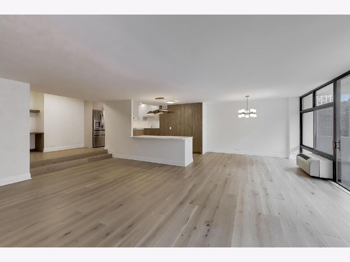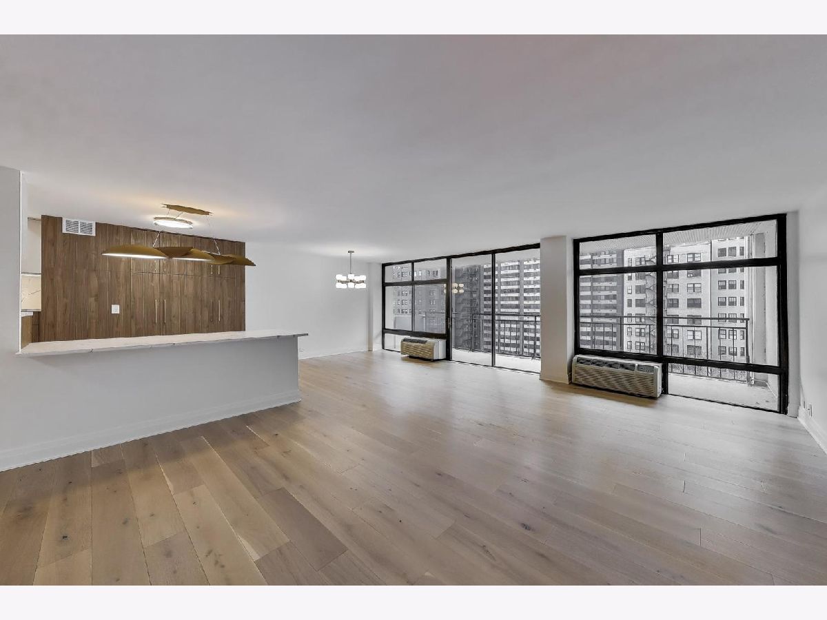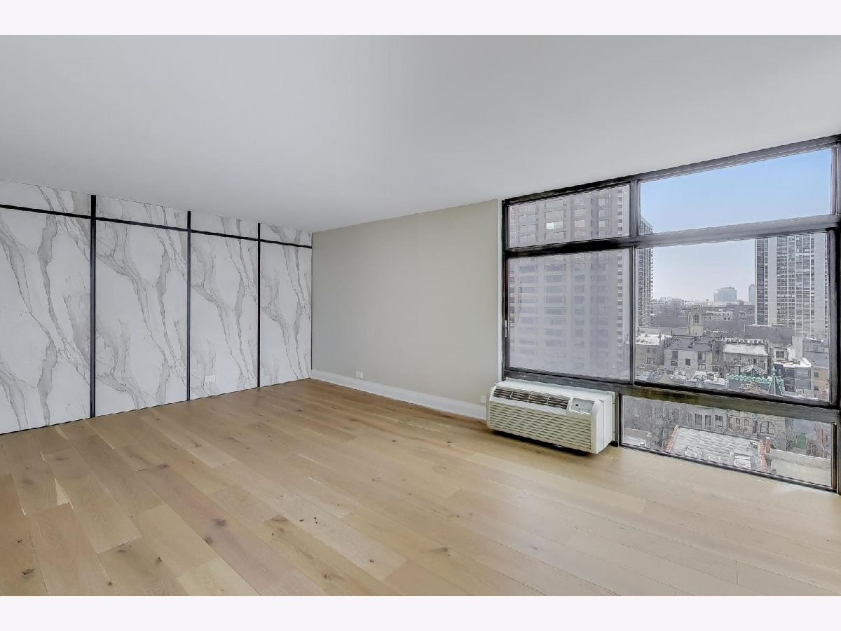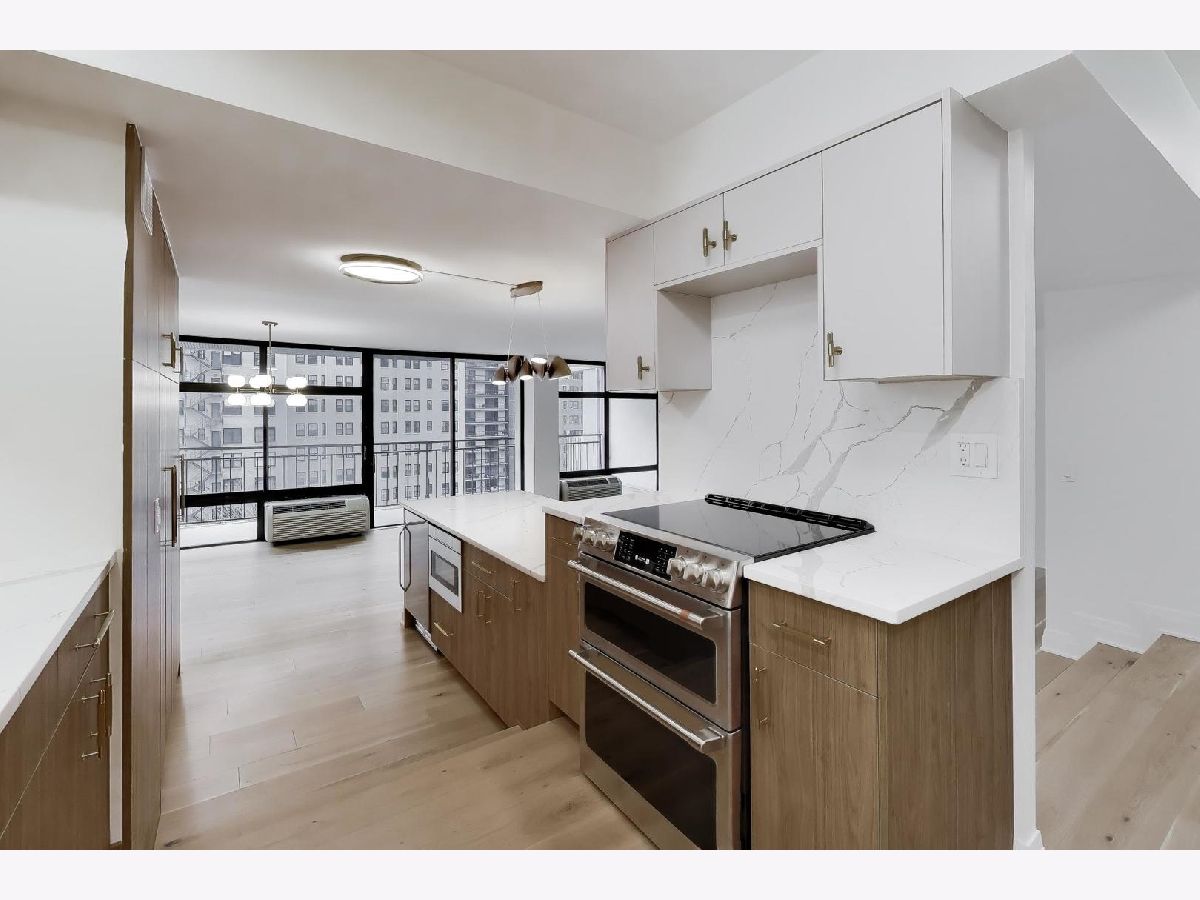 Spectacular gut renovation with light-filled east and west exposures opening to a 24-foot terrace overlooking Astor Street's historic homes. Big, open rooms! Everything is new - including plumbing, electric and electric panel. The floor plan has been thoughtfully redesigned and each room beautifully finished with 7.5" wide-plank white oak floors, custom millwork and beautiful doors. Gorgeous open kitchen is a chef's dream with richly-stained custom cabinetry, Buster & Punch brushed brass hardware, integrated dishwasher, double oven range, under-counter microwave and built-in beverage refrigerator. Miles of lush quartz backsplash and countertops. The nearly 8' island easily accommodates four stools. A generous floor-to-ceiling pantry offers fantastic storage and houses the new Bosch washer/dryer. Plus, there's a custom work station for use as an office or dry bar. Both bedrooms are huge with unobstructed sunset views. The primary suite bath is finished with Calacatta Oro polished porcelain, heated floors, warming towel bar, double sink, custom cabinetry and a gorgeous walk-in shower. The guest room features an 8-foot long, floor-to-ceiling custom built-in, and bath maginatively finished with dimensional porcelain. Only 1 other home on the 12th floor. Well-managed, 49-home association is pet friendly with 24-hour doorman, live-in engineer, fitness and hospitality rooms plus a glorious rooftop terrace. Includes garage space for a small car and extra storage.