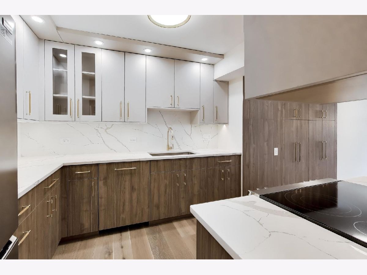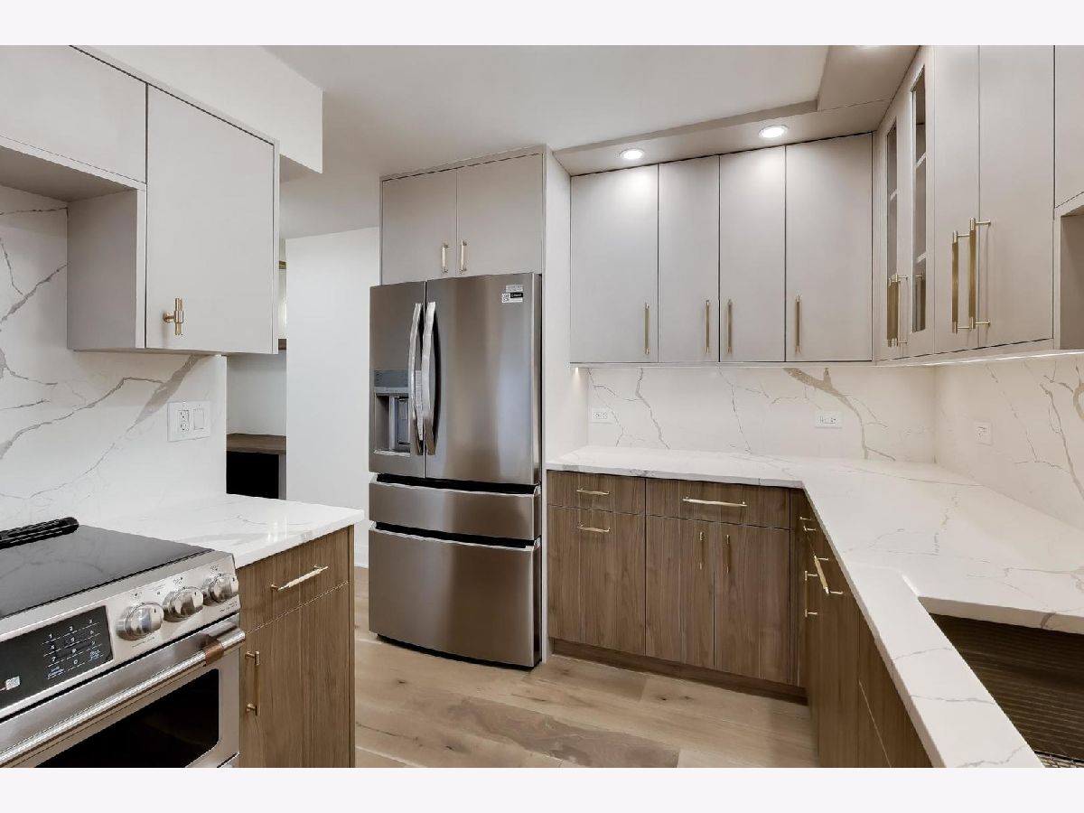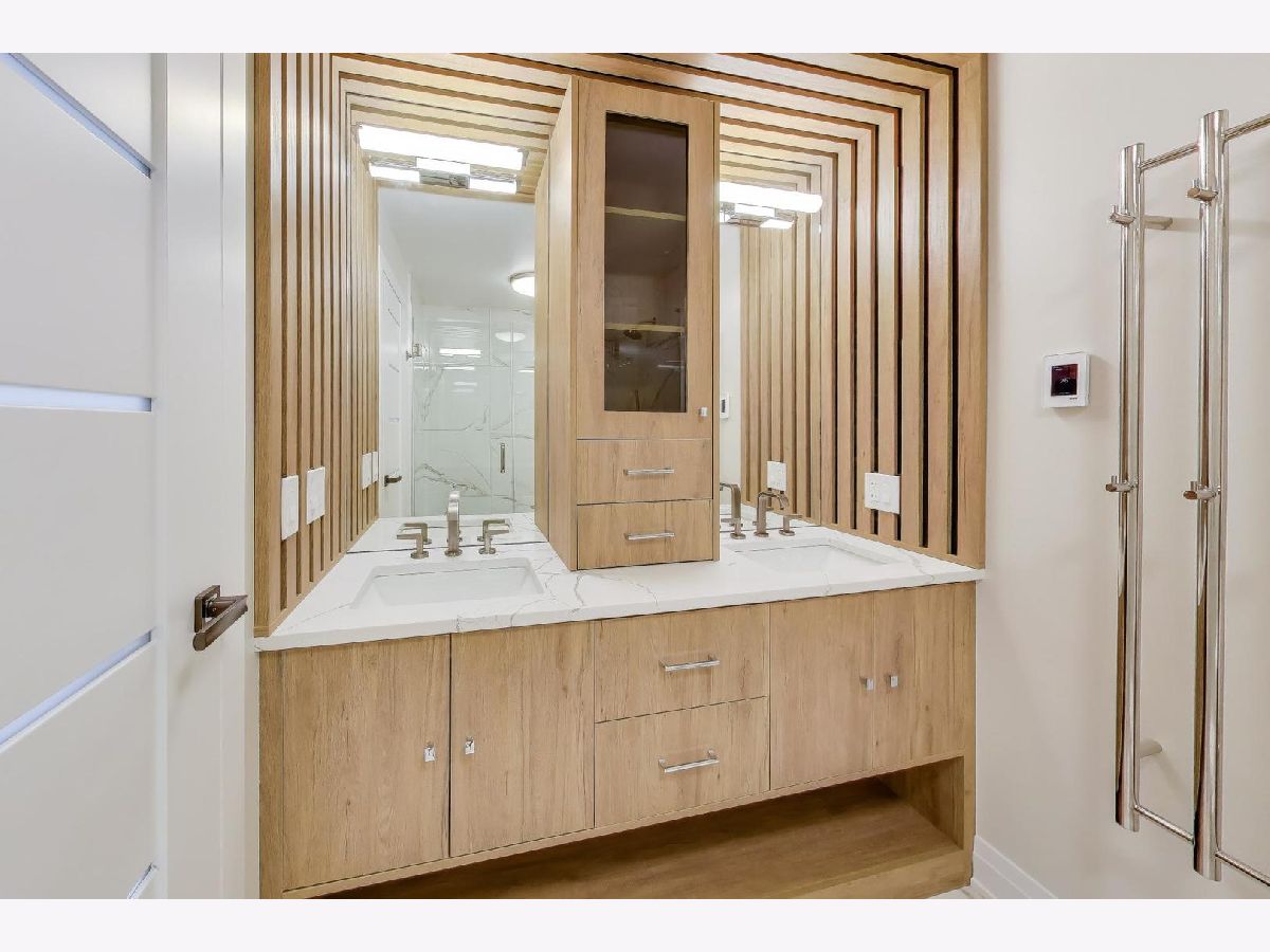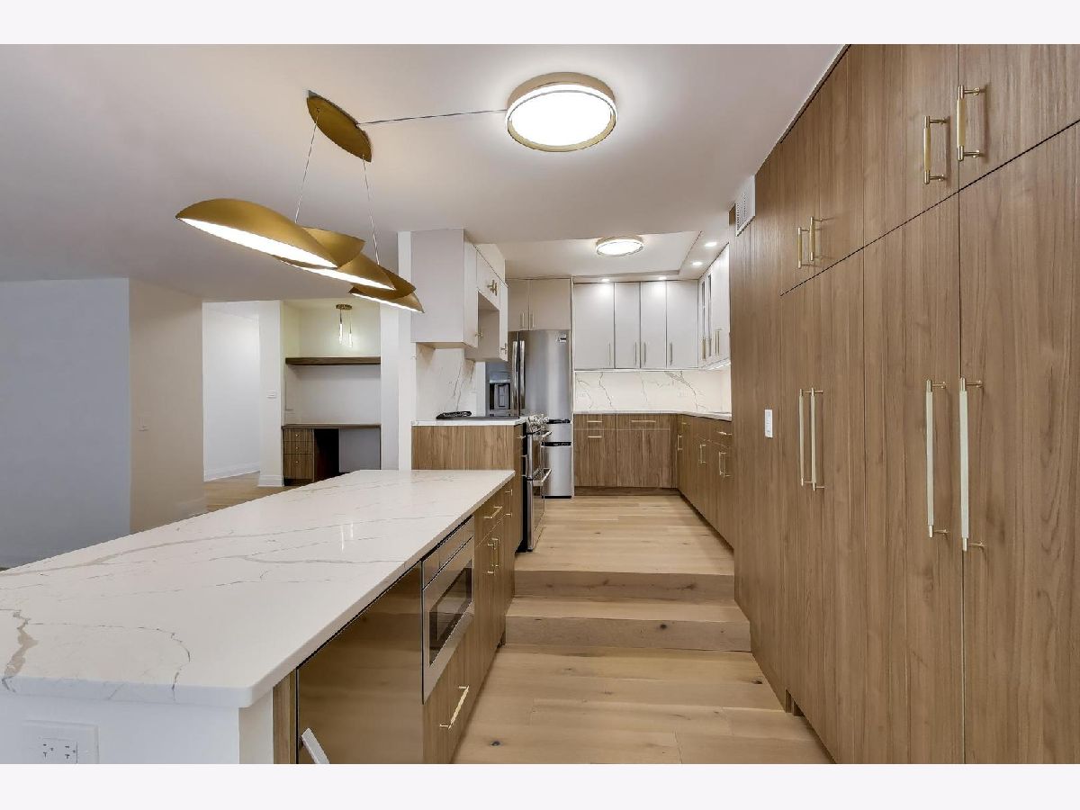 Spectacular gut renovation with light-filled east and west exposures opening to a 24-foot terrace overlooking Astor Street's historic homes. Big, open rooms! Everything is new - including plumbing, electric and electric panel. The floor plan has been thoughtfully redesigned and each room beautifully finished with 7.5" wide-plank white oak floors, custom millwork and beautiful doors. Gorgeous open kitchen is a chef's dream with richly-stained custom cabinetry, Buster & Punch brushed brass hardware, integrated dishwasher, double oven range, under-counter microwave and built-in beverage refrigerator. Miles of lush quartz backsplash and countertops. The nearly 8' island easily accommodates four stools. A generous floor-to-ceiling pantry offers fantastic storage and houses the new Bosch washer/dryer. Plus, there's a custom work station for use as an office or dry bar. Both bedrooms are huge with unobstructed sunset views. The primary suite bath is finished with Calacatta Oro polished porcelain, heated floors, warming towel bar, double sink, custom cabinetry and a gorgeous walk-in shower. The guest room features an 8-foot long, floor-to-ceiling custom built-in, and bath maginatively finished with dimensional porcelain. Only 1 other home on the 12th floor. Well-managed, 49-home association is pet friendly with 24-hour doorman, live-in engineer, fitness and hospitality rooms plus a glorious rooftop terrace. Includes garage space for a small car and extra storage.