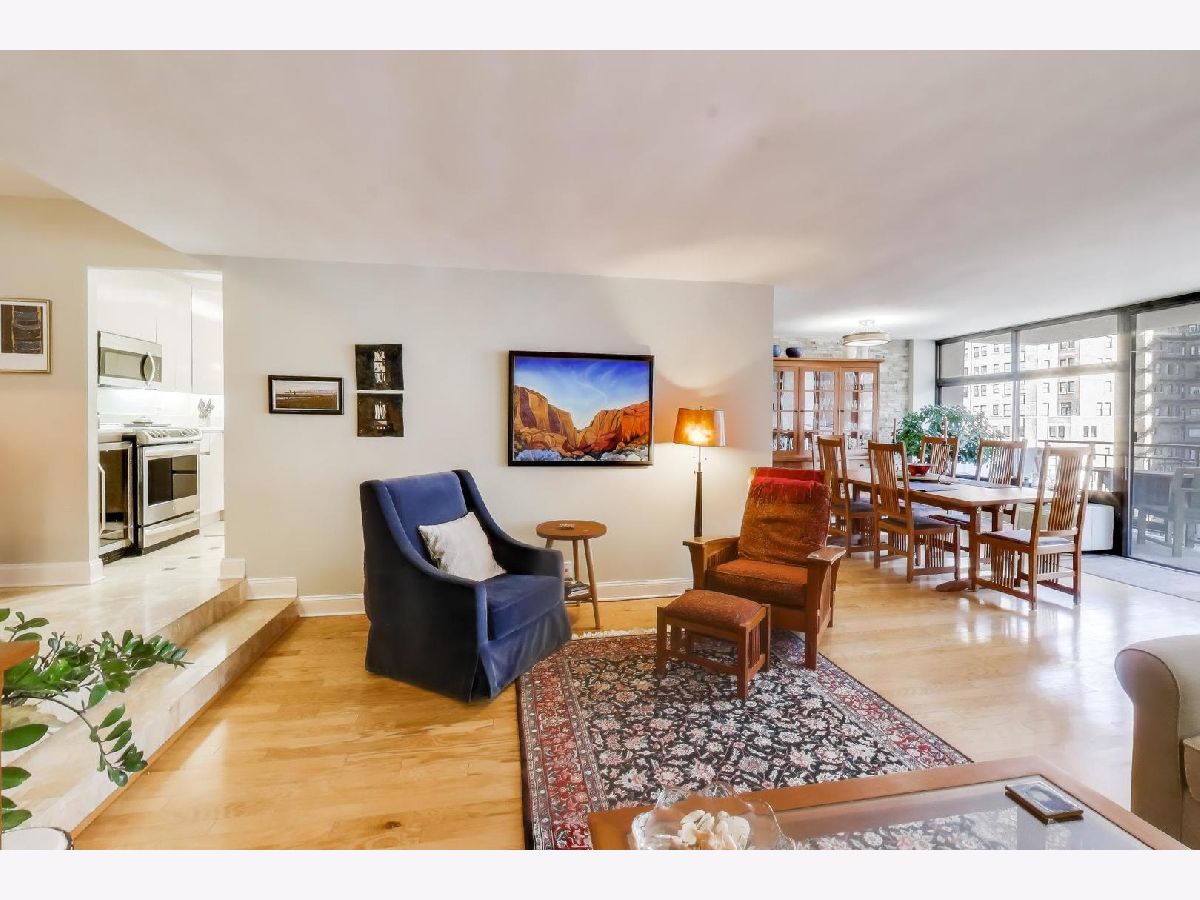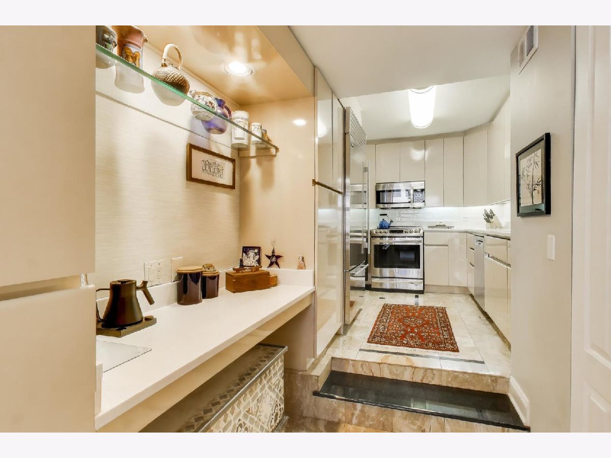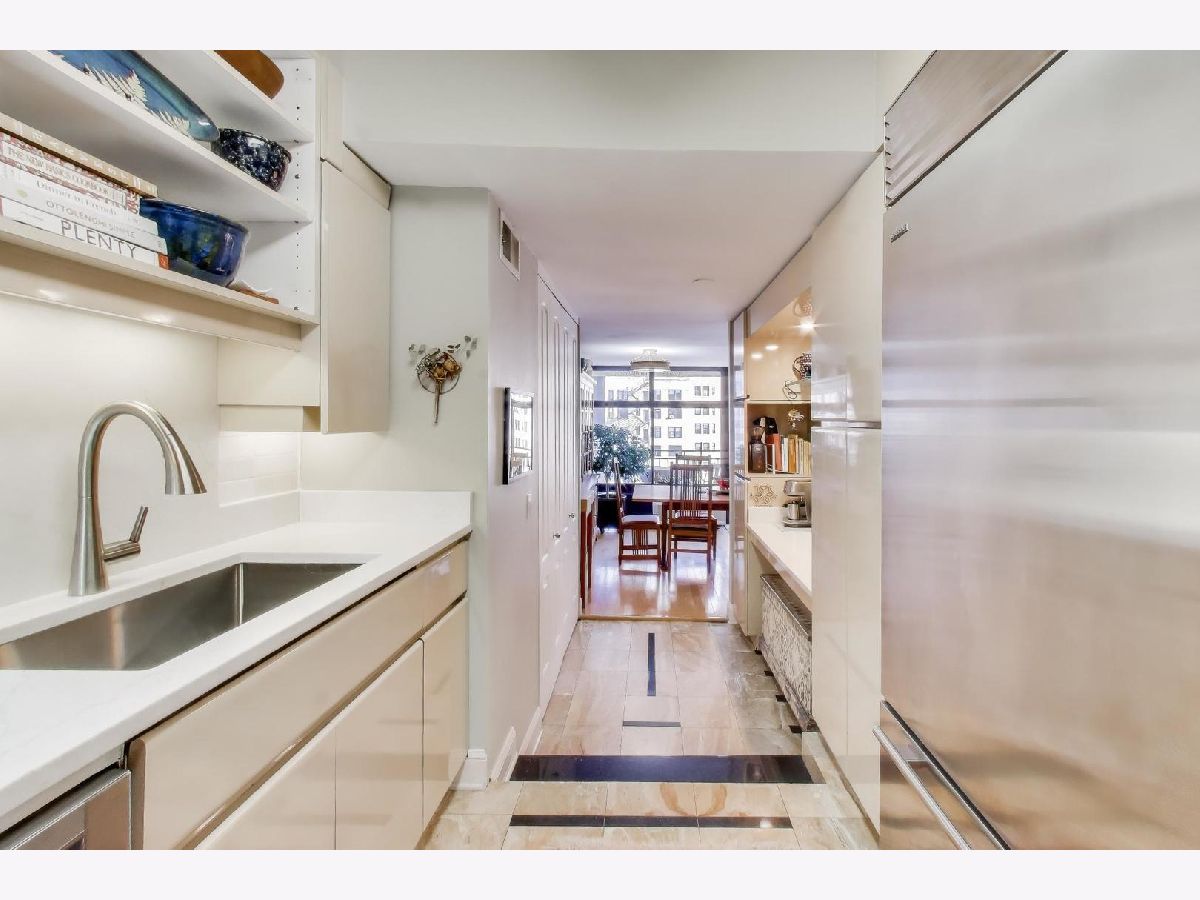 Fabulous 2 bedroom/ 2 bath condo with garage parking in boutique building on highly-coveted Astor Street just 1 block from lakefront. This 1550 sq foot unit has been beautifully updated and all the popcorn ceilings removed. Unit has hardwood and marble flooring, expansive entry gallery, north, east and west-facing views & 24' balcony overlooking beautiful Astor Street. Kitchen features newer stainless appliances, including sub zero, new backsplash and quartz countertops, a wine fridge and dry bar. Huge en-suite primary bath features both a walk-in shower and walk-in closet. In-unit W/D. HVAC units have all been replaced within the past 2 years. Pets welcome with no restrictions! Very private unit and only 3 units per floor. 24 hour door staff, professionally managed, on-site engineer, recently renovated fitness room and rooftop terrace with amazing views. Walk to Lincoln Park, Old Town, and even Magnificent Mile. Garage parking space included in price. Truly maintenance-free living.