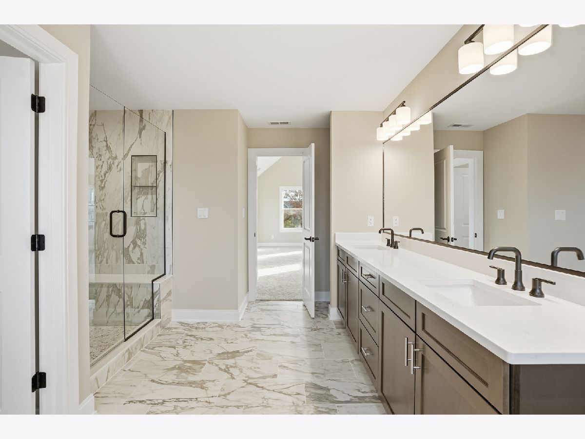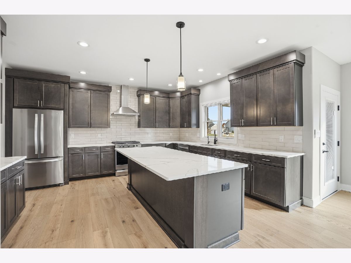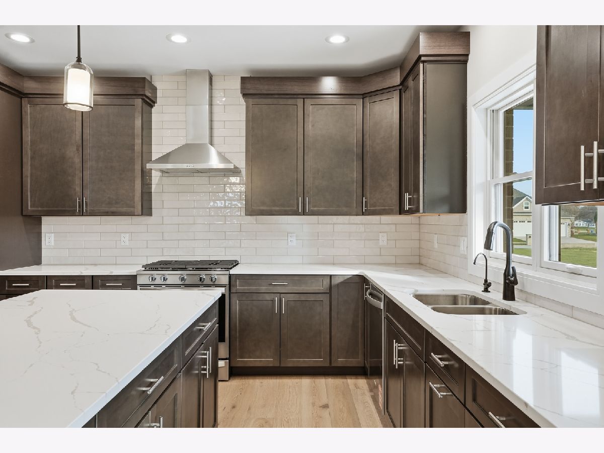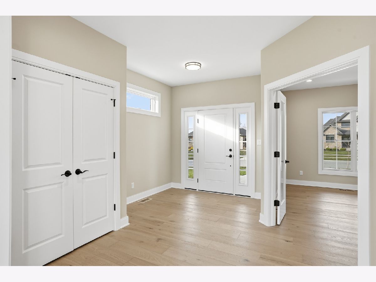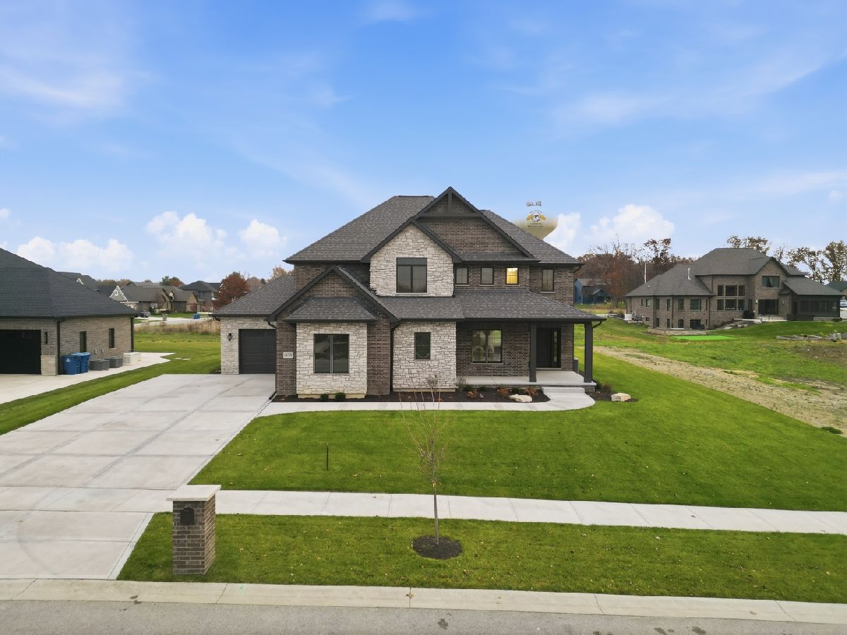 Welcome to Castle Rock--where quality craftsmanship, thoughtful design, and larger lot sizes create a refined yet approachable custom-home experience. PROPOSED CONSTRUCTION with completed home available to tour on a different lot - This beautifully built two-story home offers elevated finishes and everyday livability in a desirable St. John location. Inside, you'll find hardwood floors, a gas fireplace with brick surround and wood mantel, and a home office just off the foyer. The open great room flows into the breakfast area with sliding doors to a covered patio and spacious backyard--an uncommon feature in today's market. The kitchen blends style and function with quartz countertops, a large island, tile backsplash, stainless steel appliances, and a large walk-in pantry. Upstairs, the primary suite features a soaking tub, custom-tiled walk-in shower with glass enclosure, and generous his-and-hers walk-in closet spaces. Three additional bedrooms, a full bath, and a second-floor laundry with washer, dryer, and sink complete the level. Additional highlights include a mudroom with built-in bench and storage, oak staircase with custom railing, and a full unfinished basement plumbed for a future bath. This unique home includes a fully brick and stone exterior, covered front porch, professional landscaping, concrete driveway, and dual garages (2.5-car plus 1-car) with epoxy floors, gas heater, and extra storage. No HOA, close to parks, shopping, dining, and just minutes from the Illinois border. Photos, Video, Virtual Tour are of this home completed on a different lot - actual finishes customizable.