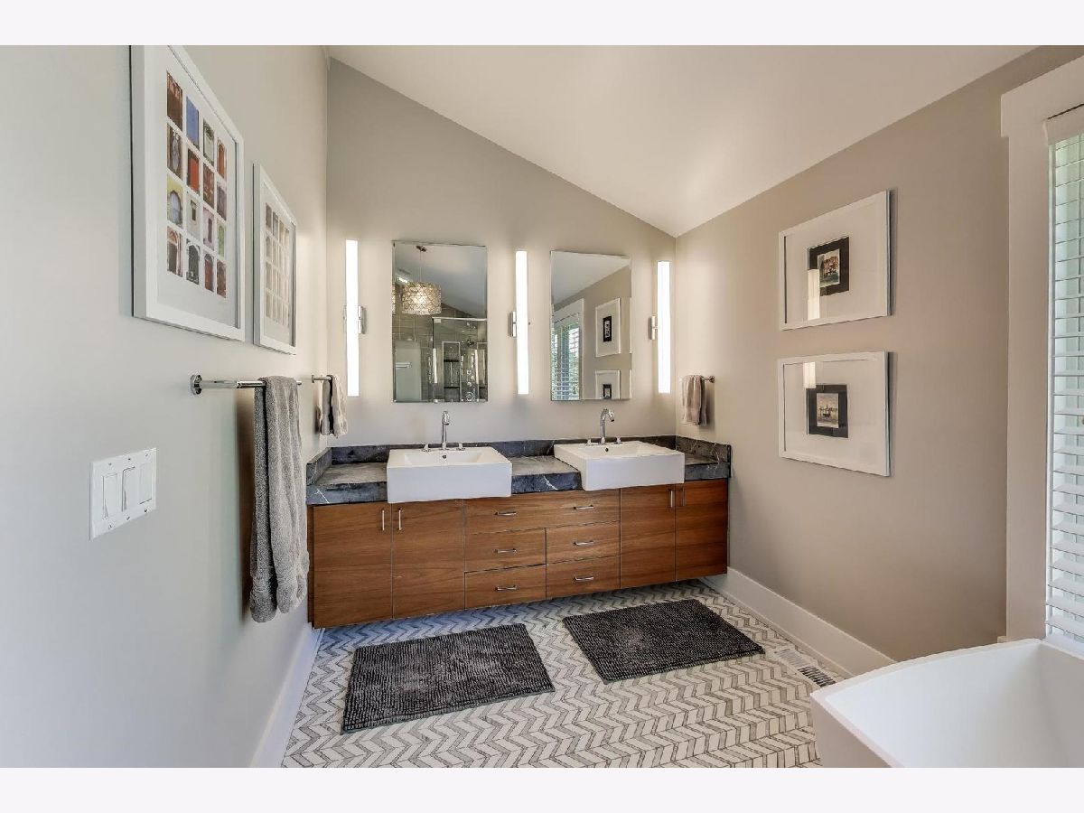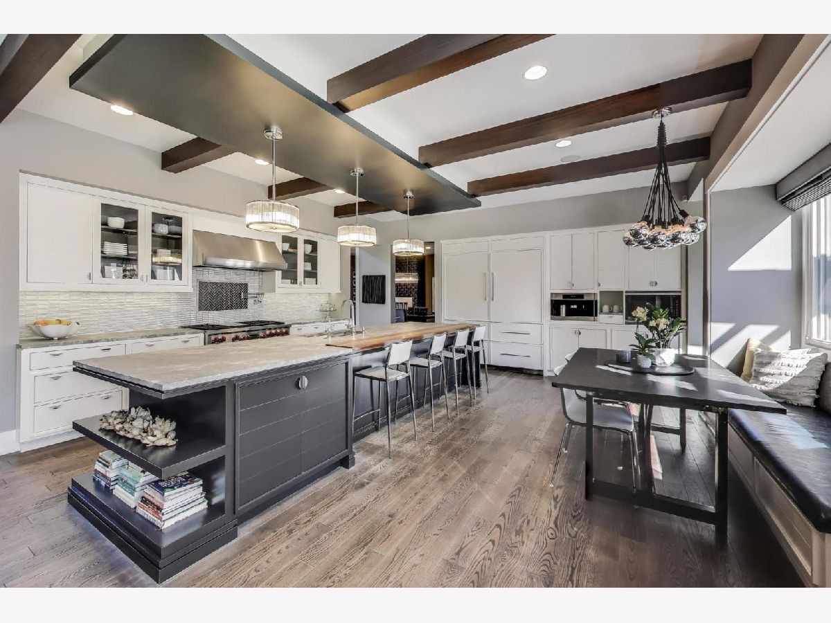 Glen Oak Acres stunner! 6 bed 5.5 bath, extra wide lot. Professionally designed from the ground up, no expense was spared. Contemporary luxury abounds. 10ft ceilings throughout 1st floor and 18ft vaulted ceilings in almost every bedroom and throughout entire 2nd floor, 9ft ceilings in basement. Custom 5" white oak hand scraped with beveled edge on site! Traffic stain on all floors. Exquisite light fixtures from Lightology. Two story foyer, double wood doors which looks on to the custom glass and floating staircase with mahogany wood wall detail. Large dining room with 7' x 30" Subzero wine fridge, gas fireplace and built-ins. Private lounge with designer wallpaper and light fixtures. Huge kitchen with (2) 36" Subzero refrigerator/freezer, (2)Miele dishwashers, 48" Wolf range/hood, Miele built in coffee maker, honed quartzite countertop with black walnut wood block counter bar and built in banquet for dining. Open concept kitchen into family room with gas fireplace. 1st floor office/bedroom with en-suite bath. 2nd level offers gorgeous primary with en-suite and dual closets; teak built in bed with nightstands and full upholstered headboard. Step into the spa like primary bath where you will find teak slatted wood flooring and 6ft Mti soaking tub with separate rain shower. The additional bedrooms are generous in size, 1 with en-suite and 2 with jack and Jill bath. One bedroom has fun loft space for toys or teen hangout. Custom closets throughout. Enormous basement with high ceilings, large wet bar with (2) Subzero beverage refrigerators, one with freezer bottom. Lower-level guest bedroom with full bath, and plenty of recreational space for the whole family. Step out in the backyard oasis, expansive Unilock Bristol stone paver patio, built in gas fire pit, outdoor SunBrite tv, built in 48" grill with prep counter and Subzero beverage refrigerator. This home has it all! You have to see it to believe it! Nationally ranked school districts 34 and 225. Close to OLPH and Loyola Academy. Don't miss this one! Welcome home!
