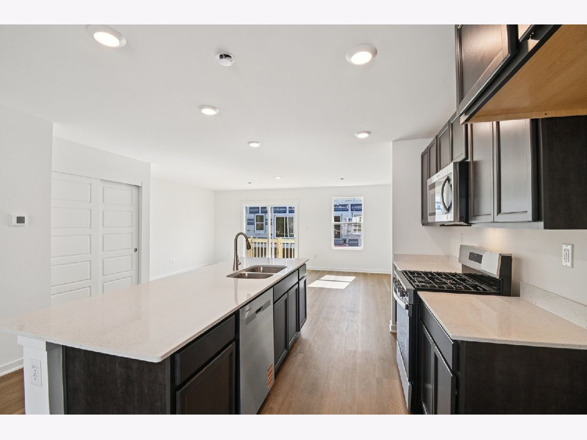 Welcome to 1433 Oakfield Lane in Pingree Grove, Illinois, a modern, new townhome in our scenic Cambridge Lakes North community. This townhome will be ready late winter! Homesite includes a fully sodded yard that is maintained throughout the year as well as snow removal in the winter. This Garfield townhome is a captivating open floor plan with over 1,700 square feet of living space which includes 3 bedrooms, 2.5 baths and a finished flex space. As soon as you step inside from the garage, you'll be greeted by a finished flex space, perfect for an office or playroom. Walking up the stairs, you will find this home's open concept main level living space centered around a large kitchen island. The expansive kitchen overlooks both the front dining and back great room areas, making it the ideal space to entertain. Additionally, your kitchen features designer cabinetry, quartz countertops, stainless-steel appliances, and pantry. Arriving at the top floor, you'll find our 3 bedrooms. Enjoy a spacious primary bedroom suite which includes a large walk-in closet lit up by its own private bathroom with dual sinks and a walk-in shower. The rest of the upper level features a laundry room, secondary bedrooms with a full second bath and linen closet. You'll find luxury vinyl plank flooring throughout the main level kitchen and dining, bathrooms, and laundry. Impressive innovative ERV furnace system, Rheia ductwork delivery system and tankless water heater round out the amazing features this home has to offer! All Chicago homes include our America's Smart Home Technology. Photos and model photos are of similar home. Actual home built may vary.