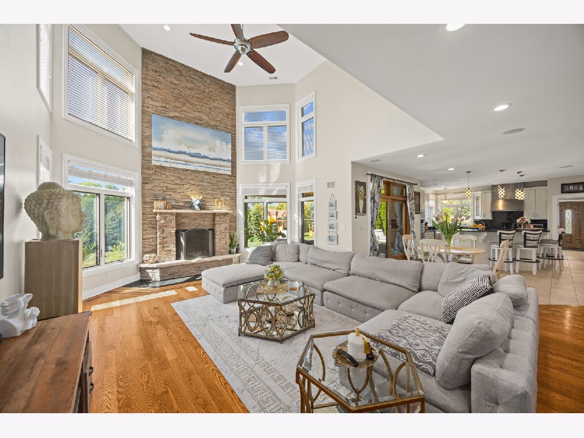 Welcome to this exceptional 4-bedroom, 3.5-bathroom home, where luxury and comfort come together in perfect harmony. Thoughtfully designed with upscale finishes and meticulous attention to detail, this residence offers both elegance and everyday functionality. The gourmet kitchen is a chef's dream, featuring abundant cabinetry, granite countertops, and new stainless-steel appliances ideal for both daily living and entertaining. The first floor bedroom suite with a full bath provides convenience and flexibility, while the luxurious master retreat boasts a spa inspired bathroom and a spacious, double room walk-in closet. Hardwood flooring throughout. Sound system with 6 zones. An open concept floor plan highlights the dramatic two story great room with a stunning stone fireplace, creating a warm and inviting centerpiece for gatherings. Additional features include a 3.5-car-attached garage with 7-foot overhead doors. New private patio, and a generous backyard. Ample storage and closet space further enhance the home's practicality. Brand new finished basement is an entertainer's paradise, complete with a large wet bar, dedicated movie theater area, full bathroom, and additional bedroom perfect for hosting friends and family. Ideally located near major expressways, top rated schools, parks, shopping, dining, renowned golf courses, and expansive forest preserves, this home offers the ultimate blend of luxury living and everyday convenience.