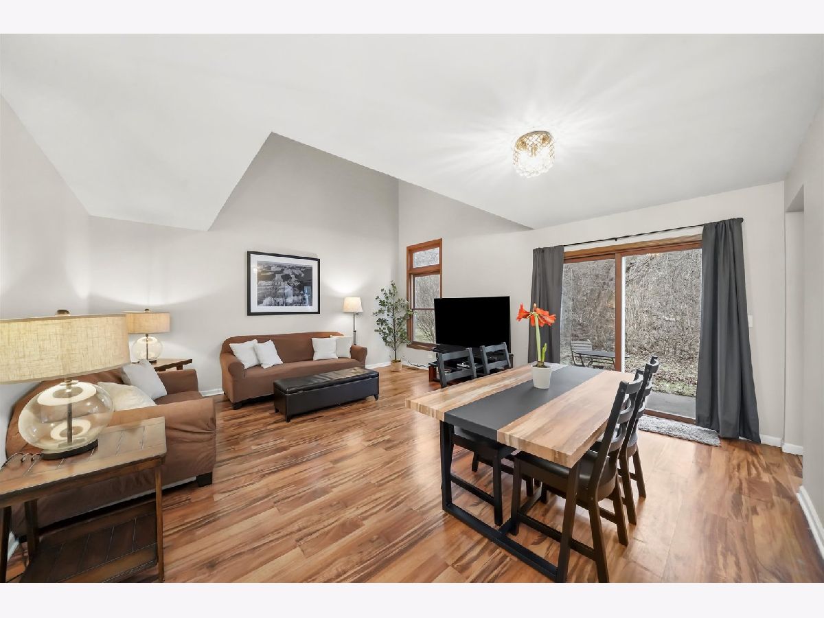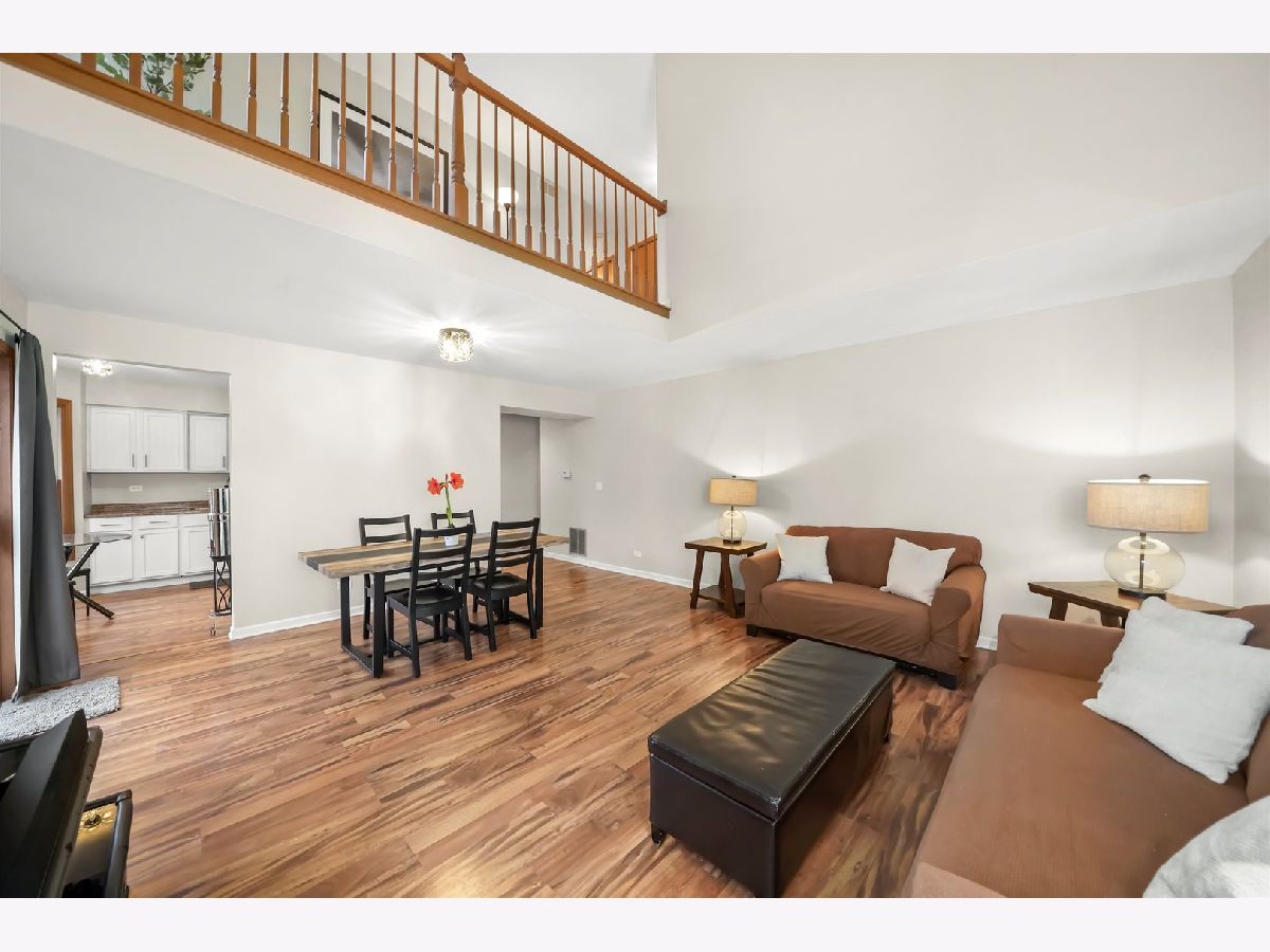 Spacious and well-maintained townhouse offering 2 bedrooms, 1.1 baths, and a versatile loft-ideal as a third bedroom, home office, or flex space. The open living and dining area features sliding doors that lead to a private, quaint patio, perfect for relaxing or entertaining. The eat-in kitchen boasts ample counter and cabinet space along with stainless steel appliances. A full bath is conveniently located on the first floor, while second-floor laundry adds everyday ease. The primary bedroom showcases double doors, a vaulted ceiling, and a generous closet. Additional highlights include an attached garage and a location within a private, well-kept community offering an outdoor pool, clubhouse, and playground. Enjoy a peaceful setting near forest preserves, walking and biking trails, shopping, dining, and major highways. Perfect for homeowners or investors-investors welcome!