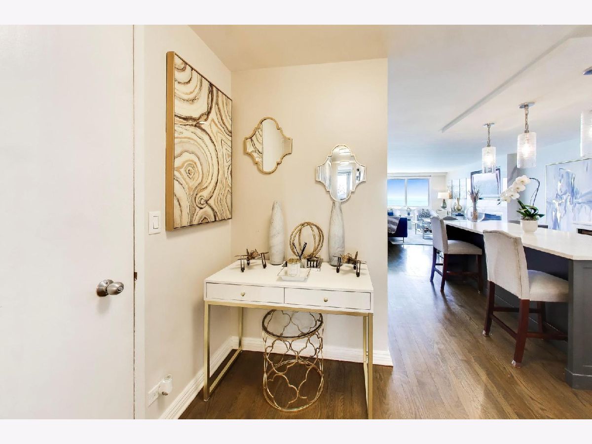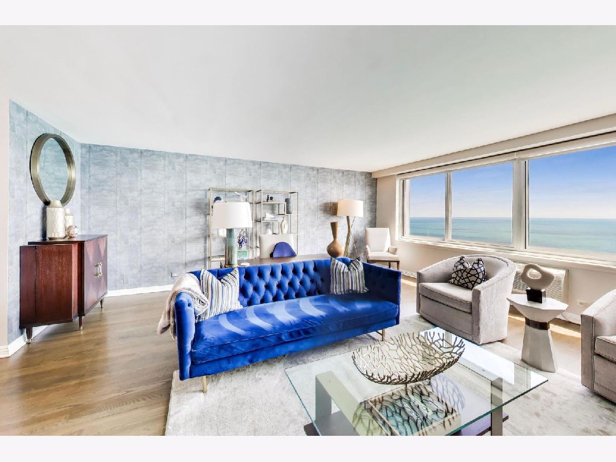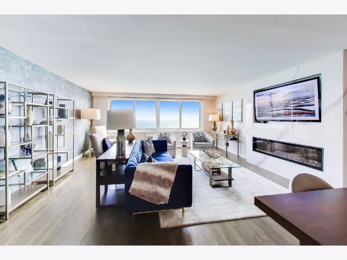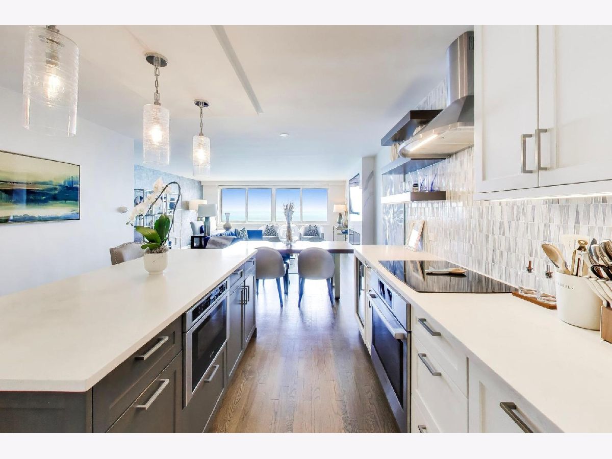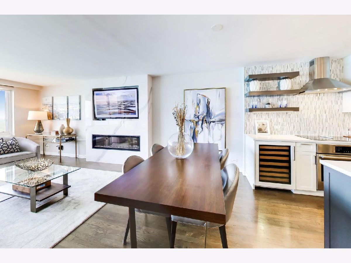 Looking for the kind of views you've only dreamed of? You've found your new home! Enjoy panoramic and stunning Lake Michigan, Navy Pier and beach views from your spacious living area, and fantastic city views and lights from both bedrooms for the best of both worlds. Recently renovated high end kitchen boasts plenty of storage, a large island with seating, gorgeous professional grade appliances, designer tile and lighting, inverted tray ceiling and a beverage fridge. Spacious open plan living area with room for a variety of configurations and separate seating, dining and works areas. Modern marble fireplace and pristine dark hardwoods that flow through the home. Luxurious and generously sized primary suite includes a large walk in closet and spa-like bathroom with custom cabinetry integrated with a double vanity, and a huge shower. Second bedroom is also large, with it's own walk-in closet. In-Unit washer/dryer and an incredible amount of additional hallway closet space. Building amenities recently renovated and feature a massive indoor-outdoor entertaining space on the roof, complete with seating, grills, work areas, kitchen and views in every direction. Large gym, valet parking, bike room, storage locker, and 24 hour doorman. Pets welcome. Meticulously kept building, with recent updates to elevators, lobby, hallways, roof and facade. Unbeatable Gold Coast location, right in the heart of everything where historic charm combines with modern elegance. Steps to the finest shopping in Chicago, on Magnificent Mile and Oak Street, top tier dining, both casual and upscale, beaches and the Lakefront trail, public transport, parks, nightlife, you name it.