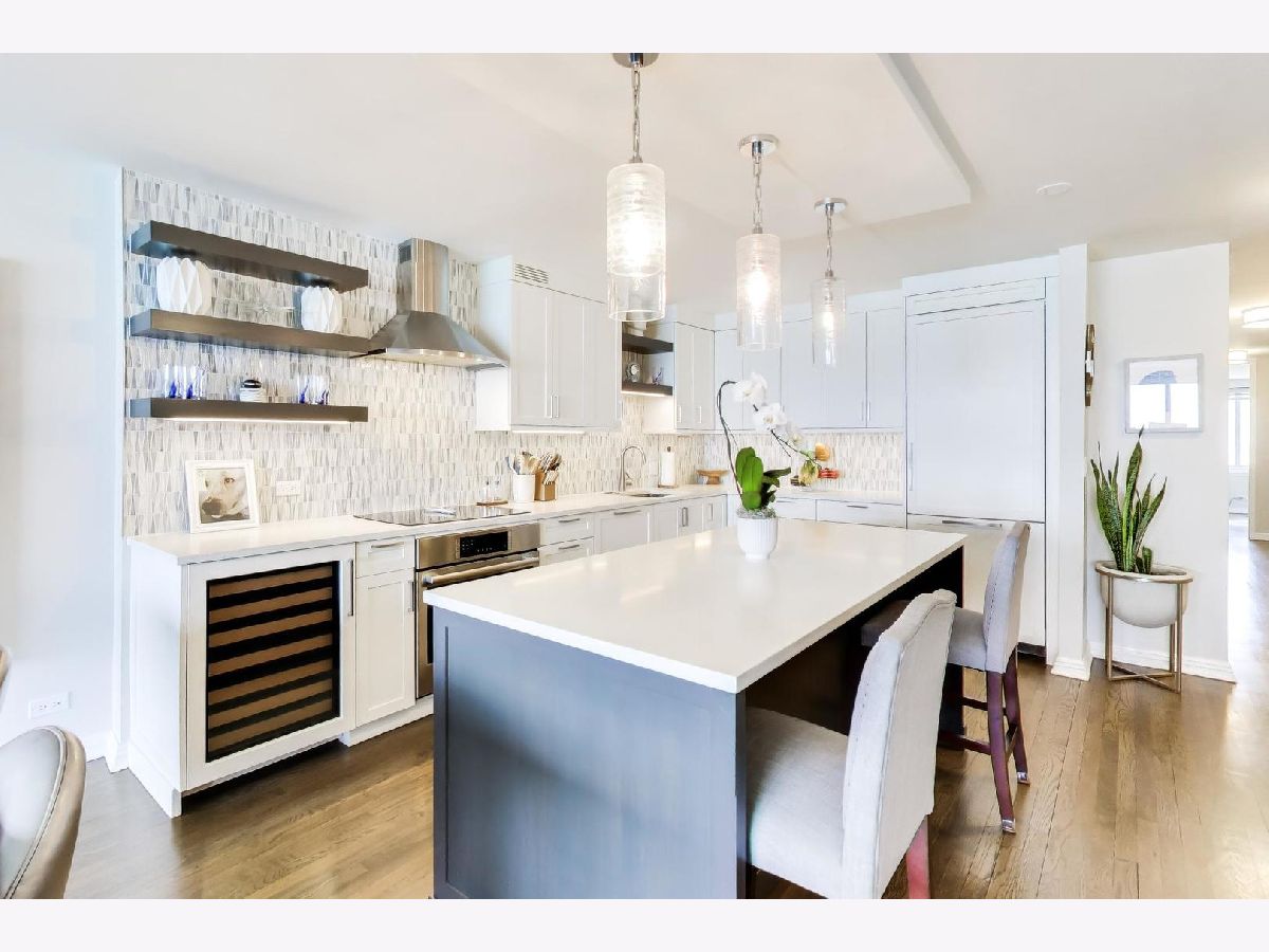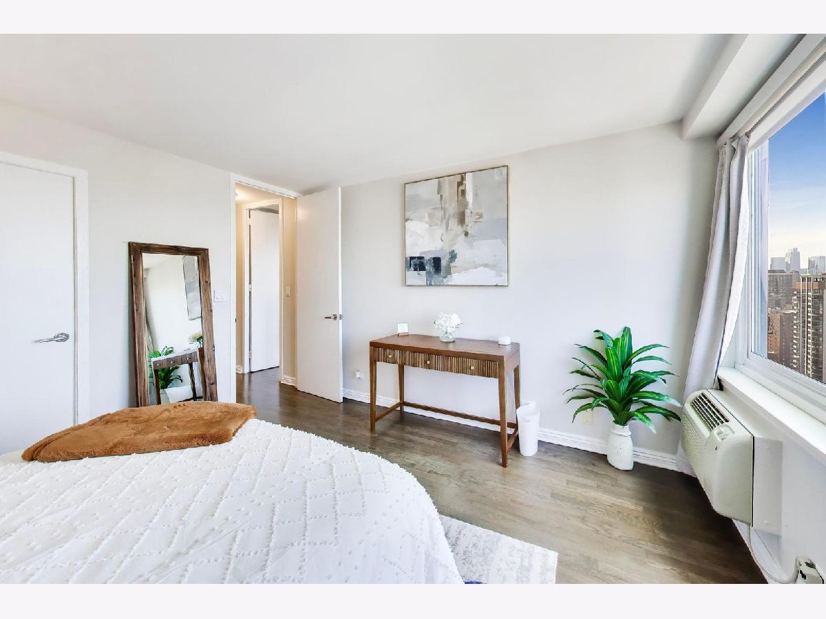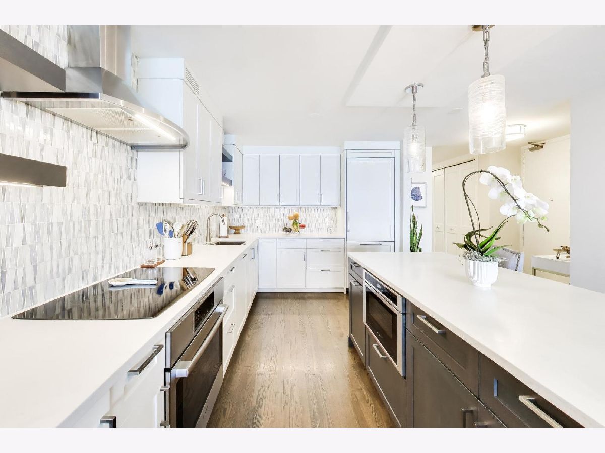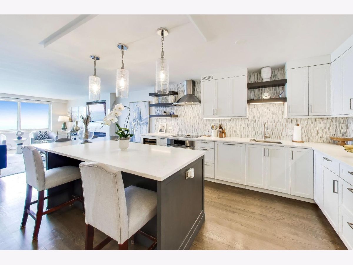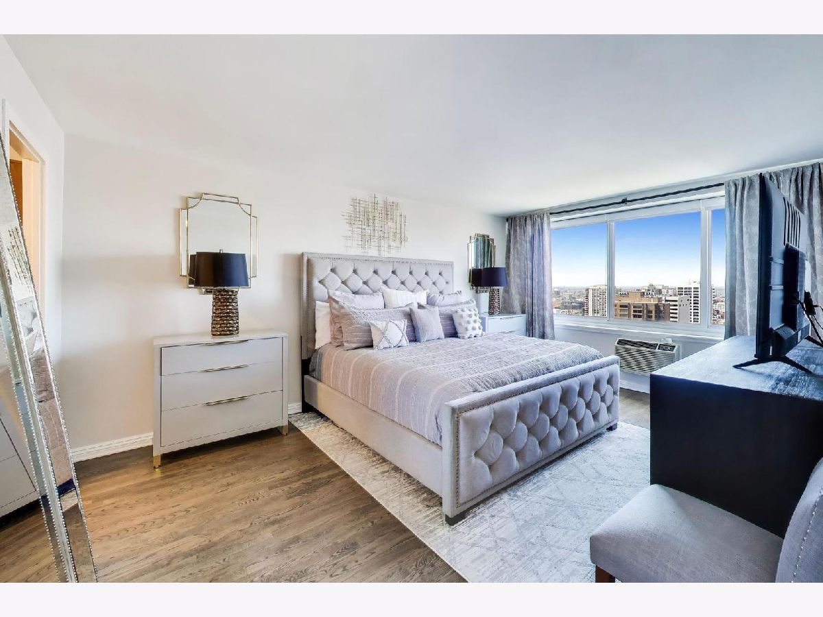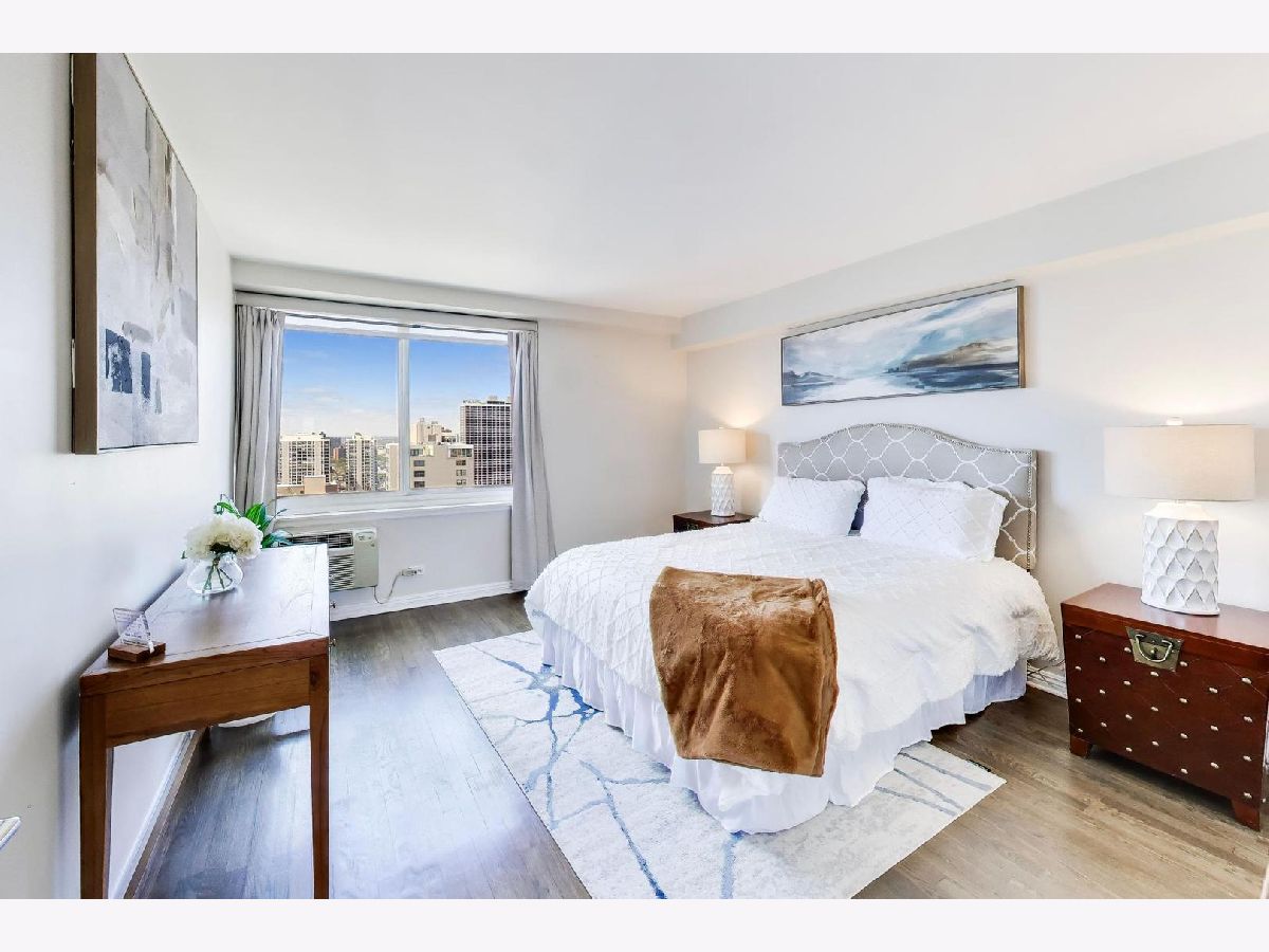 Looking for the kind of views you've only dreamed of? You've found your new home! Enjoy panoramic and stunning Lake Michigan, Navy Pier and beach views from your spacious living area, and fantastic city views and lights from both bedrooms for the best of both worlds. Recently renovated high end kitchen boasts plenty of storage, a large island with seating, gorgeous professional grade appliances, designer tile and lighting, inverted tray ceiling and a beverage fridge. Spacious open plan living area with room for a variety of configurations and separate seating, dining and works areas. Modern marble fireplace and pristine dark hardwoods that flow through the home. Luxurious and generously sized primary suite includes a large walk in closet and spa-like bathroom with custom cabinetry integrated with a double vanity, and a huge shower. Second bedroom is also large, with it's own walk-in closet. In-Unit washer/dryer and an incredible amount of additional hallway closet space. Building amenities recently renovated and feature a massive indoor-outdoor entertaining space on the roof, complete with seating, grills, work areas, kitchen and views in every direction. Large gym, valet parking, bike room, storage locker, and 24 hour doorman. Pets welcome. Meticulously kept building, with recent updates to elevators, lobby, hallways, roof and facade. Unbeatable Gold Coast location, right in the heart of everything where historic charm combines with modern elegance. Steps to the finest shopping in Chicago, on Magnificent Mile and Oak Street, top tier dining, both casual and upscale, beaches and the Lakefront trail, public transport, parks, nightlife, you name it.