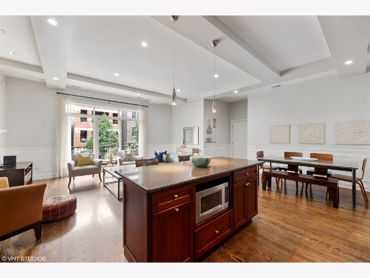 Expansive 3 bed/2 bath condo in rare seven unit elevator building. Walk right into this impressive extra wide living room with tray ceiling detail and wainscoting throughout. Distinguished dark stain hardwood floors bolster from room-to-room. Updated kitchen with high-end stainless steel appliances and solid surface counters and backsplash. Recently freshly painted in cool gray tones. Notable master suite with spa caliber master bath with steam shower, jacuzzi tub and double vanity. Large bedroom sizes. Full size washer & dryer. Additional storage unit on same level as condo. Two outdoor spaces: extra wide front balcony off living room and cozy back deck off primary bedroom. Walking distance to new Whole Foods, Southport shops & restaurants, Southport Brown Line and Belmont Red Line and Burley School. Attached garage parking included in price.