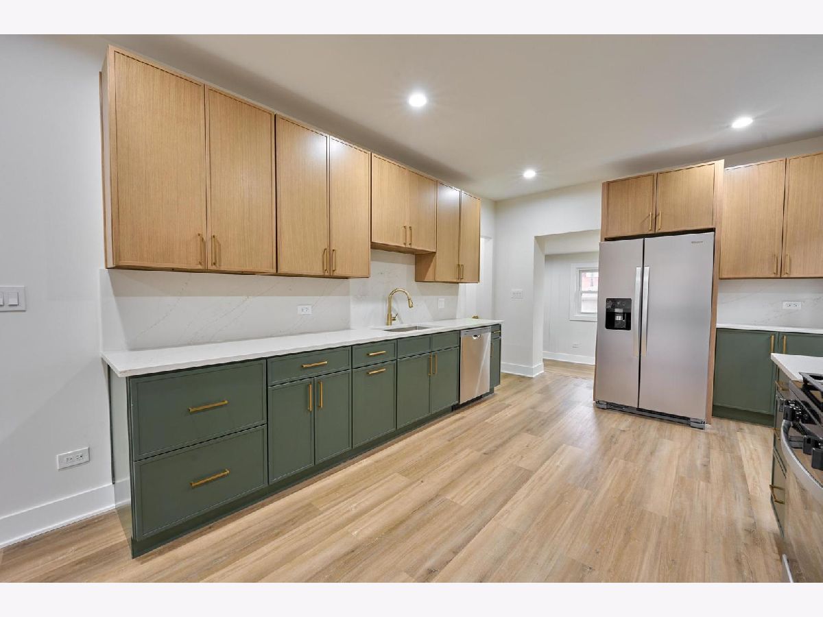 Fully renovated, move-in ready brick bungalow offering 4 bedrooms and 3 full bathrooms, completed with permits and warranties throughout. The bright, open main level features luxury vinyl plank flooring, recessed lighting, and a designer kitchen with quartz countertops, two-tone cabinetry, statement backsplash, and brand-new stainless steel appliances. The main level includes two bedrooms and two full bathrooms, highlighted by a primary suite with private en-suite bath plus a beautifully finished hall bath. A custom mudroom with built-in bench and storage adds everyday functionality and convenience. The finished lower level provides exceptional additional living space, featuring a large recreation room, wet bar with beverage fridge, two additional bedrooms, a third full bathroom, and laundry and mechanical area ideal for guests, extended family, or entertaining. Major upgrades include new roof, windows, gutters, fascia, soffits, HVAC system, furnace, central AC, water heater, upgraded water service, updated plumbing and electrical, and a new drain tile and flood control system, all completed with permits. Detached two car garage with new garage door. Approximately 2,243 square feet of finished living space across two levels. A rare opportunity to own a truly turnkey home in Berwyn with no deferred maintenance.