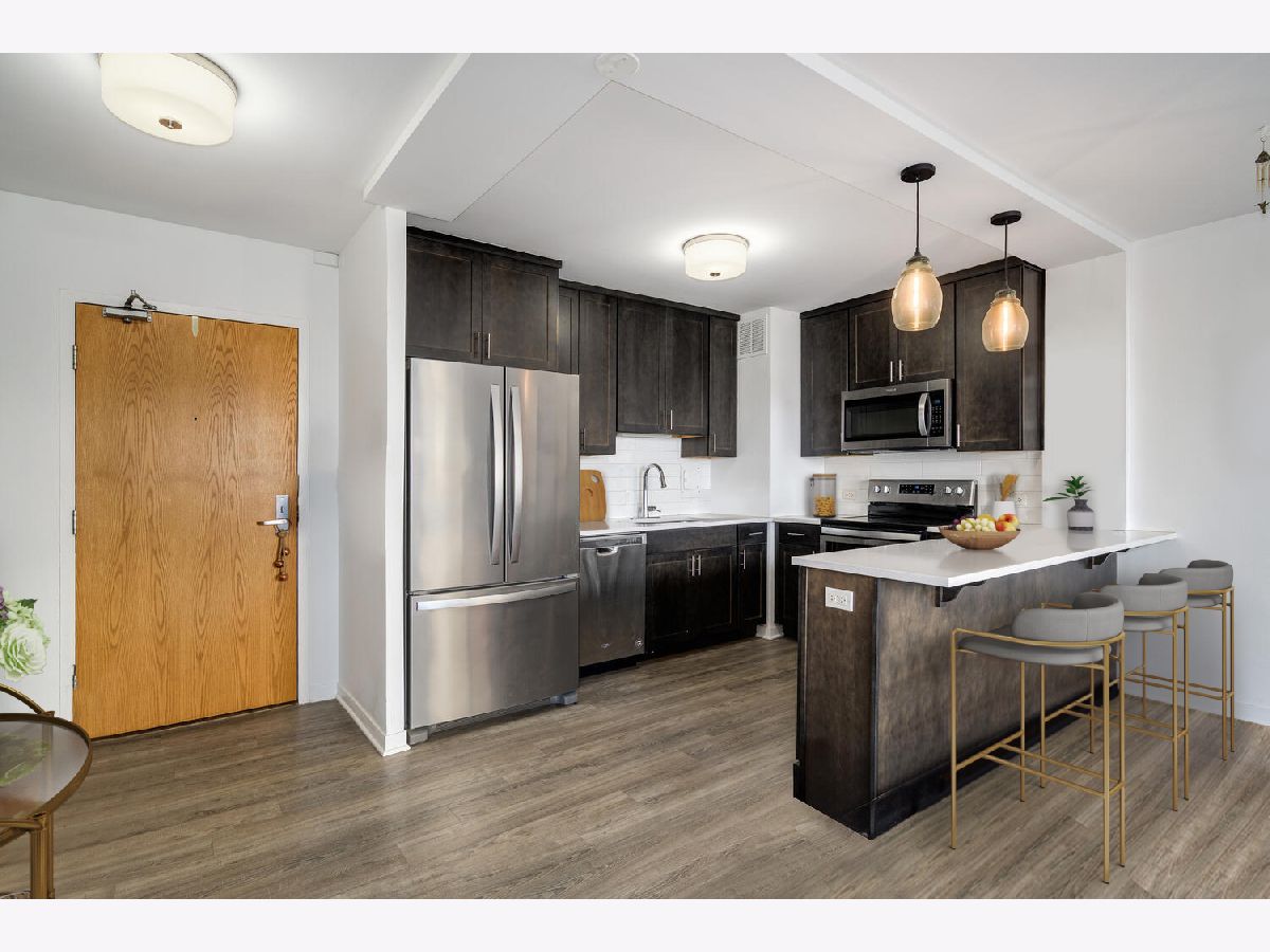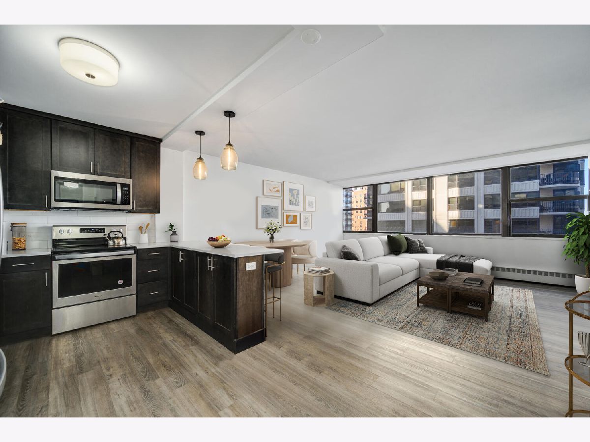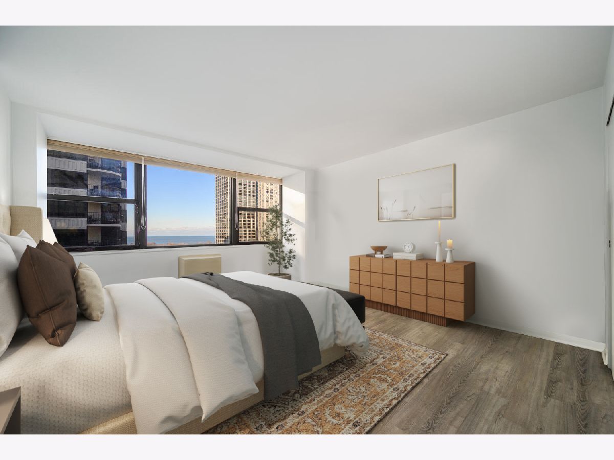 Step into this thoughtfully redone, spacious one bed in prime Gold Coast location. The modern kitchen is outfit with quartz countertops and a stainless steel Whirlpool package. Your sunny living space features northern exposure and lake views. The views continue in the oversized bedroom, along with ample closet space. 1445 State Pkwy features 24-hour door staff, on-site management, exercise room, laundry facilities and a recently redone modern outdoor sundeck with grills. Deeded, valet parking available for additional 28K.