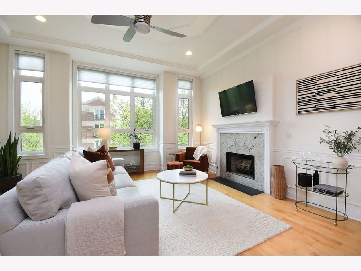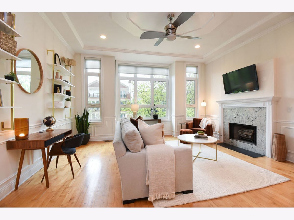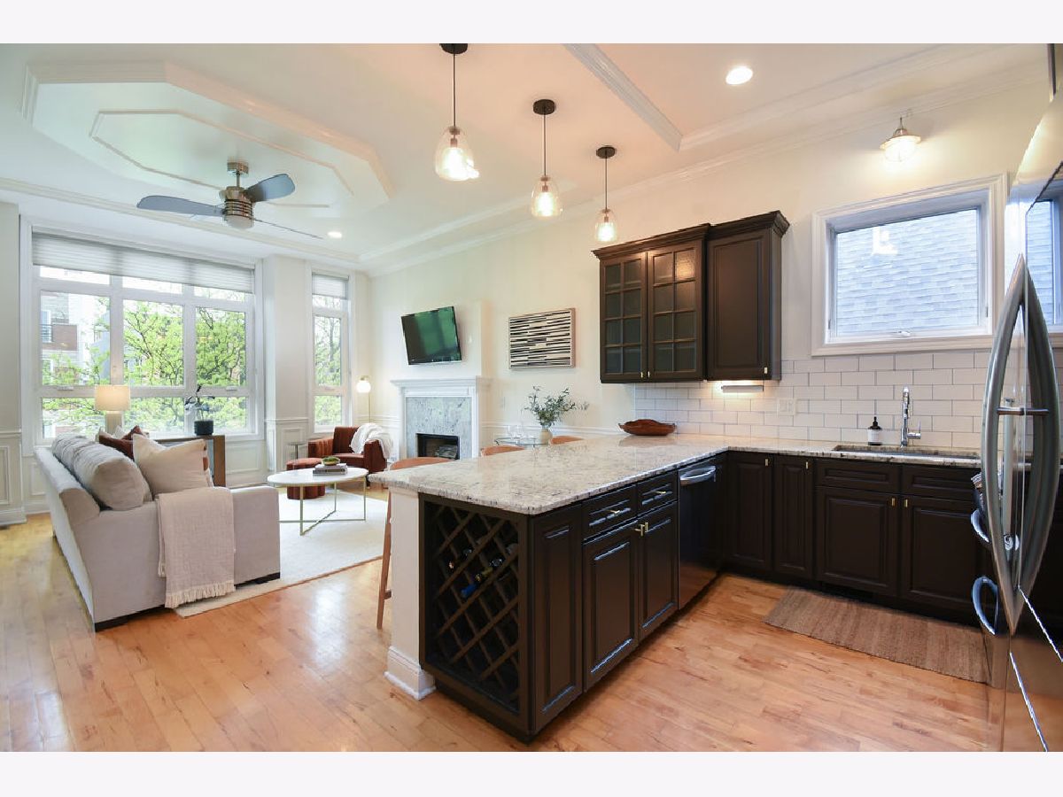 Welcome to your stunning penthouse condo in Wicker Park filled with luxurious finishes, hardwood floors, and rooftop patios with skyline views! The expansive living room features soaring ceilings with a beautiful tray detail, a gas-start fireplace, and oversized west-facing windows that flood the space with sunlight. Updated kitchen with granite countertops, stainless steel appliances, large peninsula with seating, abundant storage, and built-in wine rack. Main level includes two bedrooms and two full baths, washer/dryer, and a true primary suite complete with a walk-in closet and private deck. The ensuite bath is a relaxing retreat, featuring a deep soaking tub and a beautiful walk-in steam shower. Upstairs, a versatile second-level space showcases an additional living area or home office but can easily be converted back into a third bedroom. This level also provides direct access to your private wrap-around rooftop deck-a rare and exclusive feature with no shared access and entry directly from within the unit. The rooftop was upgraded with a new composite deck in 2020 and offers incredible skyline views. Ideally located with easy access to I-90/94, public transportation along Ashland and North Avenue, and the Division Blue Line just blocks away. Enjoy close proximity to everyday conveniences and some of the neighborhood's best dining and nightlife along Milwaukee, Division, and Ashland.