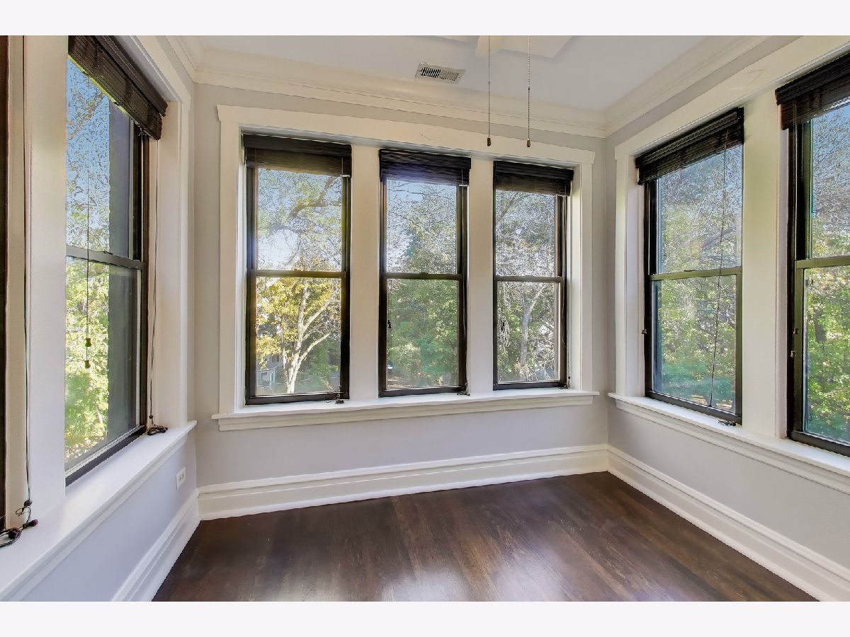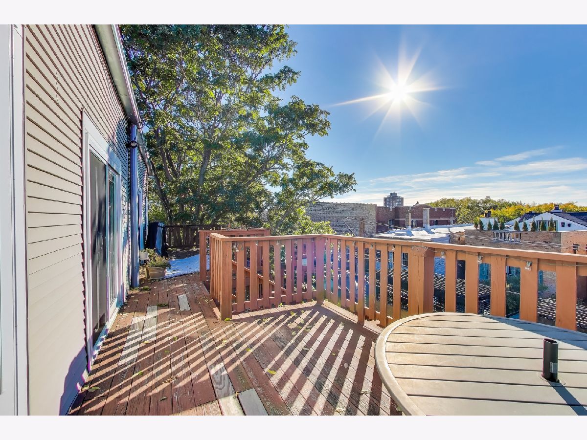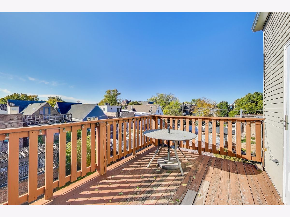 Southport Corridor/Graceland West / Top Floor / 2 Bedroom / +Den / +Office on a beautiful tree-lined street. Flooded with light, this home features hardwood floors throughout, new central AC & heat (2024), new side-by-side washer & dryer (2024), updated kitchen (2019), custom closets (2024), dishwasher (2024) and many additional upgrades. The large living room and den are linked to the dining room and kitchen, ideal for entertaining. The spacious bedrooms, with ample closet space, are separated by the central hallway. The expansive back deck, accessible from both the dining area and the mudroom, offers abundant natural light and impressive views of downtown. This home is walkable to Southport and Wrigleyville, brown and red line trains and so much more. Additional storage and bike room in the lower level.