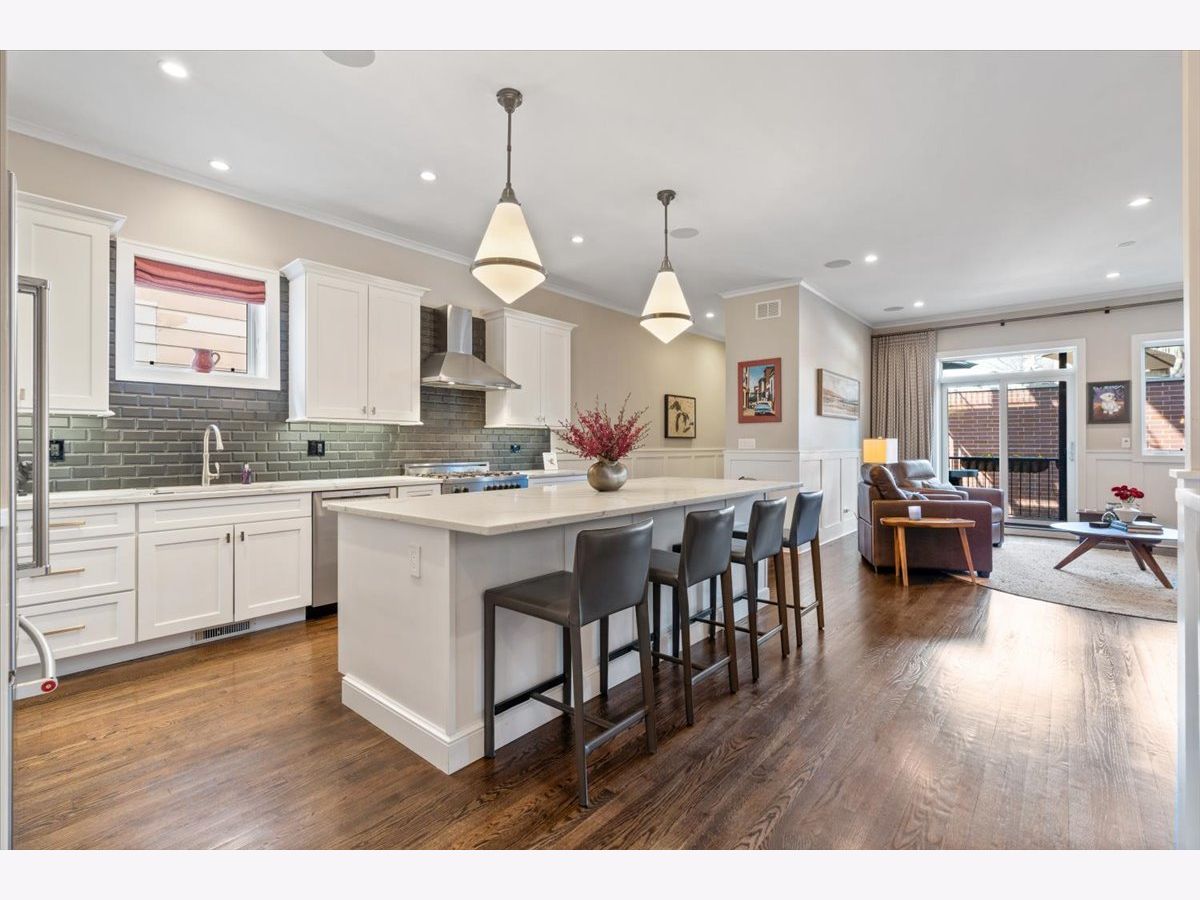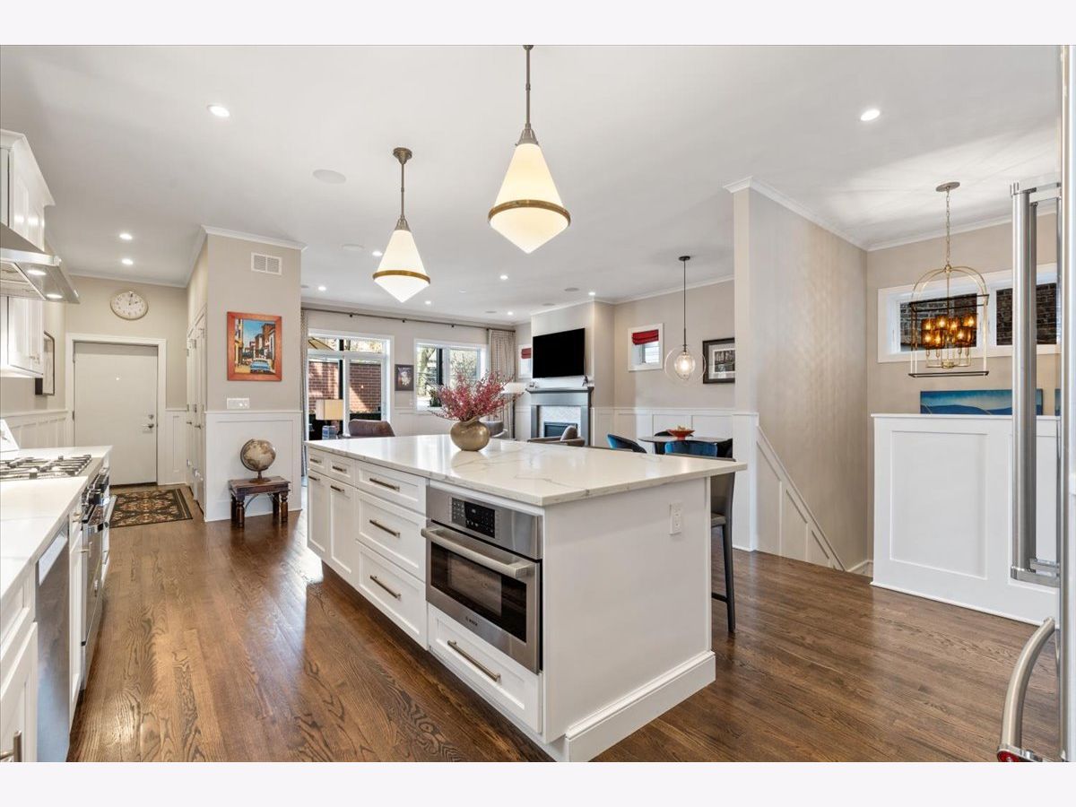 Step into perfection in this extraordinary Andersonville duplex, where every detail has been thoughtfully designed and beautifully executed. This all-brick custom residence sits on an oversized 33-foot lot, allowing for an impressive 24-foot-wide interior rarely found in the city. The gracious main level offers exceptional flow with formal living and dining spaces, plus a welcoming family room, creating the ideal layout for both elegant entertaining and effortless daily living. At the heart of the home, the chef's kitchen is a true showpiece, featuring a 10+ foot island, butler's pantry, and refined finishes curated for those who love to cook, gather, and host. Multiple outdoor spaces elevate the experience even further, including front and rear terraces with direct access to the private garage roof deck, complete with gas & water for seamless indoor-outdoor living all season long. Custom Sonos system with dynamic in ceiling speakers in the home. A dramatic, well-positioned staircase leads to the private bedroom level below, where 9+ foot ceilings and radiant heated floors create warmth and comfort throughout. The stunning primary suite is a true retreat, offering a 14x7 walk-in closet, meditation area, spa bath with double vanity, and oversized steam shower. Three additional bedrooms, one currently configured as an office, and another full bath provide lifestyle flexibility. With its scale, finish level, and lifestyle appeal, this home gives upper-bracket custom single-family living a serious run for its money. Professionally landscaped front and rear yards are maintained seasonally, while the self-managed association keeps overhead low and maintenance a priority. One garage space included. All just moments from Andersonville favorites, Rogers Park Montessori, the Waldorf School, the Red Line, and the lake.