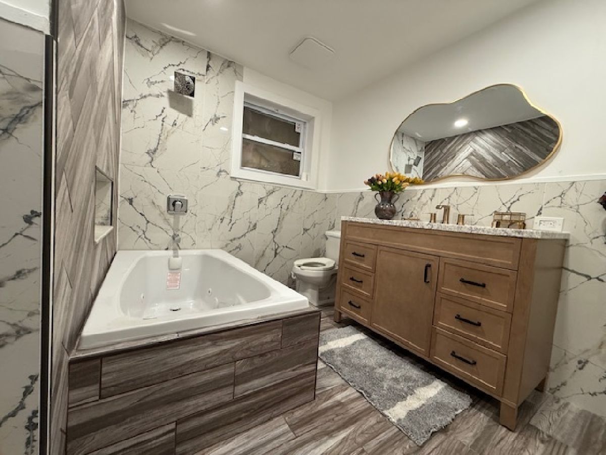 Welcome home to this beautifully remodeled spacious 2-bed, 2-bath brick ranch located in the heart of Ford Heights. This property underwent a gut rehabilitation in 2025, but it still needs a litle bit of finishing touches. The inviting layout features a spacious living room with large windows that flood the space with natural light. The modern kitchen features high ceiling, stainless steel appliances, quartz countertops, and ample space for a dining table. The bedrooms are bright and comfortable, each with built-in closets. The home offers an incredible ourdoor experience since it is seating on a 3 lot with a huge yard, the house is perfect for entertaining or relaxing outdoors. The luxurious Master Bedroom includes a full bathroom with a large whirlpool tub.