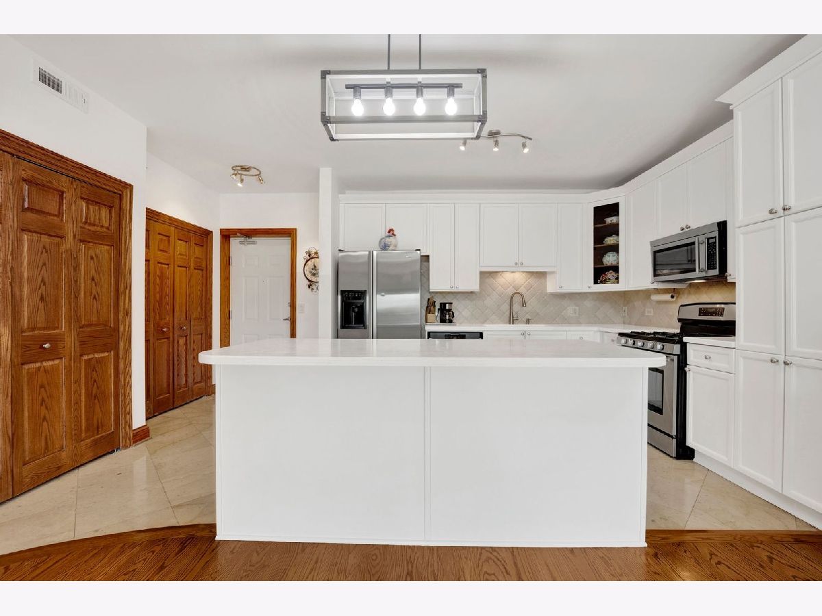 Move right in and enjoy this beautifully maintained condo! The spacious layout includes gleaming hardwood floors, large island, white cabinets, Jenn Air appliances, granite countertops, while the luxurious primary suite boasts custom oak closet organizers and a spa-like bath with heated stone floors, oversized shower, and whirlpool tub. Additional highlights include dimmer-controlled lighting throughout, tandem parking and huge storage! New AC and air handler (with warranty) Low assessments that includes HEAT! Walk to everything Elmhurst has to offer! Metra, restaurants, shops, library, Wilder Park, and more. **A must-see opportunity for easy, elegant Downtown Elmhurst living!*