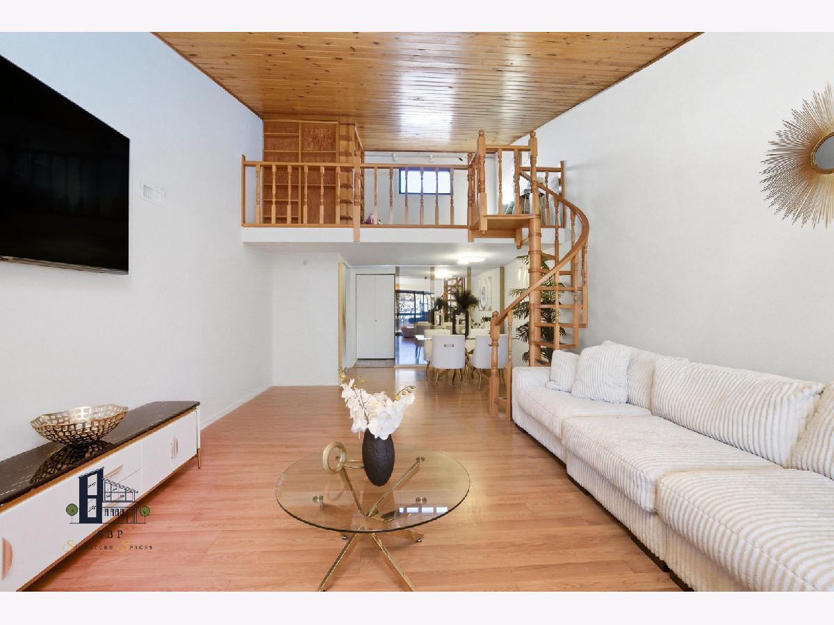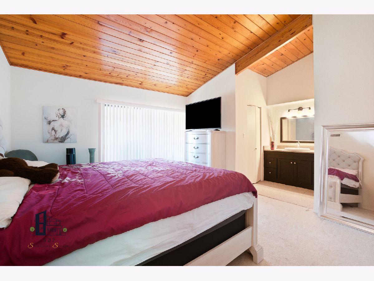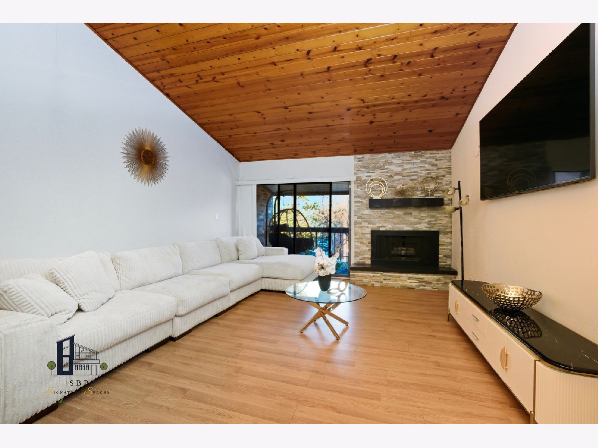 Stunning, move-in-ready 2-bedroom, 2-bath PENTHOUSE condo in the Scarborough Fare complex in Oak Forest, IL. featuring a loft! This penthouse offers an open-concept living and dining area, premium hardwood floors, and dramatic vaulted ceilings. A spiral staircase leads to the enormous loft (10x12) and finished attic space (20x12), perfect for a home office, spare bedroom, or additional storage. The unit has been impeccably maintained and features an in-unit foyer for added privacy. The primary suite includes a walk-in closet, private bath, vanity/makeup/ dressing area, and balcony access. The second bedroom offers a double closet, providing ample storage. The kitchen features quartz countertops, newer stainless steel appliances, a pantry, and a glass mosaic backsplash. Neutral colors throughout and a custom mirrored wall add to the home's appeal. While coin laundry is available, this condo also includes an in-unit laundry hookup ready for installation. Additional condo highlights include a beautiful stone gas fireplace, central air conditioning, and a large extended private balcony with stunning pond views, accessible from both the living room and the primary bedroom. This quiet, flexicore construction building offers secure access doors and extra unit storage conveniently located in the hallway. The property is professionally managed with a financially stable association. All utilities are included except electric. Low monthly assessments cover heat, water, gas, sewer, trash removal, lawn care, a community pool, tennis courts, fountains, clubhouse, walking paths, and pond maintenance. Two unassigned exterior parking spaces are included, with additional guest parking available. Prime location near forest preserves, bike trails, restaurants, library, shopping, country club, interstate access, Metra, and schools. Yes, investors can rent the condo to a tenant. Sold as-is. Seller willing to provide a home warranty. FHA approved.