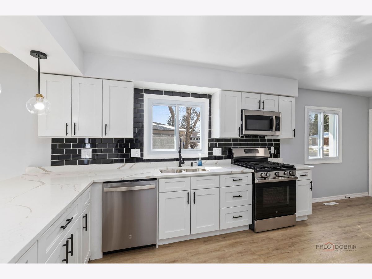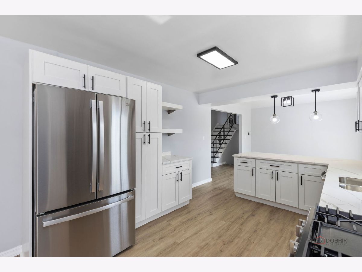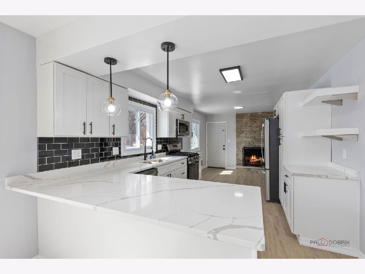 Welcome to this extensively renovated split-level home offering a large finished living space. This home has undergone a comprehensive renovation, featuring new flooring throughout, fresh interior finishes, and several mechanical updates, providing a true move-in-ready condition with minimal deferred maintenance. The main level showcases a fully redesigned kitchen, complete with quartz countertops, shaker-style cabinetry, stainless steel appliances, and a designer tile backsplash. The open flow into the dining and living areas enhances usability and natural light, creating a bright and inviting space. The home offers generously sized bedrooms along with updated bathrooms featuring contemporary vanities, fixtures, and finishes. The lower level adds significant additional finished living space, ideal for a family room, office, or flex use-contributing to the home's overall livable square footage and functionality. Exterior features include a large private backyard with patio space, suitable for entertaining and outdoor enjoyment, along with a 2-car attached garage and extended driveway for ample parking.