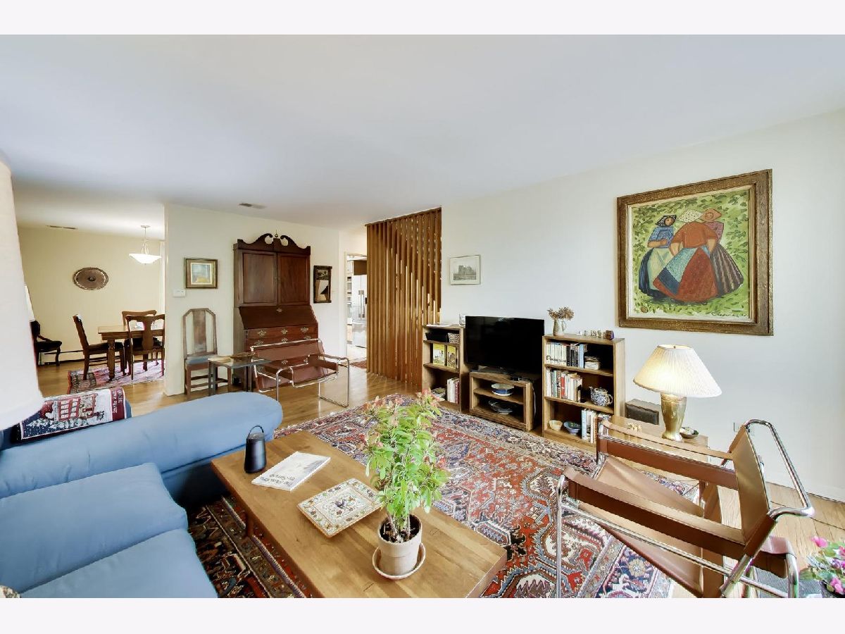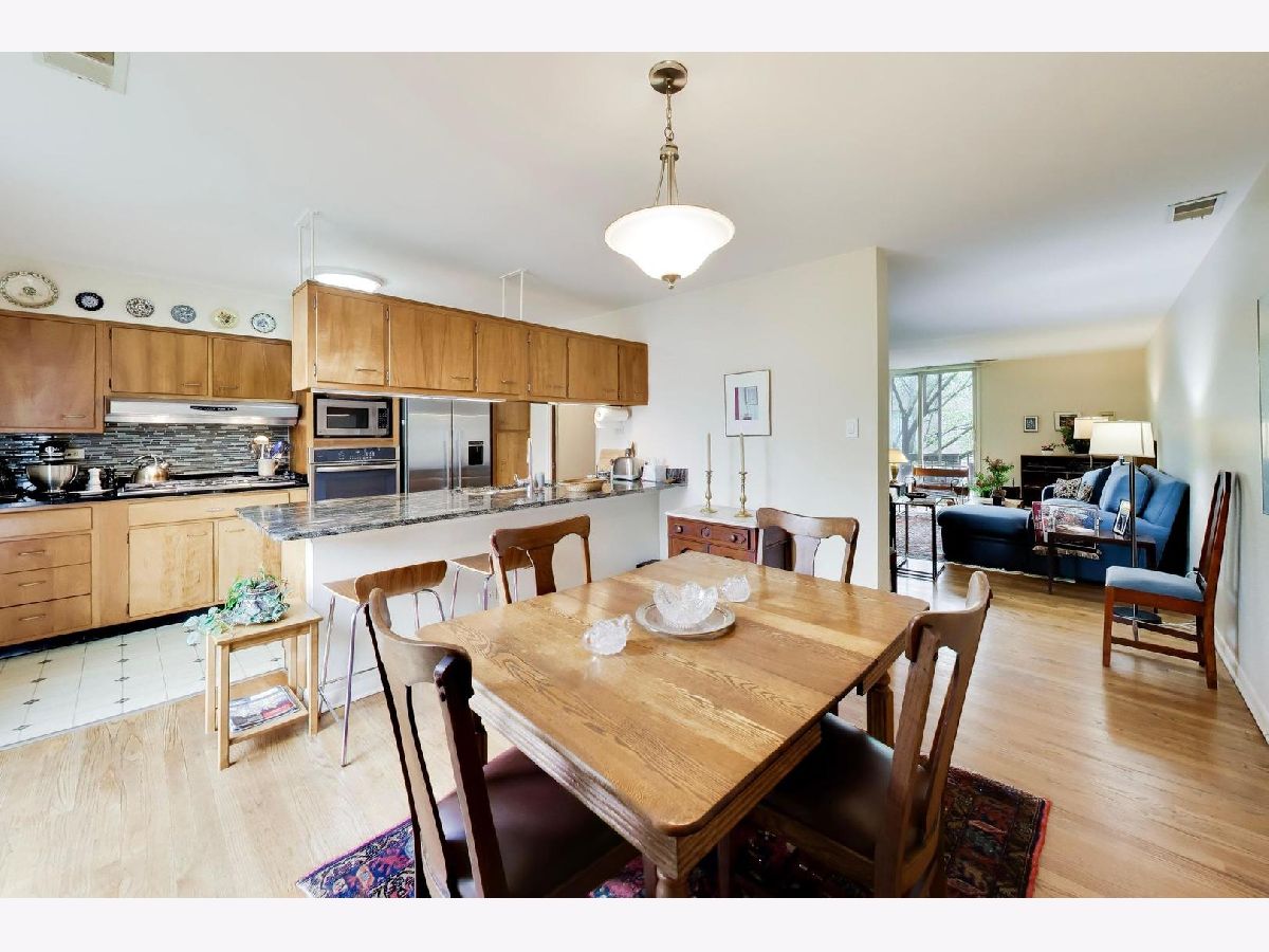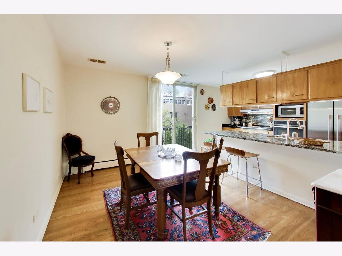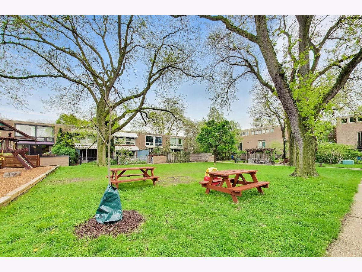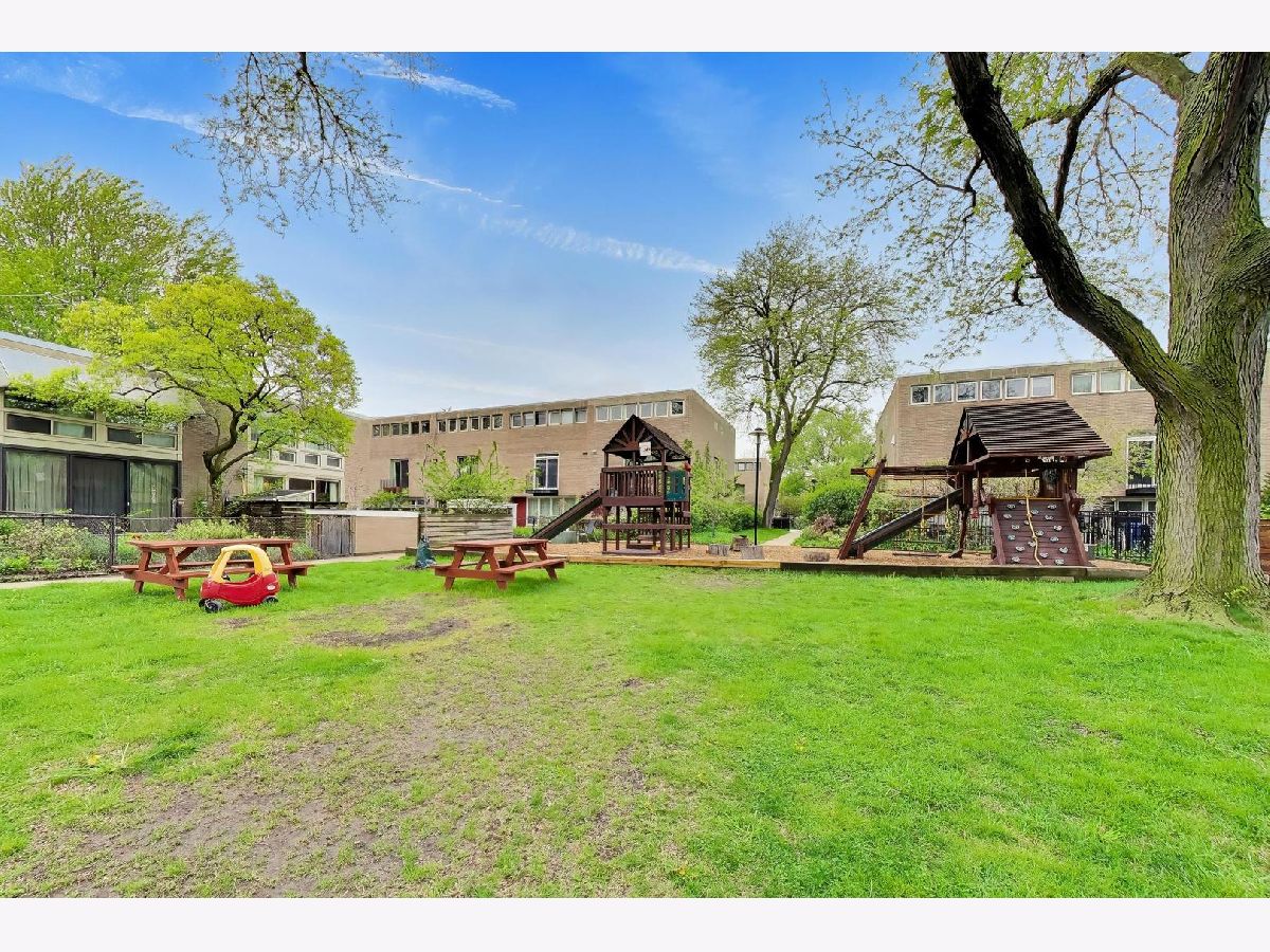 At last! An E townhome finally hitting the market in the heart of the University of Chicago campus nestled between 55th and 56th St. on a quiet hidden street just a block from the Hyde Park Shopping Center with the Trader Joes, Walgreens, Ace Hardware and wonderful restaurants and independent shops. For over 30 years, the current owner has welcomed generations of students into this house to learn how to play piano on her Steinway in the lower level family room. The home has been lovingly maintained over the many years, and has much of the original mid-century details still untouched. However, central AC was added to the main and upper floors and all of the windows were replaced with easy to operate double paned windows which make this home completely liveable all year around. The great thing about these I.M. Pei houses is that the main and upper levels were finished in genuine oak flooring including the stairs going up and down to the lower level. These stairs have been carpeted for many years, so they should uncover to be revealed as beautiful as when they were installed in 1961. The original mid-century wood kitchen cabinets gleam. The stainless steel appliances and granite countertops are much newer including the brand new dishwasher (2026). A big sliding glass door leads out to the balcony overlooking the landscaped back yard and the private footpath separating this row of houses from the row that faces 55th St. There is also a storage shed. The living room has another sliding glass door leading to a small balcony. Just to the east are two gardens with mature trees that the entire block of townhomes shares and enjoys. One of them is a wide open quiet space with seating and the other hosts a livelier combination of playground equipment and tables and seating for picnics and get-togethers. The separate dining room is also is lit by the glass door that looks out to the back yard. Upstairs are 3 bedrooms and a full bath. The primary bedroom spans the entire width of the house and has a full wall of windows. The lower level has the big family room with floor to ceiling windows looking out to the garden and a door for easy access to the back patio and garden. It has a carpet covering the floor to balance the sound of the grand piano. The utility room has a full size washer (2026) and dryer (2025), a boiler for the hot water baseboard heat, a hot water heater and an electrical box that is poised for replacement. Many owners of this model of house have installed a shower stall to open into the powder room on the other side of the wall to create a full bathroom. In the front of the lower level is the 4th bedroom with a full length window looking out to the front yard. There is a deep walk-in storage space fitted with shelves above the front entrance of the house which also houses the air handler for the central A/C. A smaller storage closet is under the stairs on the lower level. Out front there is plentiful parking. While none is assigned, the owner has never lacked for a space. This is the location everyone has been waiting for. While having easy access to retail and transportation, it's also amazingly quiet and peaceful protected from major roads and even foot traffic. It's an easy walk or roll to the buildings of the University of Chicago, both Lab Schools, and the 57th St. sandy beach on the lake. It's in the Ray School district as well which is an easy walk away. Take your bike to the lakefront path. It's a 19 minute commute on the Metra to the Loop and it is estimated to take 17 minutes to drive. There are commuter buses nearby as well. The restaurants and bookstores of 57th St are right outside your door and the Trader Joes/Walgreens/Ace Hardware and restaurants of the Hyde Park Shopping Center are a block to the north. A lovely home in a terrific location. Walk Score says it's a walkers' and bikers' paradise with good transit options.