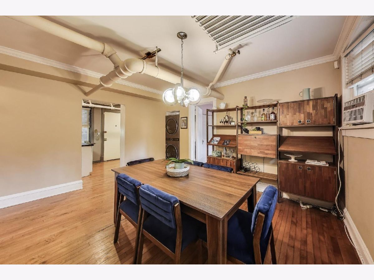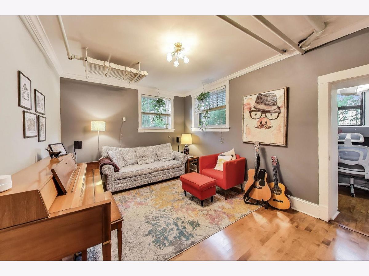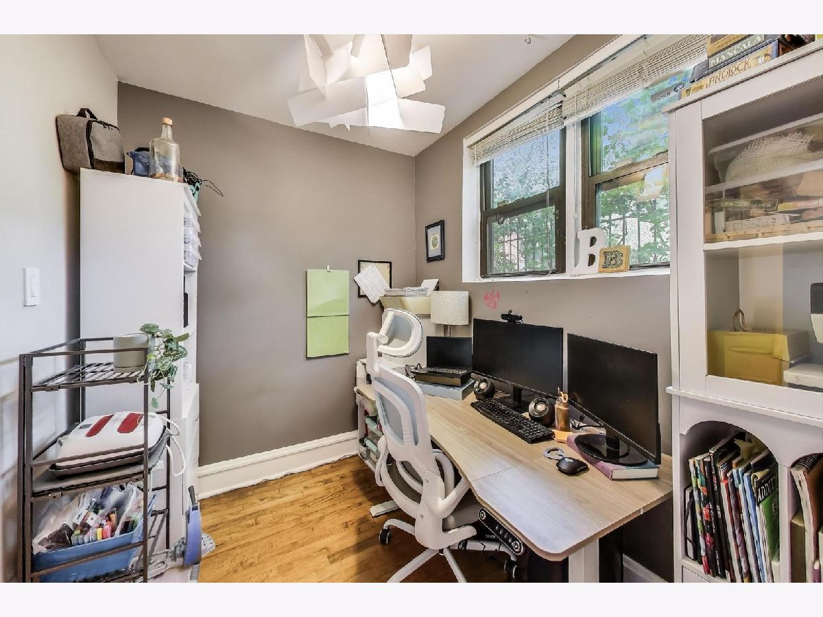 Truly unique 2 bed/1 bath + office home in beautiful Edgewater! With high ceilings, incredible storage and 1225 square feet, this doesn't feel like a typical garden condo. The private foyer has two huge storage rooms and serves as a proper entrance before you even step foot in the home! Hardwood floors take you through to the dining area, which could also be a combo living/dining room.The kitchen is laid out well with new appliances (2024), excellent counter space and tons of storage! Off the living room is a great office space with a window! Both bedrooms have deep closets and the hardwood floors continue.The washer/dryer was replaced in 2023. Off the kitchen is a semi-private patio that is only used by other residents to access the included storage closets. An additional communal patio is great for more outdoor space! Parking has never been an issue! The building tuck pointed and replaced the roof in 2024 and installed a new boiler in 2023, so some of the major projects have just been addressed! This is a GREAT walkable location to two grocery stores, the lakefront, public transportation, and incredible restaurants! Come see your new home!