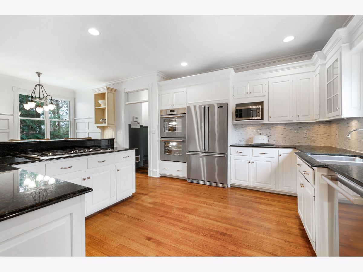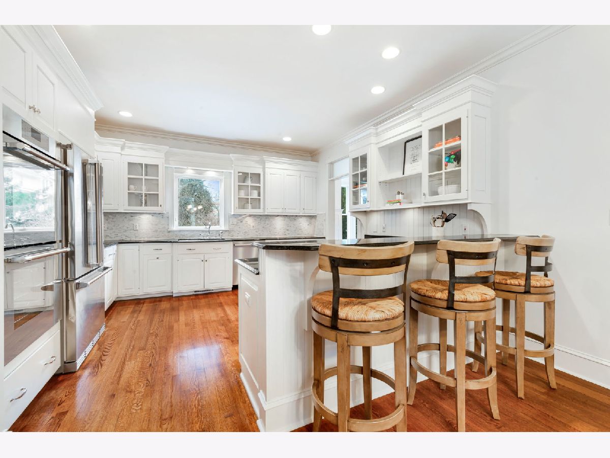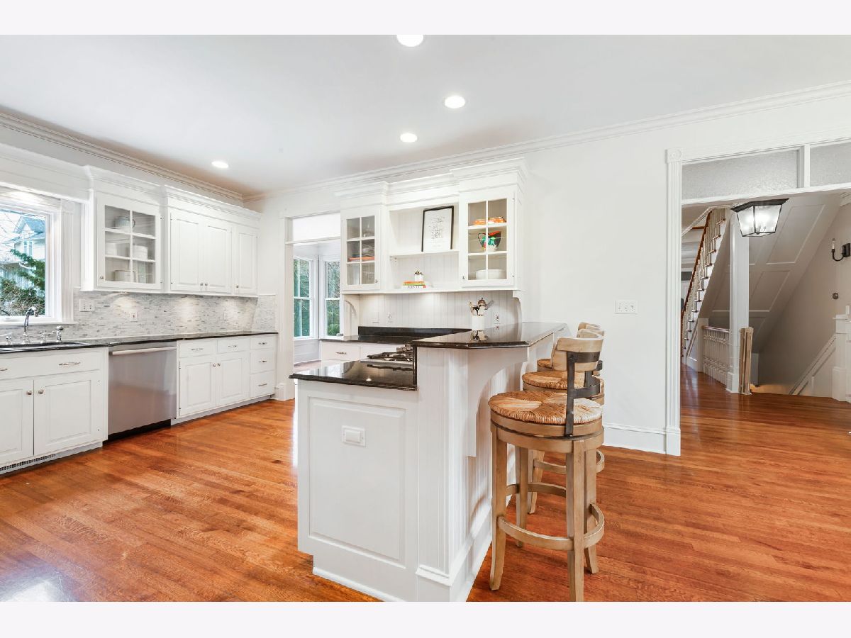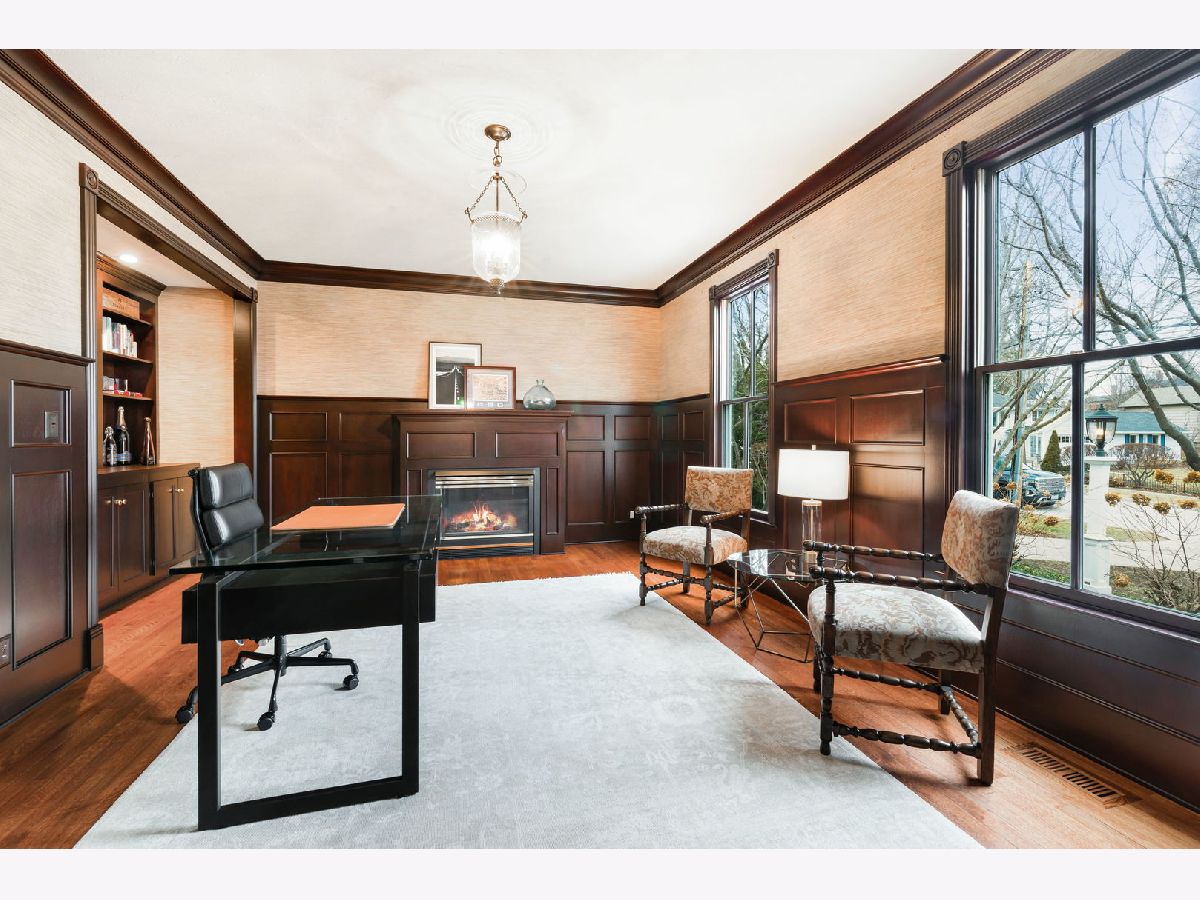 Exceptional three-story residence ideally situated in the heart of Geneva's coveted Historic District, just two blocks from 3rd Street shopping, dining, and entertainment, and only one block from the Fox River and scenic Fox River Trail. This premier location offers effortless walkability to all that downtown Geneva has to offer, along with easy access to the highly acclaimed Geneva School District 304. The impressive entryway welcomes you into beautifully appointed interiors highlighted by exquisite custom millwork, transom windows, thick crown and base moldings, and elegant wainscoted walls throughout. Hardwood floors flow seamlessly through the spacious main level, beginning in the elegant oversized living room, which features a wood-burning fireplace and built-in cabinets with glass fronts and accent lighting. Abundant natural light fills the space through two sets of French doors, leading to a stunning screened-in patio and creating a seamless indoor-outdoor living experience. The heart of the home is a beautifully designed chef's kitchen with high-end stainless steel appliances, including a new dishwasher, stove, and double ovens (2026), ample white cabinetry, granite countertops, and a new backsplash. A charming eat-in nook with built-in bench seating is framed by a large picture window and opens directly to the sunroom, offering a comfortable, light-filled space perfect for both everyday moments and relaxed entertaining. Just off the kitchen is a built-in desk area and a stunning formal dining room showcasing thick crown molding, wainscoted walls, and a built-in hutch with accent lighting. A private office, featuring beautiful millwork, custom built-ins, and a fireplace, offers incredible flexibility, with the potential to serve as a first-floor bedroom complete with an attached full bath, perfect for guests or multigenerational living. A mudroom with open locker-style cubbies completes the main level with both style and practicality. The second level is highlighted by a luxurious primary suite, featuring a completely remodeled en-suite bath (2025 by Hogan), offering dual quartz-topped vanities, an oversized glass-enclosed shower, and a new large walk-in closet with built-ins. The primary suite also enjoys private access to an enclosed heated balcony overlooking the beautifully landscaped backyard. Two additional spacious bedrooms on this level feature generous closets and share a Jack-and-Jill bath. A convenient laundry room with a sink completes the second floor. The third level offers exceptional flexibility with a spacious loft, recreation room, and a fourth bedroom with en-suite bath, all featuring cathedral ceilings, closets, and custom built-ins. The finished lower level expands the home's living and entertaining spaces, featuring a spacious family room anchored by a striking stone-surround fireplace. A well-appointed wet bar with a large island, counter seating, built-in cabinets, fridge, ice maker, and sink, ideal for hosting gatherings. Additional highlights include a versatile bonus room perfect for a 2nd office or craft space, a new home gym (2025) with mat flooring, a half bath, and abundant storage. Outdoor living truly shines, highlighted by $200-300K in professional landscaping, with Hydrangeas gracing the front and back yards, peonies along the side, and a stunning purple tree that makes a statement each spring. Relax or entertain on the expansive multi-level brick paver patio, surrounded by mature trees for exceptional privacy and generous open green space for outdoor enjoyment. Completing this exceptional property is a heated, attached three-car garage with a golf simulator. This beautiful home offers the perfect blend of tranquility and walkable convenience, just steps from the Fox River, nearby parks, 3rd Street shopping and dining, and all the charm downtown Geneva has to offer. A rare opportunity to enjoy a lifestyle defined by historic charm, timeless luxury, and an unbeatable location.