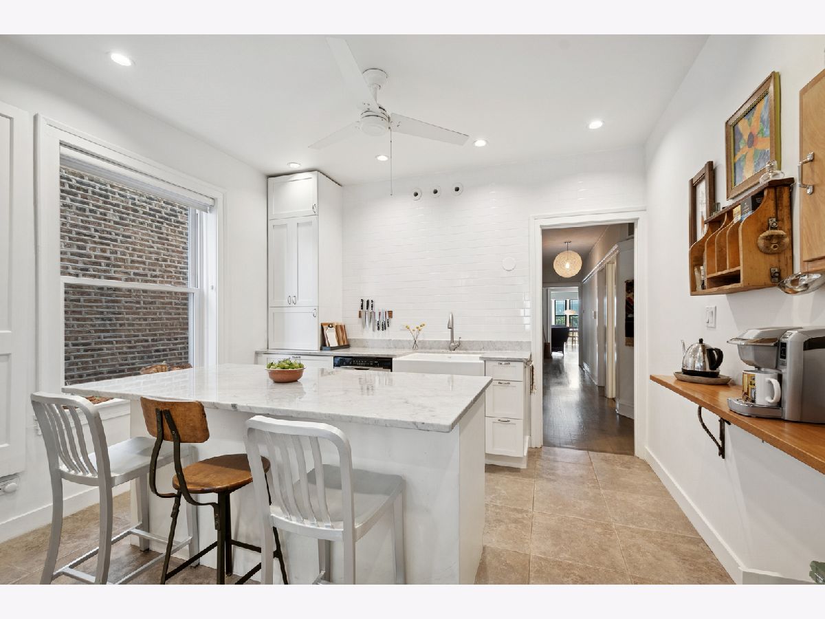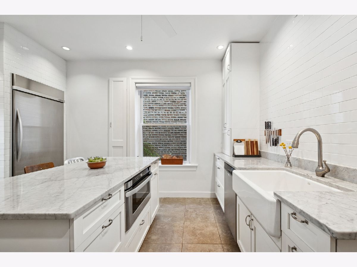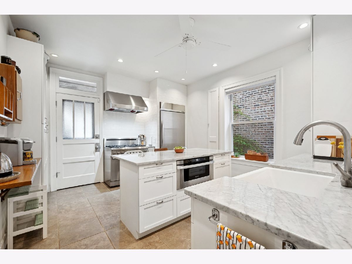 Discover this rarely available, fully renovated 4-bedroom, 2-bath condo in a charming boutique building, ideally situated just steps from Andersonville's vibrant shopping, dining, parks, and entertainment. This architecturally distinctive home boasts a modern kitchen and baths, making it a true gem. A proper entry with a coat closet opens to a sizable, stylish living room bathed in abundant sunlight from its east, south, and west exposures. The dining room, featuring three walls of windows, is a perfect spot to linger. A gallery hallway, ideal for showcasing an art collection, leads to the gorgeous chef's kitchen. This culinary haven includes a center island, Carrera white marble counters, a Thermador 6-burner range with a vented hood, Bosch and Kitchenaid appliances, a subway tile accent wall, and an oversized farmhouse sink. Custom cabinetry offers ample storage, including pantry space and a coveted coffee bar. The spacious primary suite features a comfortable sitting area and generous closet space. White Carrera marble primary bath,walk in shower and high end fixtures. The 2nd bath has white subway tile and a tub/shower combination. All four bedrooms have closet organizers.Enjoy beautiful hardwood floors throughout, newer windows, in-unit laundry, a storage room in the basement, a charming patio, and a garage space. Perfectly located on a tree-lined street in the highly sought-after Andersonville neighborhood, this is truly the perfect place to call home!