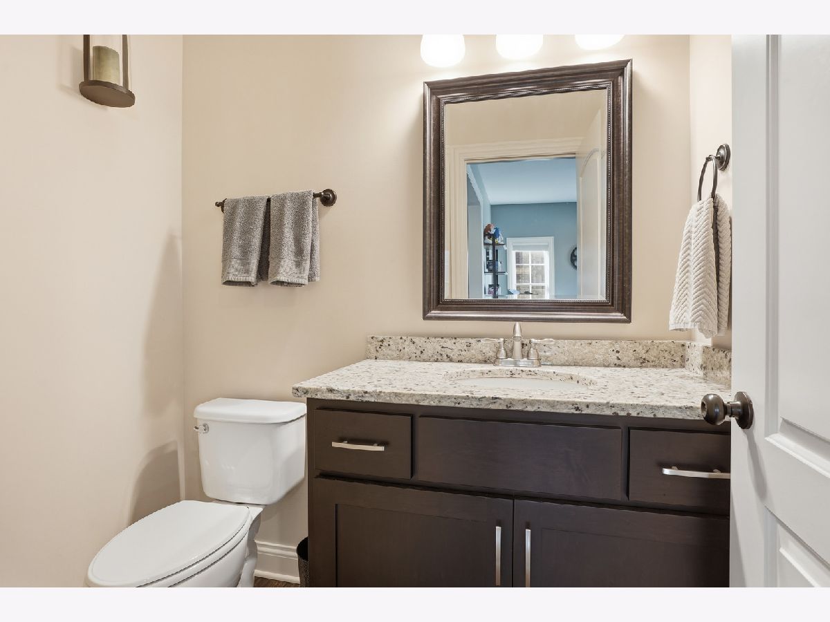 Now is your opportunity to own this absolutely stunning 3 bedroom, 2 1/2 bathroom, almost entirely brick, contemporary style home located in the desirable Evlyn's Gate North subdivision of Homer Glen. Custom built and meticulously maintained featuring low maintenance exterior brick and fiber cement board. Gorgeous, gleaming dark hardwood flooring runs throughout the entire main level accentuated by a modern open floor plan. Tall, picturesque windows in the living room provide an abundance of natural light to the space. The large kitchen features all granite countertops, island with breakfast bar, custom cabinetry, top of the line stainless steel appliances, an enormous walk-in pantry, a serving nook, and recessed lighting. Desirable first floor powder room means guests won't need to traipse upstairs to use the restroom. The primary bedroom is spacious with a beautiful tray ceiling, large bay windows, huge walk-in closet, and an en suite bathroom featuring granite countertops, dual sink vanity, and an enormous step-in, seated shower with glass door. The other bedrooms are also a great size with plenty of closet space. The hallway guest bathroom also features granite countertops and a dual sink vanity. The full, English basement is unfinished with tall, 9 ft ceilings and a roughed-in half bathroom just waiting for your finishing touches. Washer & dryer new in 2018! Exterior access from the kitchen leads to a private, oversized brick paver patio. The 2.5 car garage means no fuss with snowy cars come winter time with plenty of guest parking on the brick paver driveway or street. Amazingly located near some of the best parks, schools, shopping and dining that Homer Glen has to offer. Walking distance to Evyln's Gate North Park with a beautiful gazebo perfect for hosting events and get-togethers. You won't want to miss this one, book your showing today!