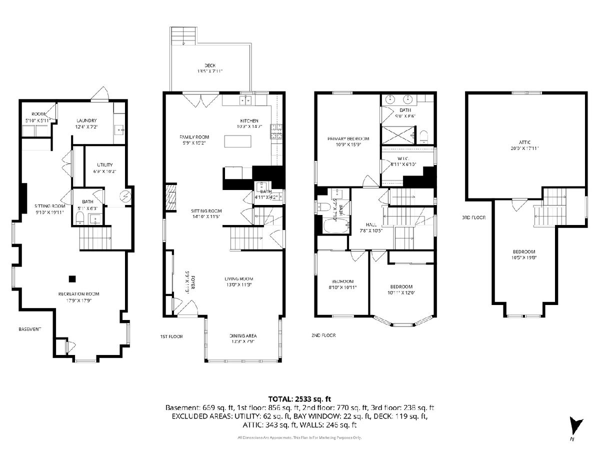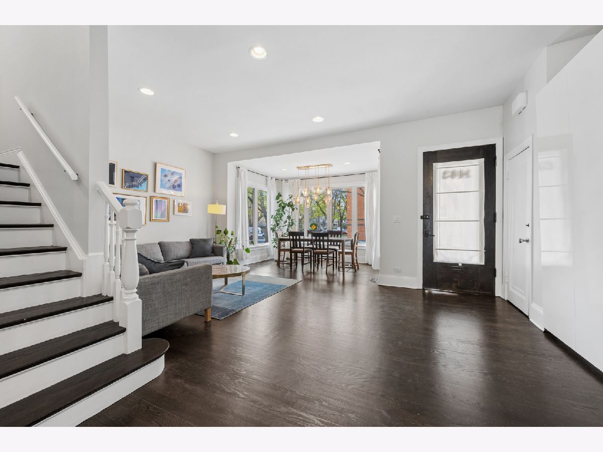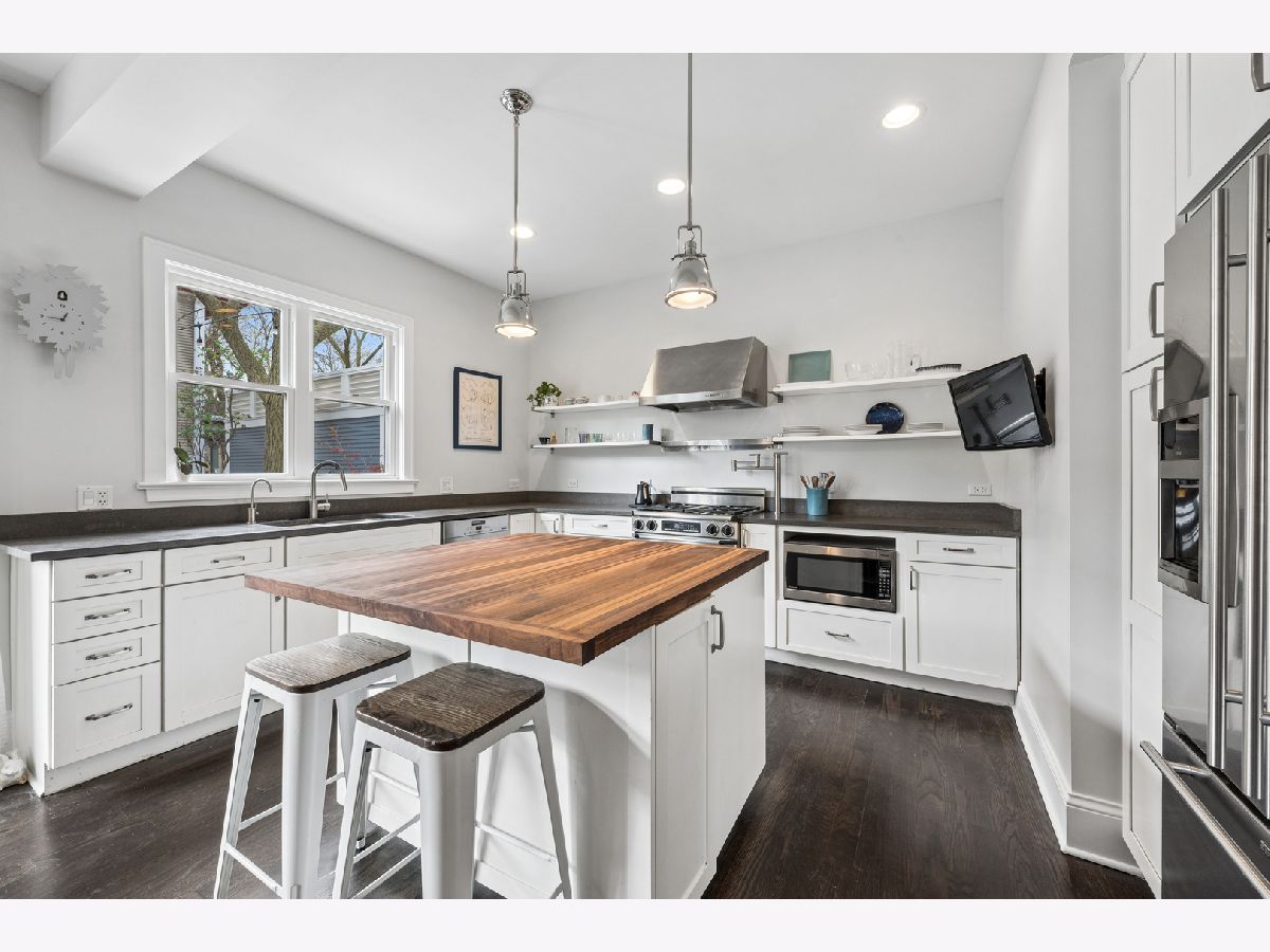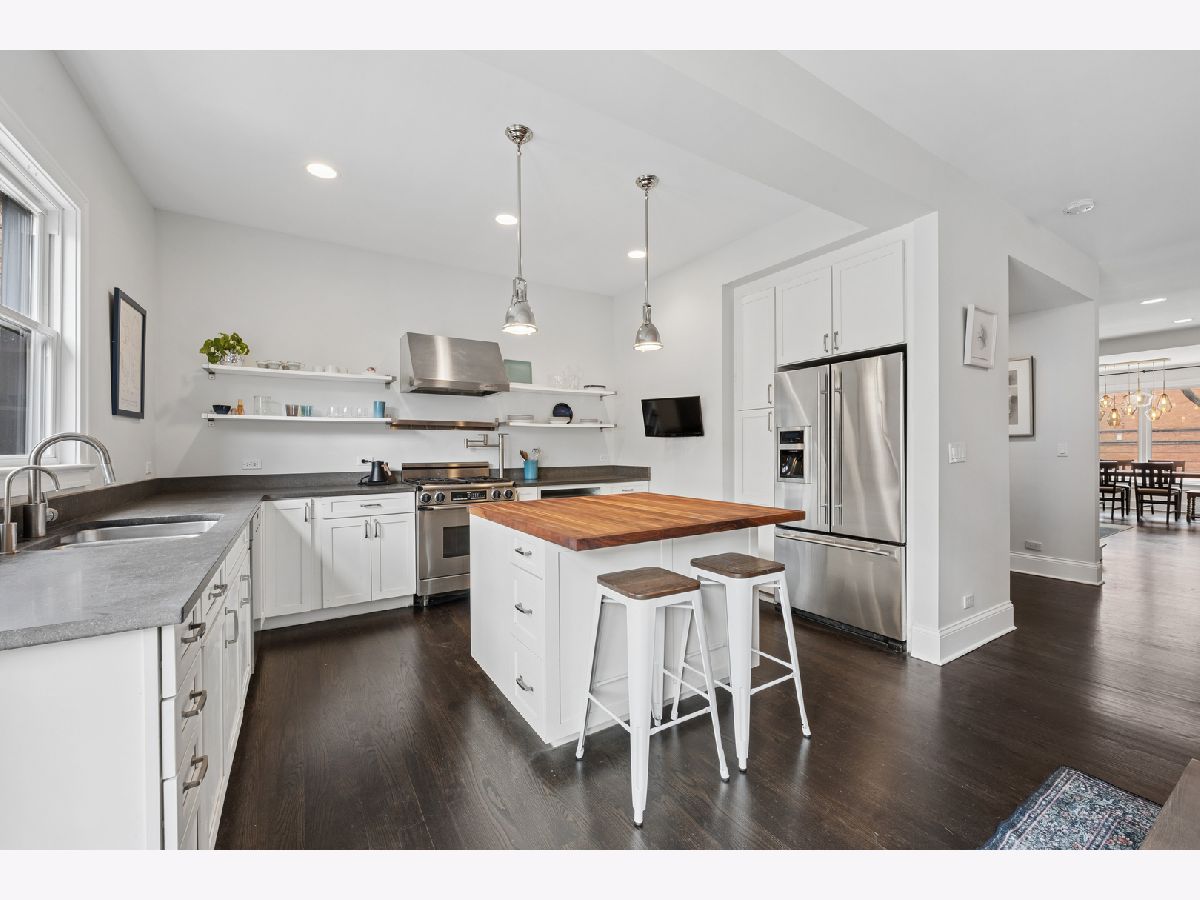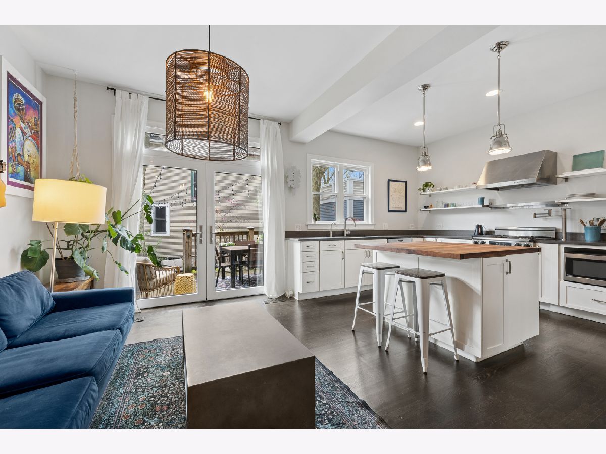 Beautifully renovated single-family home in the heart of Ravenswood. Charming exterior welcomes you into a thoughtfully designed main level featuring a spacious living area with a decorative fireplace and a well-appointed kitchen with stone countertops, butcher block island, white cabinets, open shelving, upgraded stainless steel appliances and a great flow to a dining area/family room just off the kitchen ideal for everyday living and entertaining. Step out to a deck overlooking a beautiful yard with mature trees, creating a true outdoor retreat. The second level features a primary suite with walk-in closet, large walk-in shower, double sinks, Carrera marble, Kohler fixtures, and additional storage, along with two additional bedrooms and a full bath. The top floor offers a flexible fourth bedroom, office, or bonus space. Full basement includes a family room, half bath, laundry, and ample storage. Extensively updated with newer plumbing, electrical, HVAC, roof, windows, insulation, sump pump, and sewer. Includes two side-by-side deeded garage parking spaces across the street. Close to Lincoln Square, Andersonville, Wrigleyville, Metra, Red Line, and Lake Shore Drive.