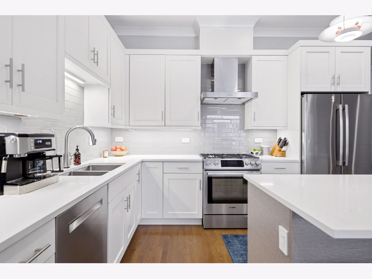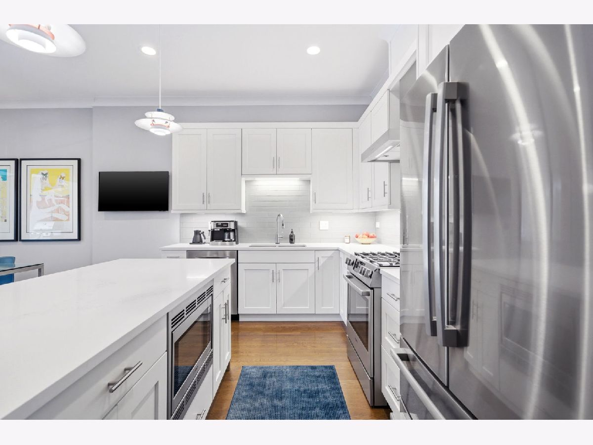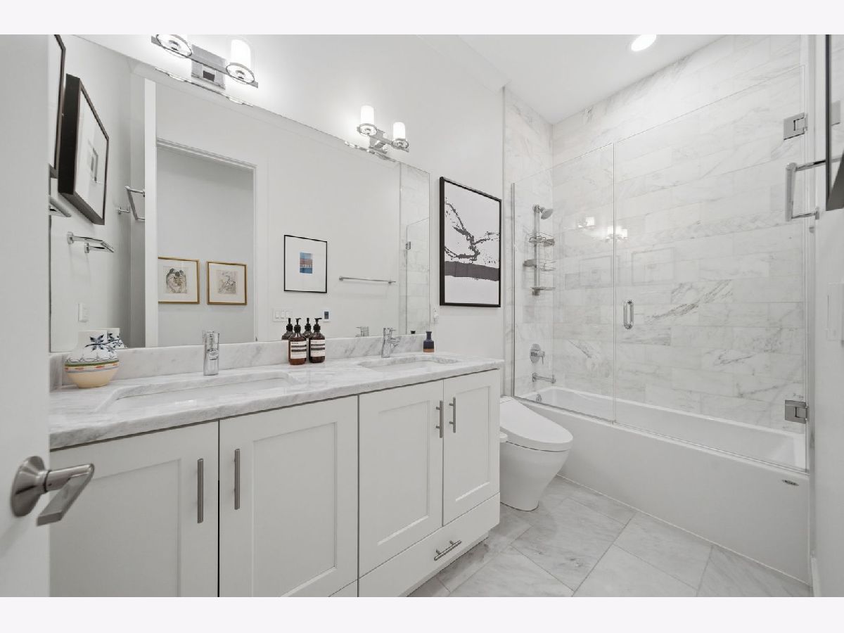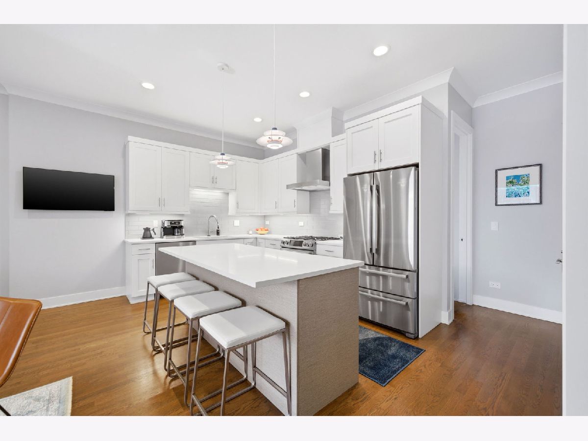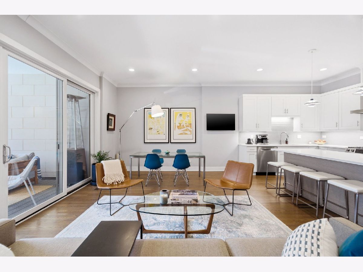 This is the one you've been waiting for! Incredible opportunity to own this stunning, 2400 square foot newer construction 3BR/2.5BA duplex in the heart of Andersonville, one of Chicago's most vibrant and exciting neighborhoods! This meticulous and modern 24 foot wide south facing home is better than new construction, featuring a generously sized main living/dining space that opens out to a massive 240 sq. ft. covered terrace with composite wood decking, ideal for entertaining, relaxing, grilling, and soaking in the sunlight. Beautiful open white kitchen has quartz counters, lrg breakfast bar, stainless Bosch appliances, undermount lighting and glass subway tiled backsplash. The large primary suite is conveniently located on the main floor and includes a walk-in organized closet, double quartz vanities, a walk-in shower, Grohe & Toto fixtures & heated flooring. This level is complete with a powder room, coat closet & pantry. Downstairs, you will be blown away by an absolutely enormous, extra wide family room with 10 foot ceilings, flooded with light! In this space, enjoy relaxing on an oversized sofa watching the latest latest Netflix hit, entertaining by the built-in wet bar with wine cooler & trendy open shelving, or using the space for a multitude of other things. The lower level also includes equally sized 2nd & 3rd bedrooms with ample closets and a sleek, white bathroom with double quartz vanity, quartz tiling and cozy heated floors. The full laundry room with size-by-side Maytag front loading washer & dryer complete this level. This fabulous home also boasts 8 foot doors throughout, extra storage in basement, and garage parking space. Incredible A+ location on tree-lined street, close to Red Line Train/bus lines, and right around the corner from all of the exciting restaurants, coffee shops, art galleries, boutiques, nightlife and so much more that Andersonville has to offer!