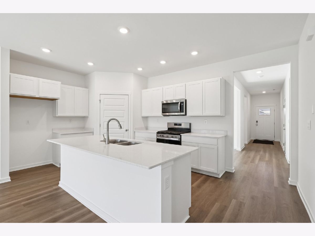 Picture yourself near Downtown Plainfield, IL living in a beautiful new home at 14708 S Azalia Circle in our new Greenbriar Community. This spacious Dover plan is move-in ready NOW! This Freedom home includes lawn service, snow removal, sod front and back, landscape and covered back patio to relax on. Located in Plainfield North School District 202. The Dover offers 1,956 square feet of living space with 3 bedrooms, 2 full baths, 9-foot ceilings and luxury, easy-to-maintain, scratch and water-resistant vinyl plank flooring. When you first enter the home, you see the second bedroom and full bath located up front for privacy. Walking down the hall, is the garage entry with nice landing space to take off your shoes, hang up your coat in the closet adjacent to the third bedroom. Across the hall is the flex space which is suitable for an office, hobby room, sitting room, formal dining room or even guest sleeping space Next you will walk into the open concept luxury kitchen/great room with deluxe quartz countertops, 42" designer cabinets with crown molding and soft-close feature. Large walk-in pantry features shelving for your storage needs and over-sized island with overhang is great for kitchen prep or entertaining and has stainless steel sink with disposal. Conveniently located off to the side of the kitchen in the large laundry room. Enjoy your private get away with your spacious primary bedroom/en-suite bathroom with a raised height dual sink, quartz top vanity, and walk-in shower with and clear glass shower doors with transom window above for natural light with huge walk-in closet. All Chicago homes include our America's Smart Home Technology. Photos are of a similar model home. Actual home built may vary.