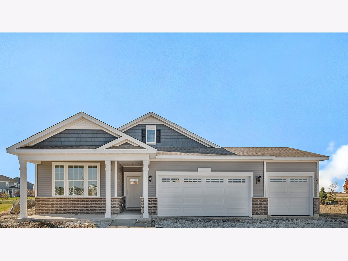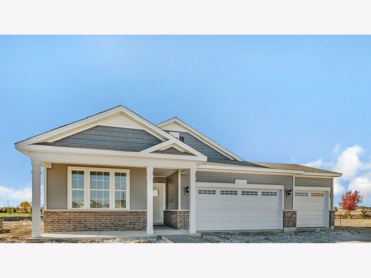 Envision yourself at 14712 S Azalia Circle in Plainfield, Illinois, a beautiful new home for sale in Greenbriar Freedom Ranch community. This ranch home is ready for a quick move-in! Scenic homesite with oversized yard backs to open ground and includes fully sodded yard and covered back patio. This Clifton plan offers 1,863 square feet of living space with a flex room, 2 bedrooms, 2 baths, and 9-foot ceilings with a 3-car garage. When you first enter the home, there is a secondary bedroom, full bath, and flex room with French doors. Down the hall, you will walk into the open concept great room and kitchen. The kitchen layout includes a large island with an overhang for stools, 42-inch dark designer cabinetry with crown molding and soft close drawers. Additionally, the kitchen features a walk-in pantry, modern stainless-steel appliances, quartz countertops, and easy-to maintain luxury vinyl plank flooring. Enjoy your private get away with your spacious primary bedroom and en suite bathroom with a raised height dual sink, quartz top vanity, and walk-in shower with clear glass shower doors. All Chicago homes include our America's Smart Home Technology. Exterior photo of actual home under construction. Interior photos are of similar home and model home. Actual home built may vary.