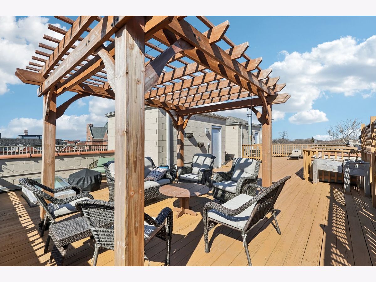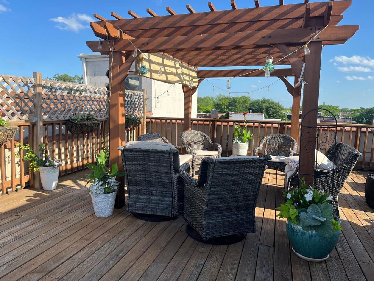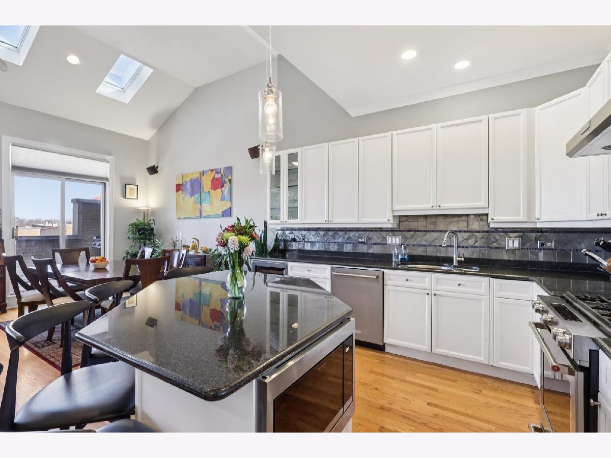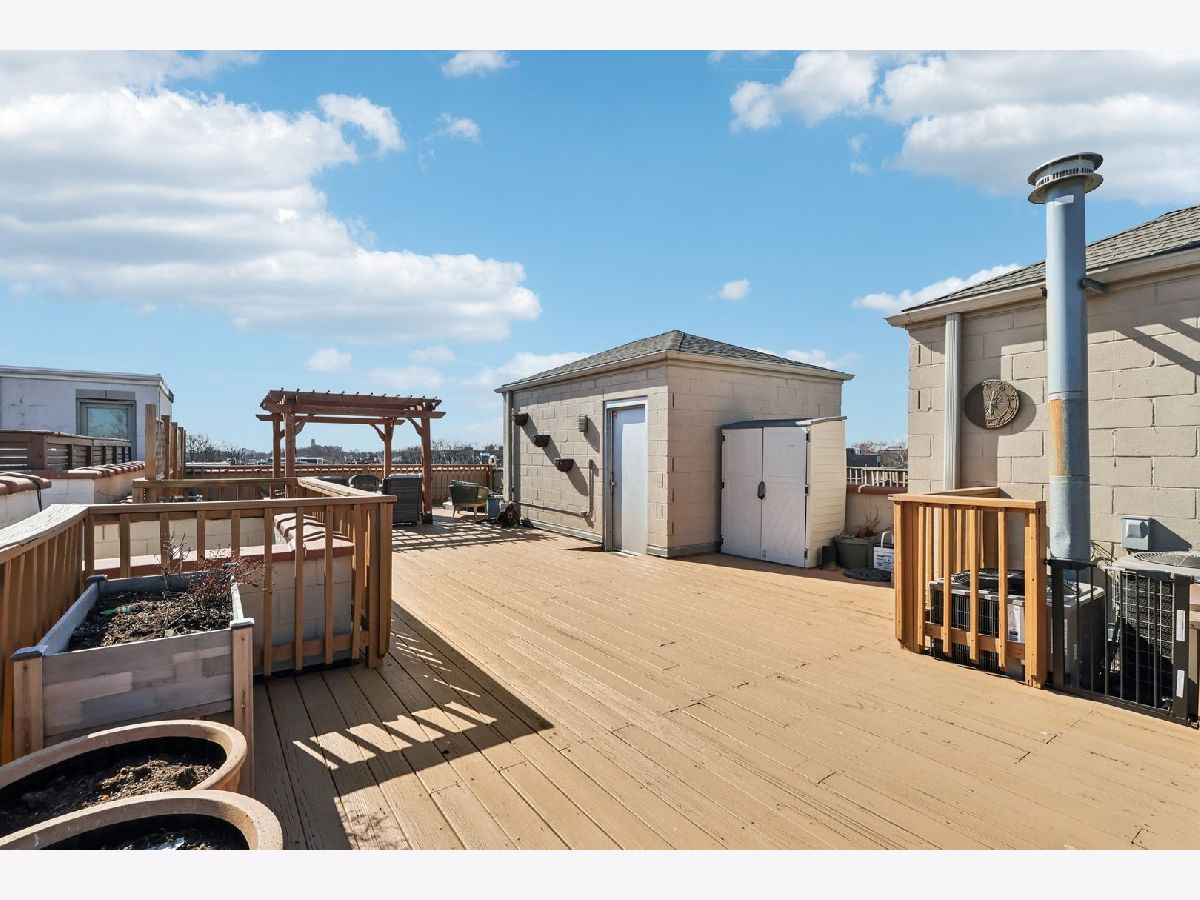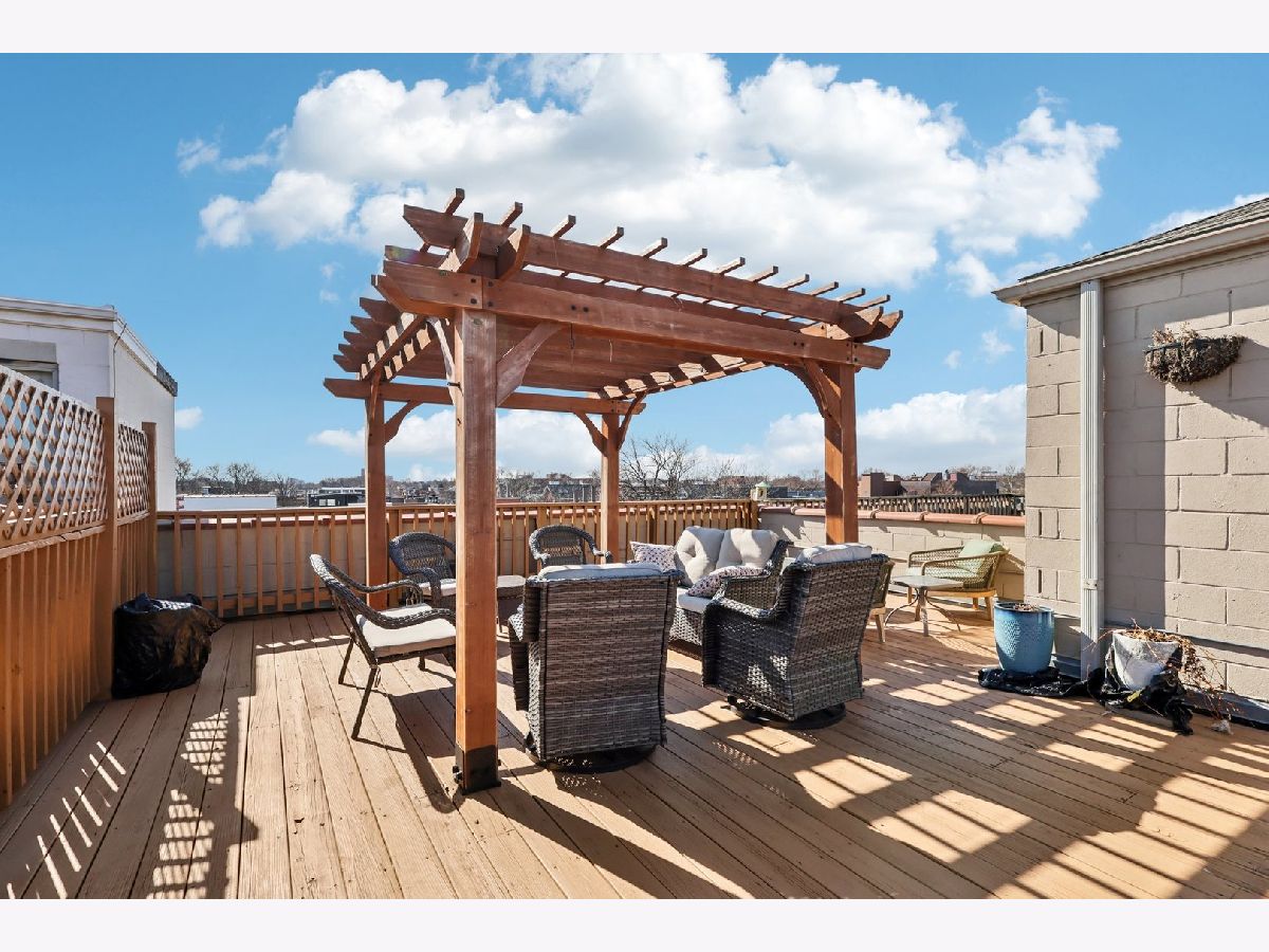 Bright and beautifully updated 3 bed / 2 bath condo in a boutique, elevator building, offering 1,800 sq ft of open-concept living in the heart of Chicago's vibrant North Side! This spacious home features hardwood floors, soaring ceilings, great natural light, and a thoughtfully designed layout perfect for both everyday living and entertaining. The open kitchen is equipped with stainless steel appliances, including a brand-new KitchenAid range and hood (March 2024), and flows seamlessly into the expansive living and dining area with private balcony access. The primary suite offers a second private balcony, ample closet space, and a well-appointed en-suite bath. Two additional bedrooms feature new carpet (Oct. 2025). Additional updates include LG washer/dryer (Oct. 2024), Bryant HVAC (2023), and insulated Hunter Douglas top-down/bottom-up window treatments (2025) for enhanced comfort and efficiency. In-unit laundry, speaker system, and excellent lighting throughout complete the package. The private rooftop deck is truly incredible-now enhanced with a new pergola (June 2024)-offering expansive city views and ideal space for relaxing or entertaining. Recent building improvements include new DoorBird video/intercom system (2023), new roof over garages (2022), masonry work (2022), newly painted lobby (2024), rebuilt asphalt driveway (Summer 2025), and replacement roofing on all garage units. Incredibly convenient location with excellent transit access, close to dining, shopping, and neighborhood amenities. A rare combination of space, updates, outdoor living, and strong building upkeep-don't miss this opportunity! Located in the Blaine School District.