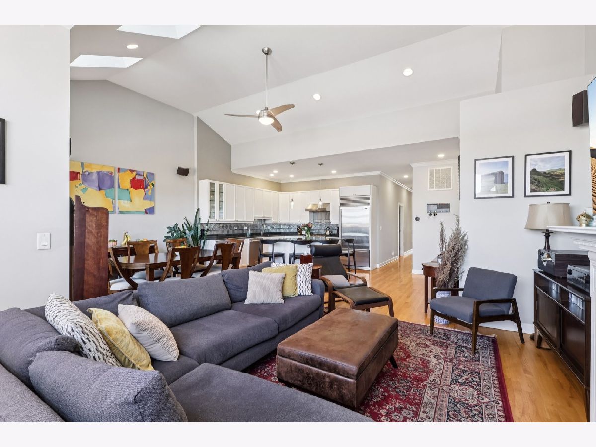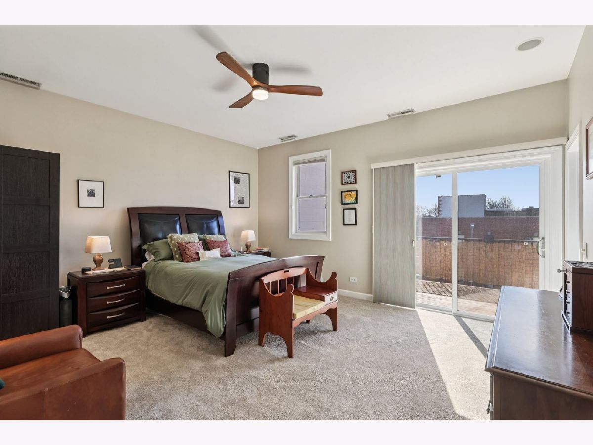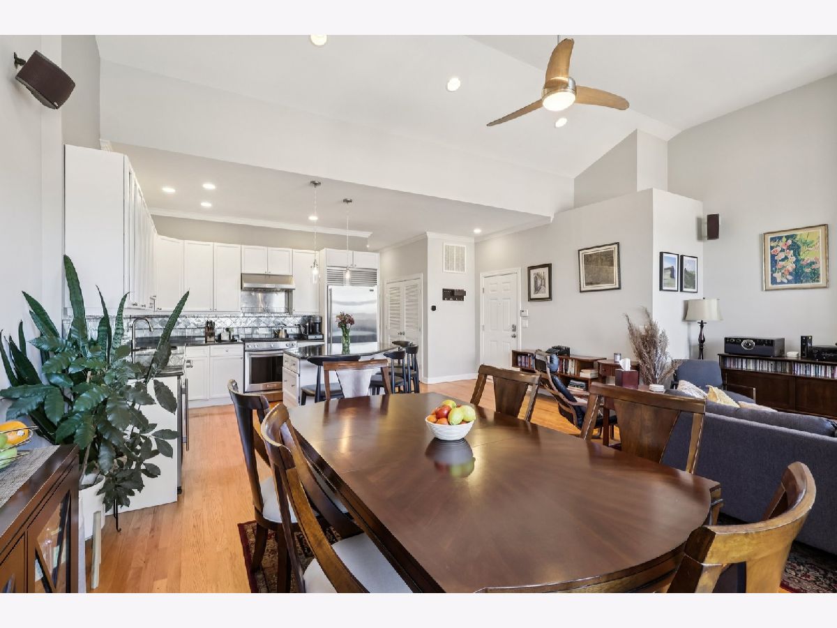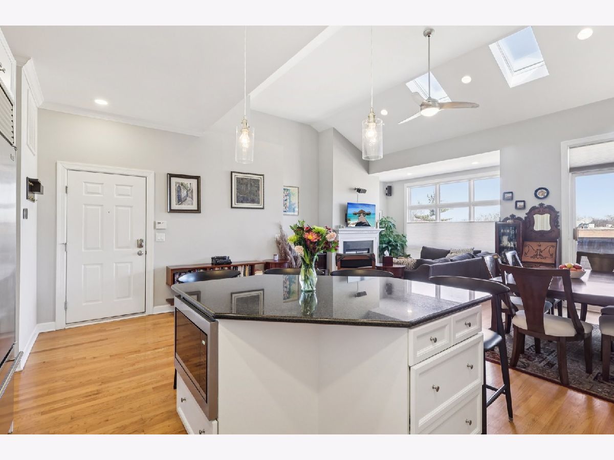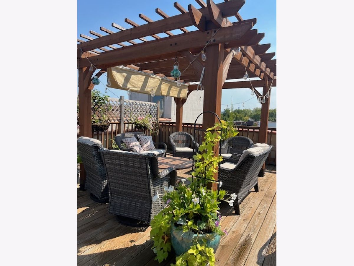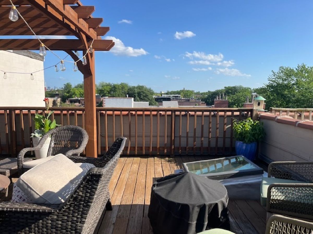 Bright and beautifully updated 3 bed / 2 bath condo in a boutique, elevator building, offering 1,800 sq ft of open-concept living in the heart of Chicago's vibrant North Side! This spacious home features hardwood floors, soaring ceilings, great natural light, and a thoughtfully designed layout perfect for both everyday living and entertaining. The open kitchen is equipped with stainless steel appliances, including a brand-new KitchenAid range and hood (March 2024), and flows seamlessly into the expansive living and dining area with private balcony access. The primary suite offers a second private balcony, ample closet space, and a well-appointed en-suite bath. Two additional bedrooms feature new carpet (Oct. 2025). Additional updates include LG washer/dryer (Oct. 2024), Bryant HVAC (2023), and insulated Hunter Douglas top-down/bottom-up window treatments (2025) for enhanced comfort and efficiency. In-unit laundry, speaker system, and excellent lighting throughout complete the package. The private rooftop deck is truly incredible-now enhanced with a new pergola (June 2024)-offering expansive city views and ideal space for relaxing or entertaining. Recent building improvements include new DoorBird video/intercom system (2023), new roof over garages (2022), masonry work (2022), newly painted lobby (2024), rebuilt asphalt driveway (Summer 2025), and replacement roofing on all garage units. Incredibly convenient location with excellent transit access, close to dining, shopping, and neighborhood amenities. A rare combination of space, updates, outdoor living, and strong building upkeep-don't miss this opportunity! Located in the Blaine School District.