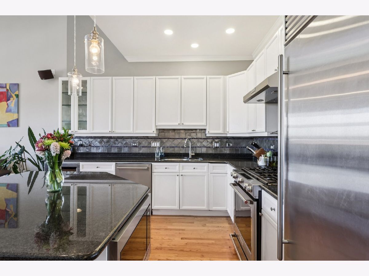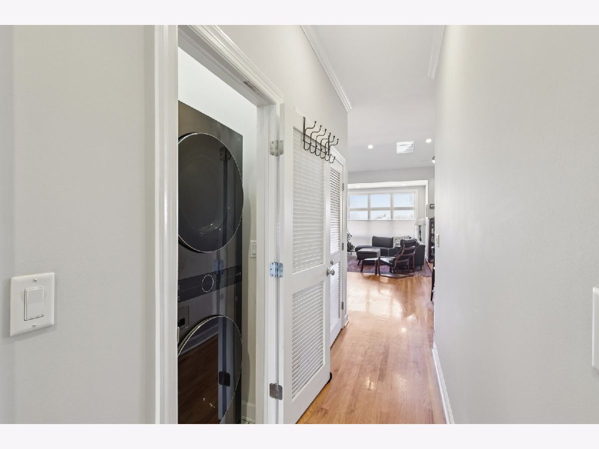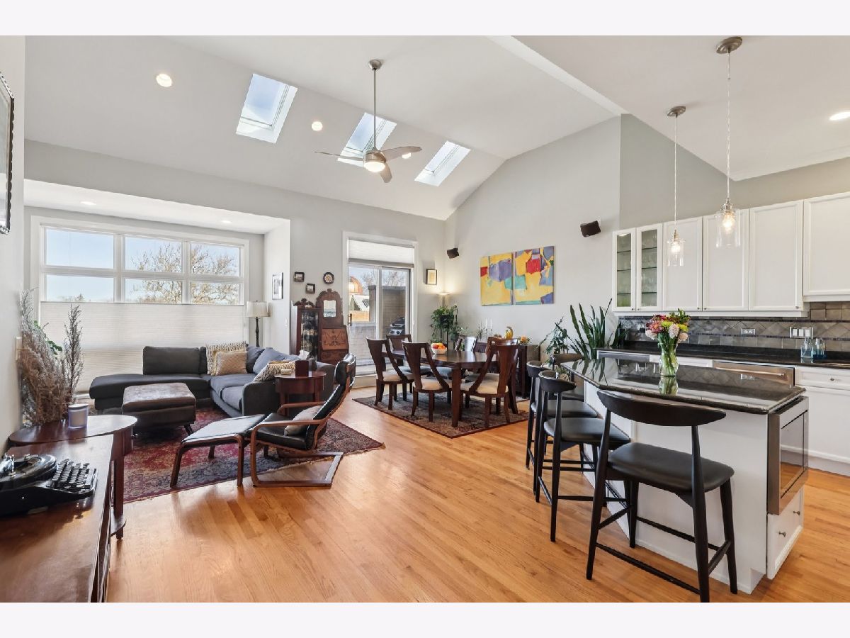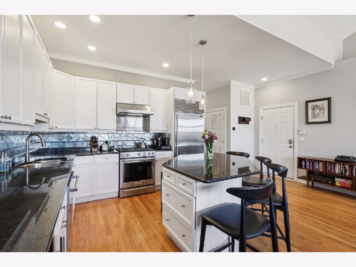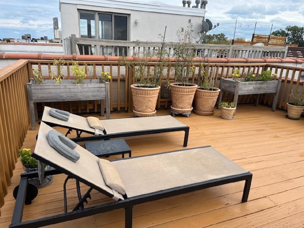 Bright and beautifully updated 3 bed / 2 bath condo in a boutique, elevator building, offering 1,800 sq ft of open-concept living in the heart of Chicago's vibrant North Side! This spacious home features hardwood floors, soaring ceilings, great natural light, and a thoughtfully designed layout perfect for both everyday living and entertaining. The open kitchen is equipped with stainless steel appliances, including a brand-new KitchenAid range and hood (March 2024), and flows seamlessly into the expansive living and dining area with private balcony access. The primary suite offers a second private balcony, ample closet space, and a well-appointed en-suite bath. Two additional bedrooms feature new carpet (Oct. 2025). Additional updates include LG washer/dryer (Oct. 2024), Bryant HVAC (2023), and insulated Hunter Douglas top-down/bottom-up window treatments (2025) for enhanced comfort and efficiency. In-unit laundry, speaker system, and excellent lighting throughout complete the package. The private rooftop deck is truly incredible-now enhanced with a new pergola (June 2024)-offering expansive city views and ideal space for relaxing or entertaining. Recent building improvements include new DoorBird video/intercom system (2023), new roof over garages (2022), masonry work (2022), newly painted lobby (2024), rebuilt asphalt driveway (Summer 2025), and replacement roofing on all garage units. Incredibly convenient location with excellent transit access, close to dining, shopping, and neighborhood amenities. A rare combination of space, updates, outdoor living, and strong building upkeep-don't miss this opportunity! Located in the Blaine School District.