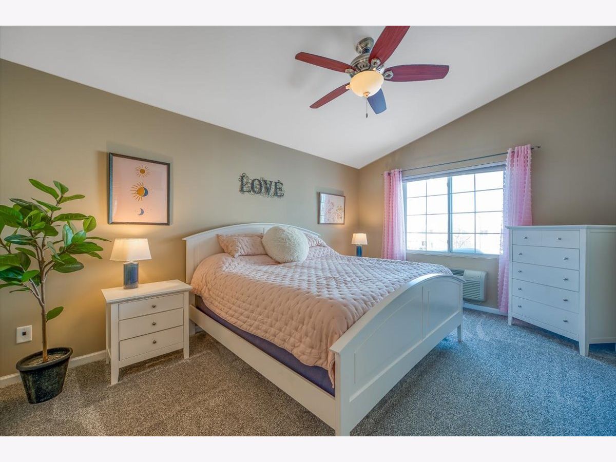 Welcome to 148 Bertram Dr Unit P in Yorkville's quiet and friendly Bristol Bay community-where easy living and comfort come together in one perfect place. This bright and spacious end-unit condo offers 2 bedrooms, 2 full bathrooms, and 1,150 square feet of ranch-style living all on the upper level. With its own private entrance and no one above you, this home feels like a peaceful retreat from the moment you walk in. Vaulted ceilings and an open-concept layout make the space feel light and airy, connecting the living room, dining area, and kitchen seamlessly. The kitchen is both functional and stylish with 42" maple cabinets, a breakfast bar and a pantry closet. Engineered hardwood flooring (installed in 2019) runs through the main living areas, while both bedrooms are comfortably carpeted with newer carpet, walk-in closets, and ceiling fans. The primary suite includes a private full bath, while the second bedroom offers generous space and easy access to the second full bath. Step outside to your private balcony with room to relax and enjoy the view of the open field beyond, plus a convenient attached storage room. A full-size stackable washer and dryer (new in 2020) are included, along with central air and thoughtful touches like updated light fixtures and white trim throughout. This home is in a premium location with lots of windows with views of open space as well as beautiful lighted pathways. Great location within this community. This home also includes a detached 1-car garage and an assigned exterior parking space. The HOA covers water, garbage, snow removal, lawn care, exterior maintenance, and access to the fantastic clubhouse amenities-outdoor pool, fitness room, basketball and volleyball courts, party room, paved paths, parks, and playgrounds. Located just minutes from I-88 and within the top-rated Yorkville School District 115, this move-in ready home offers low-maintenance living in a vibrant and amenity-rich community. It's the perfect place to settle in, relax, and start your next chapter.
