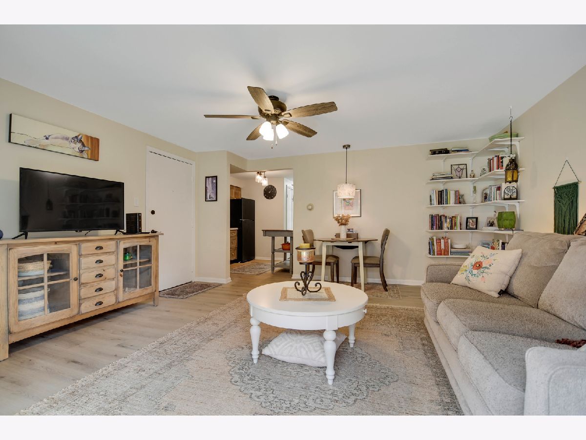You simply must see this convenient and budget-friendly first-floor condo featuring a completely move-in-ready, tastefully updated interior. Step inside to a well-designed, neutrally decorated space with modern vinyl plank flooring and updated white trim and doors throughout. Enjoy the relaxing living room with a newer sliding glass door leading to a barbecue-ready patio overlooking a quiet courtyard. The updated kitchen features stylish driftwood-tone cabinetry, newer refrigerator, stainless steel oven/range and microwave, a movable island, and a convenient pantry closet. The extra-spacious bedroom offers newer carpeting, a sitting/office/computer nook, and double doors opening to a walk-in closet. The sparkling clean bathroom has been refreshed with a newer vanity and medicine cabinet. Laundry is incredibly convenient with the laundry room located on the same level, literally just outside the back door. Includes assigned parking space #53 plus multiple visitor parking spaces. Also features a newer air-conditioning unit with remote control. The monthly HOA covers water, sewer, heat, cooking gas, garbage, and exterior maintenance. Easy to buy and to see to schedule your viewing before it's gone!