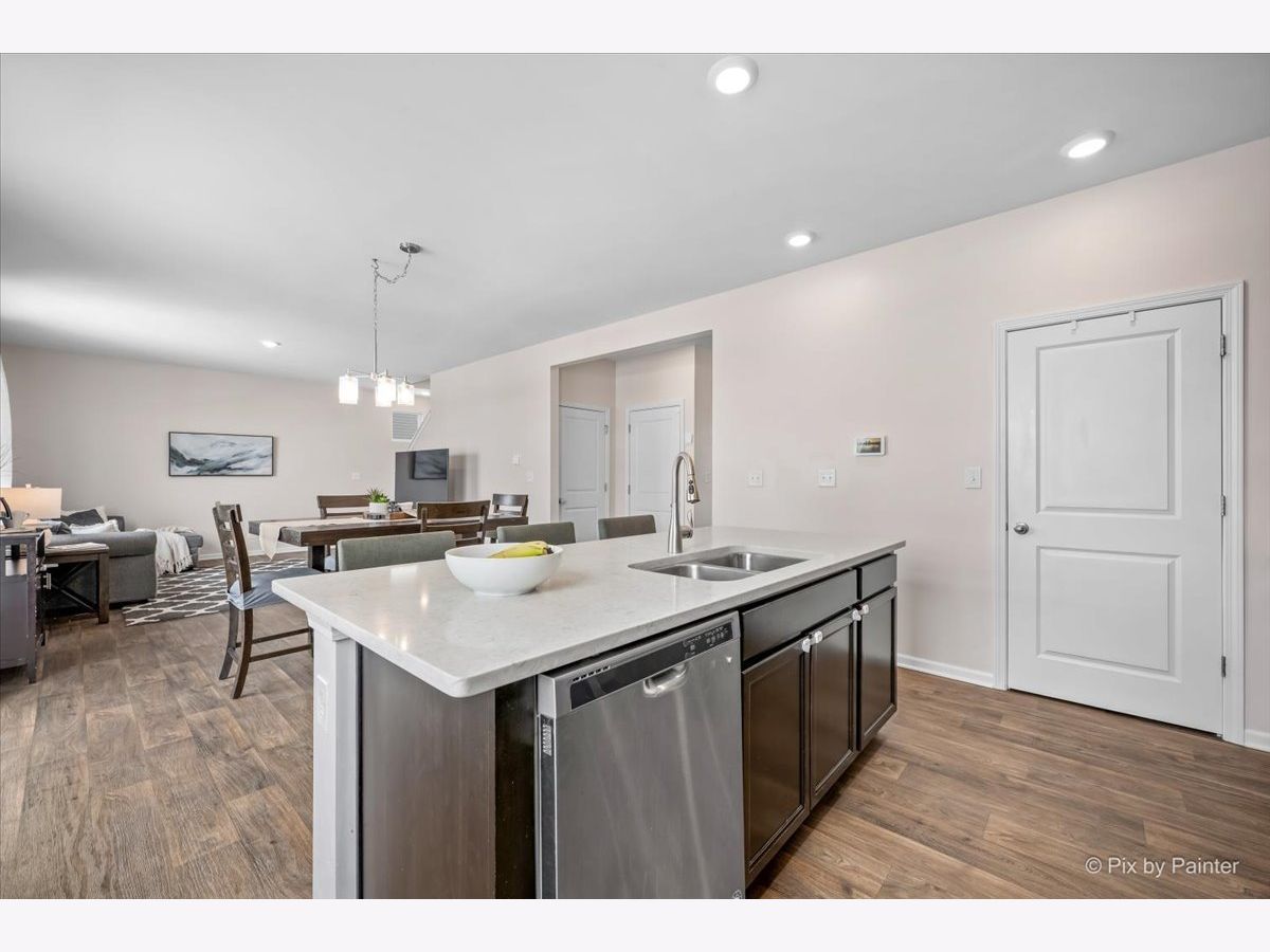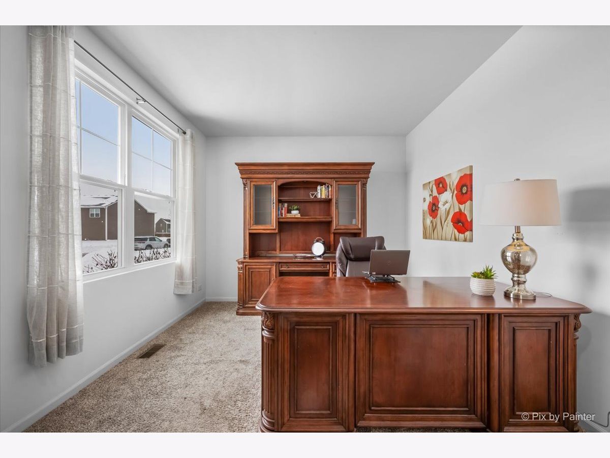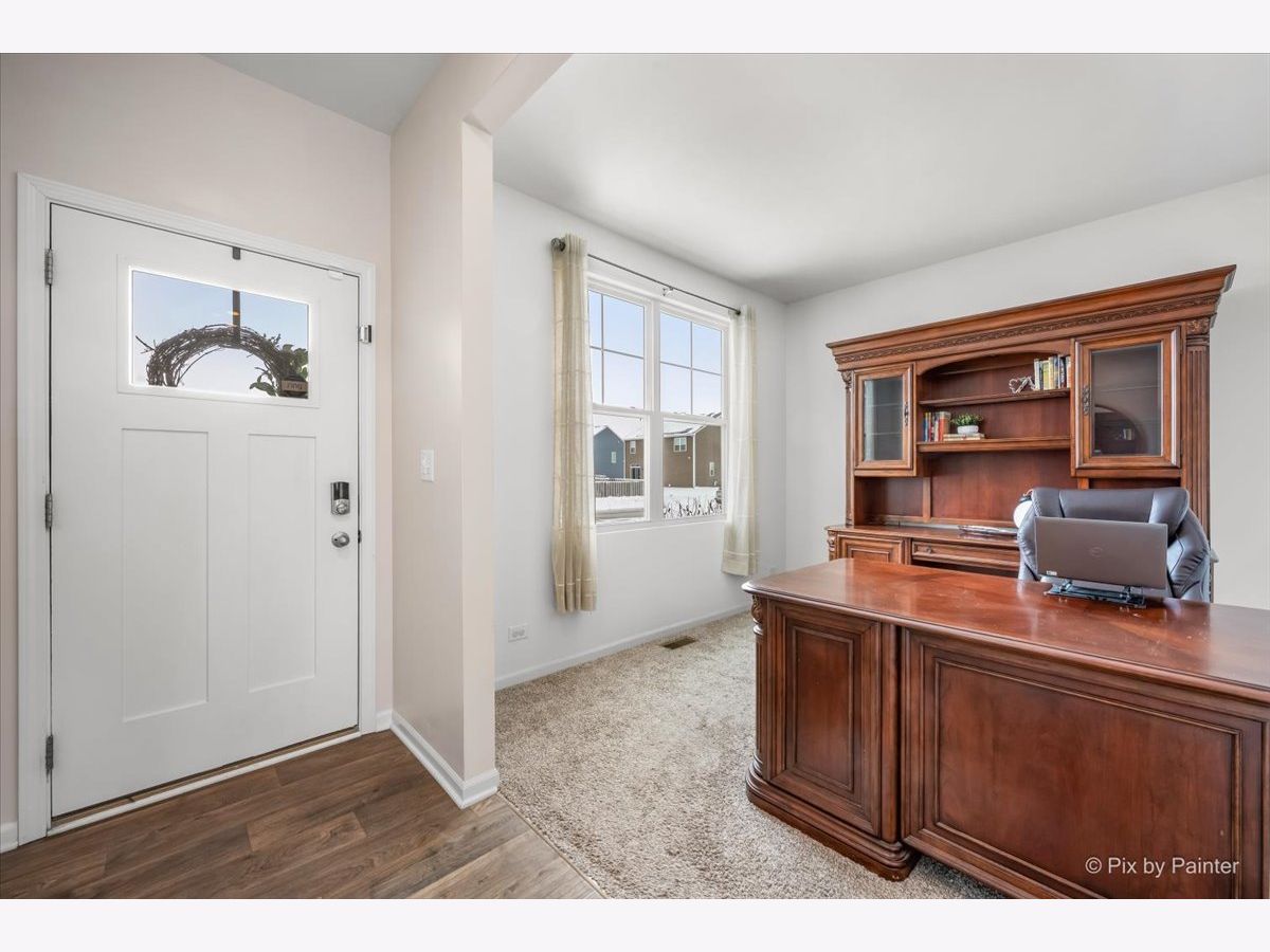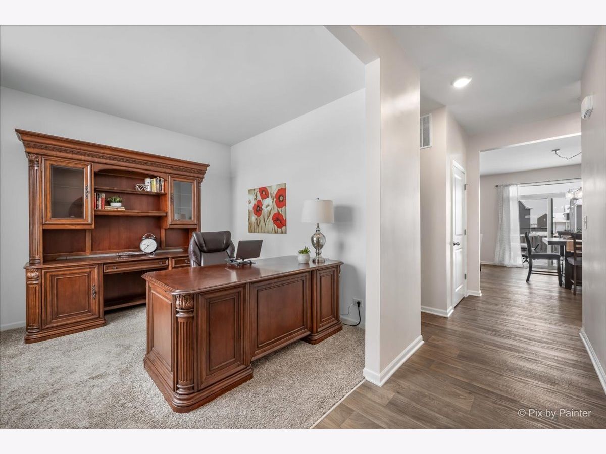 You will love this beautiful Pendleton model, offering 9-foot ceilings on the main level, a full basement, and a versatile first-floor flex room ideal for a home office or den. Set on a premium fenced lot backing to the prairie path, the home provides a spacious patio perfect for outdoor entertaining. The open-concept layout is an entertainer's dream, with a bright, airy kitchen overlooking the dining and living areas. The kitchen features a large island with seating, stunning quartz countertops, espresso cabinetry, and a generous pantry. Upstairs, the oversized primary suite offers a walk-in closet and a deluxe bath with a walk-in shower and double-bowl vanity. The second floor also includes two additional bedrooms, a full bath, convenient laundry room, and a large loft ideal for a playroom, media space, or cozy sitting area. This home is equipped with America's Smart Home Technology package, allowing you to monitor and control your home from anywhere using your smartphone or computer. Additional highlights include a tankless water heater and HEPA air filtration system. Located in desirable Pingree Grove just minutes from I-90, residents enjoy miles of walking paths, a clubhouse, parks, workout facility, and the convenience of a nearby charter school.