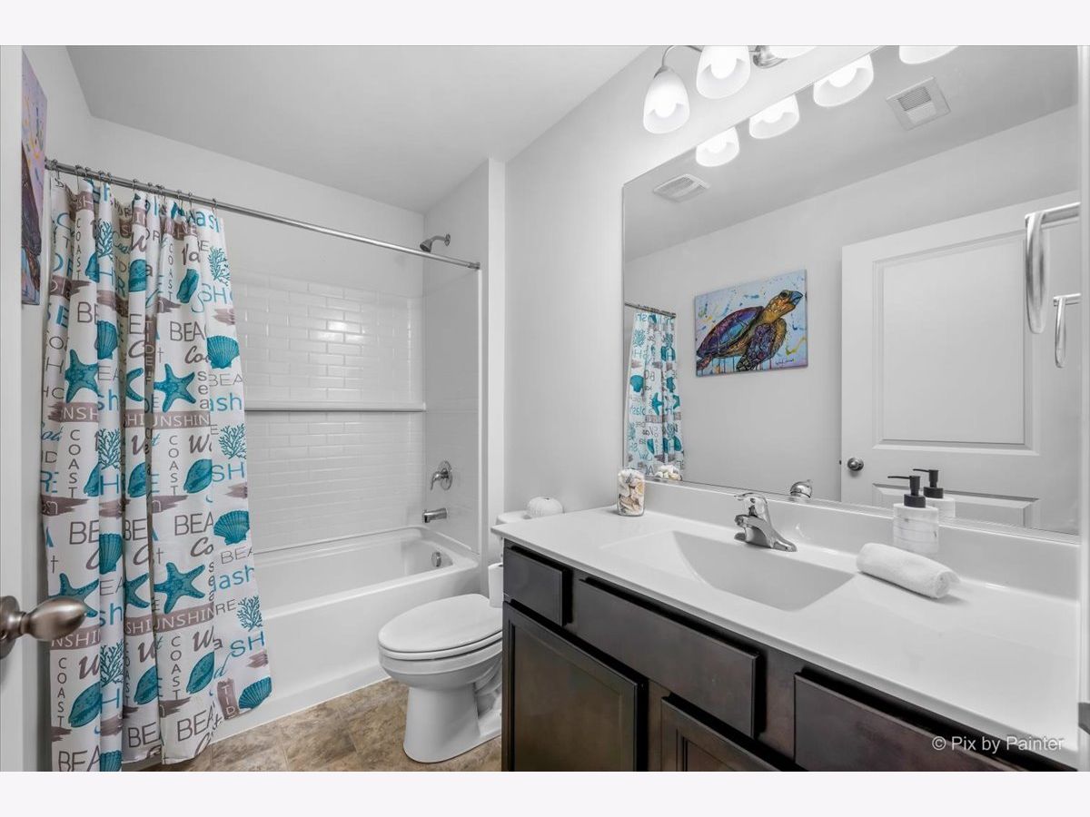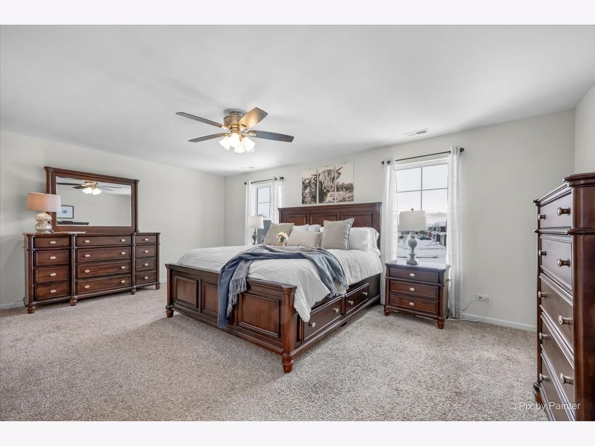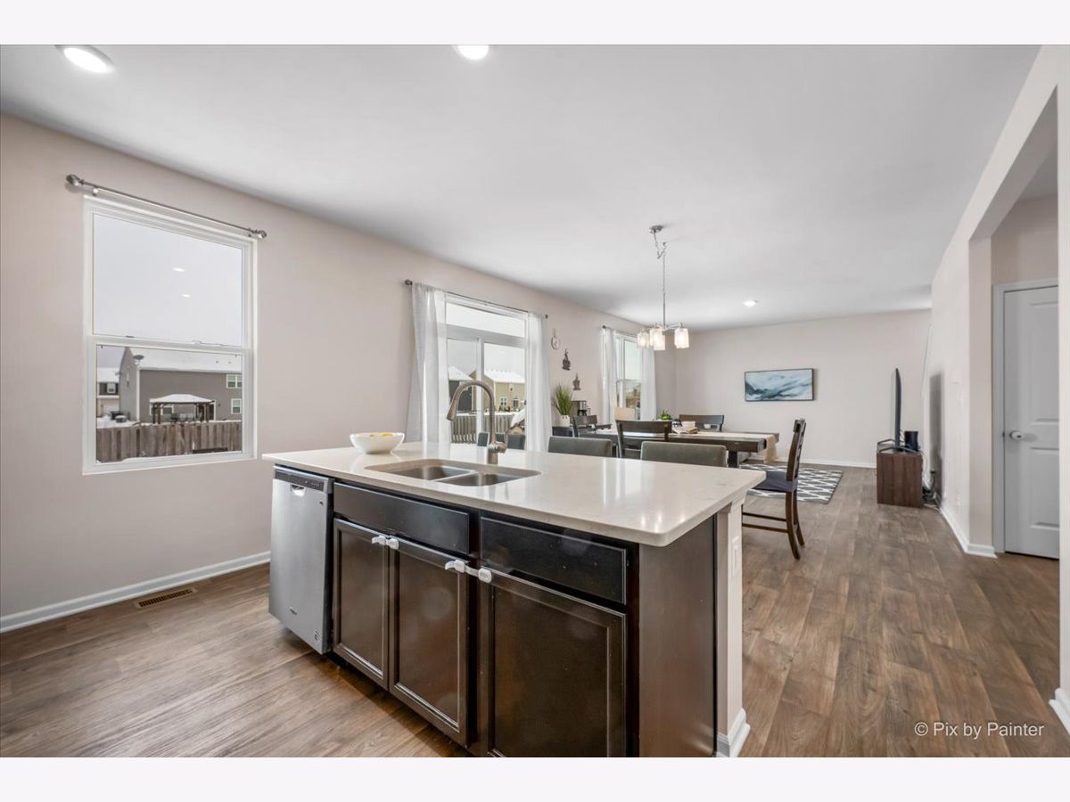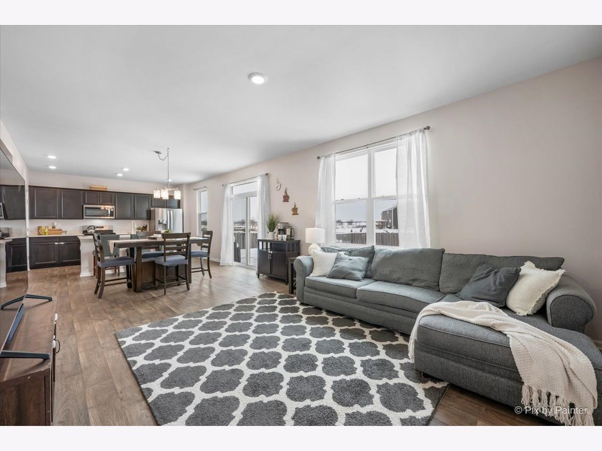You will love this beautiful Pendleton model, offering 9-foot ceilings on the main level, a full basement, and a versatile first-floor flex room ideal for a home office or den. Set on a premium fenced lot backing to the prairie path, the home provides a spacious patio perfect for outdoor entertaining. The open-concept layout is an entertainer's dream, with a bright, airy kitchen overlooking the dining and living areas. The kitchen features a large island with seating, stunning quartz countertops, espresso cabinetry, and a generous pantry. Upstairs, the oversized primary suite offers a walk-in closet and a deluxe bath with a walk-in shower and double-bowl vanity. The second floor also includes two additional bedrooms, a full bath, convenient laundry room, and a large loft ideal for a playroom, media space, or cozy sitting area. This home is equipped with America's Smart Home Technology package, allowing you to monitor and control your home from anywhere using your smartphone or computer. Additional highlights include a tankless water heater and HEPA air filtration system. Located in desirable Pingree Grove just minutes from I-90, residents enjoy miles of walking paths, a clubhouse, parks, workout facility, and the convenience of a nearby charter school.