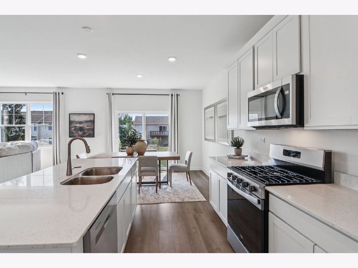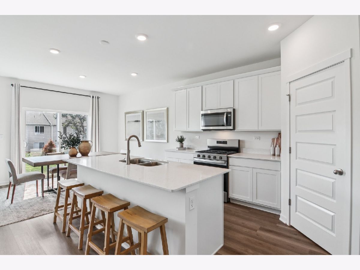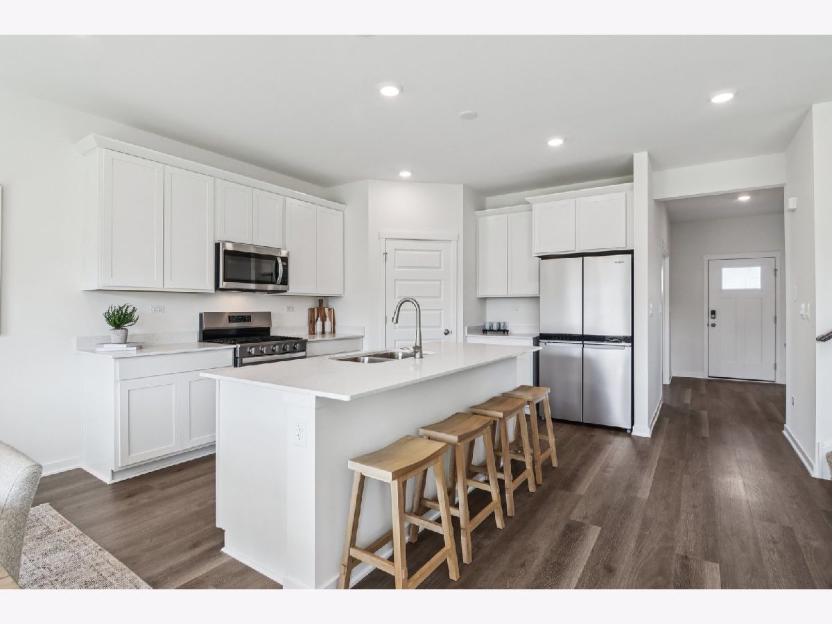 Discover yourself at 1482 Vintage Dr. Oswego, Illinois, a beautiful new home with impressive curb appeal including an inviting front porch located in our Sonoma Trails community. This home will be ready for SUMMER move in! The Henley plan offers 2,600 square feet of living space with 4 bedrooms, 2.5 baths, flex room, 9ft ceilings on first floor and a full basement. Entertaining will be easy in this open-concept kitchen family room and dining layout with a large island with an overhang for stools, 42-inch designer cabinetry with crown molding and soft close doors and drawers. Additionally, the kitchen features a walk-in pantry, modern stainless-steel appliances, sparkling quartz countertops, and easy-to-maintain luxury vinyl plank flooring throughout the first floor! Enjoy your private getaway with your large primary bedroom and en suite bathroom with a raised height dual sink, quartz top vanity, walk-in-shower with clear glass shower door. Convenient walk-in laundry room, 3 additional bedrooms with a full second bath and a linen closet complete the second floor. All Chicago homes include our America's Smart Home Technology. Exterior/interior photos of similar home, actual home as built may vary.