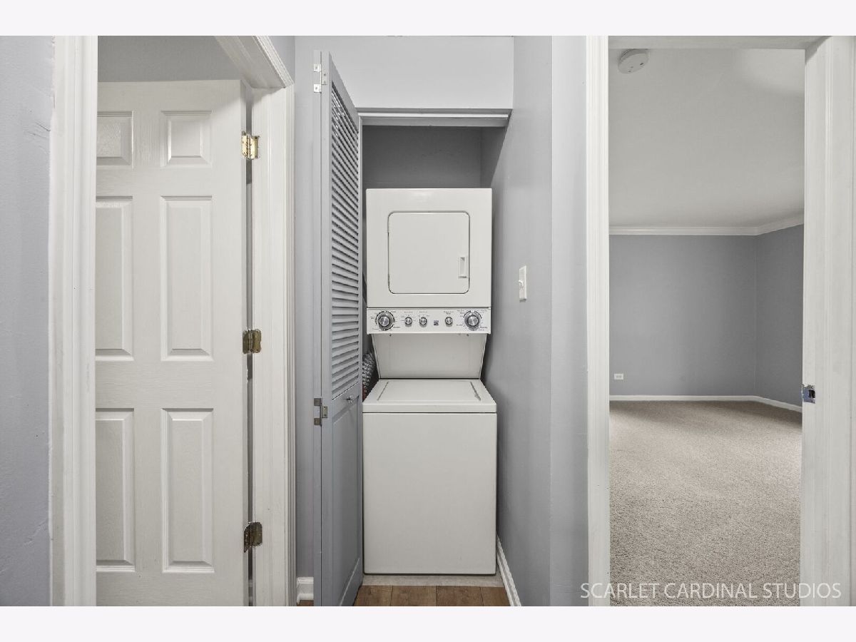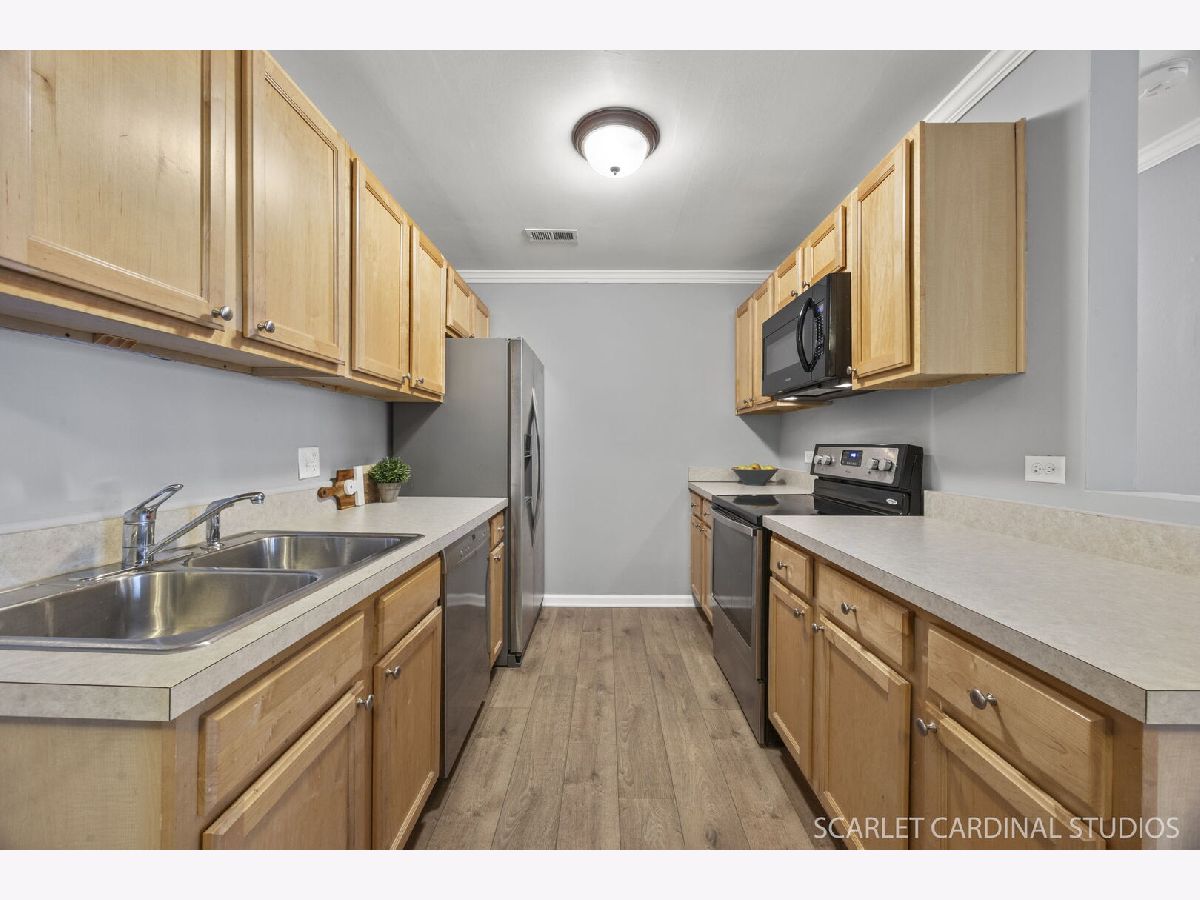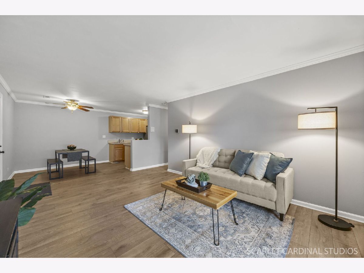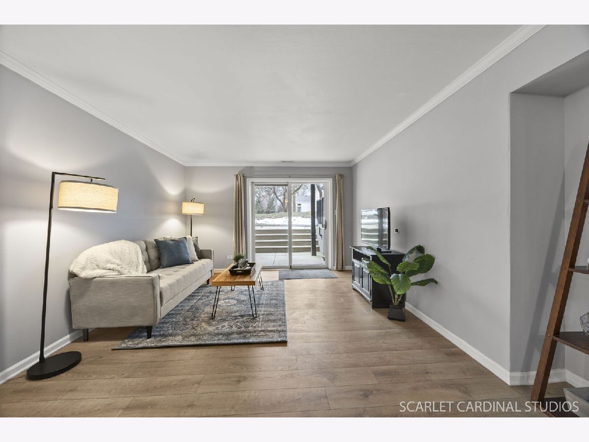 Say HELLO to this super darling freshly updated Condo in Wheaton! New wood laminate flooring is throughout the living room, dining room, kitchen and hall. Convenient in-unit laundry. Great bedroom and closet spaces. 2 full baths including a private primary ensuite with walk-in closet. Stainless Steel appliances and beautiful maple cabinetry. A sliding door provides garden level access to a covered concrete patio and easy access to Stonebridge Trail street parking - great for guests or unloading groceries, etc. Many great nearby places to explore such as Cantigny Park and Golf; Atten Park with trails and fields; Marianjoy Hospital grounds and paths; and Hurley Gardens. Terrific District 200 Schools. One assigned parking spot is included in the main lot marked B2 - just outside the main entrance. Abundant guest parking is also available. Association Fees include water and sewer and garbage. Water Heater 2024; Dishwasher 2022; Garbage Disposal 2025; Wood Laminate Flooring and Carpet 2025. Don't miss this great opportunity!