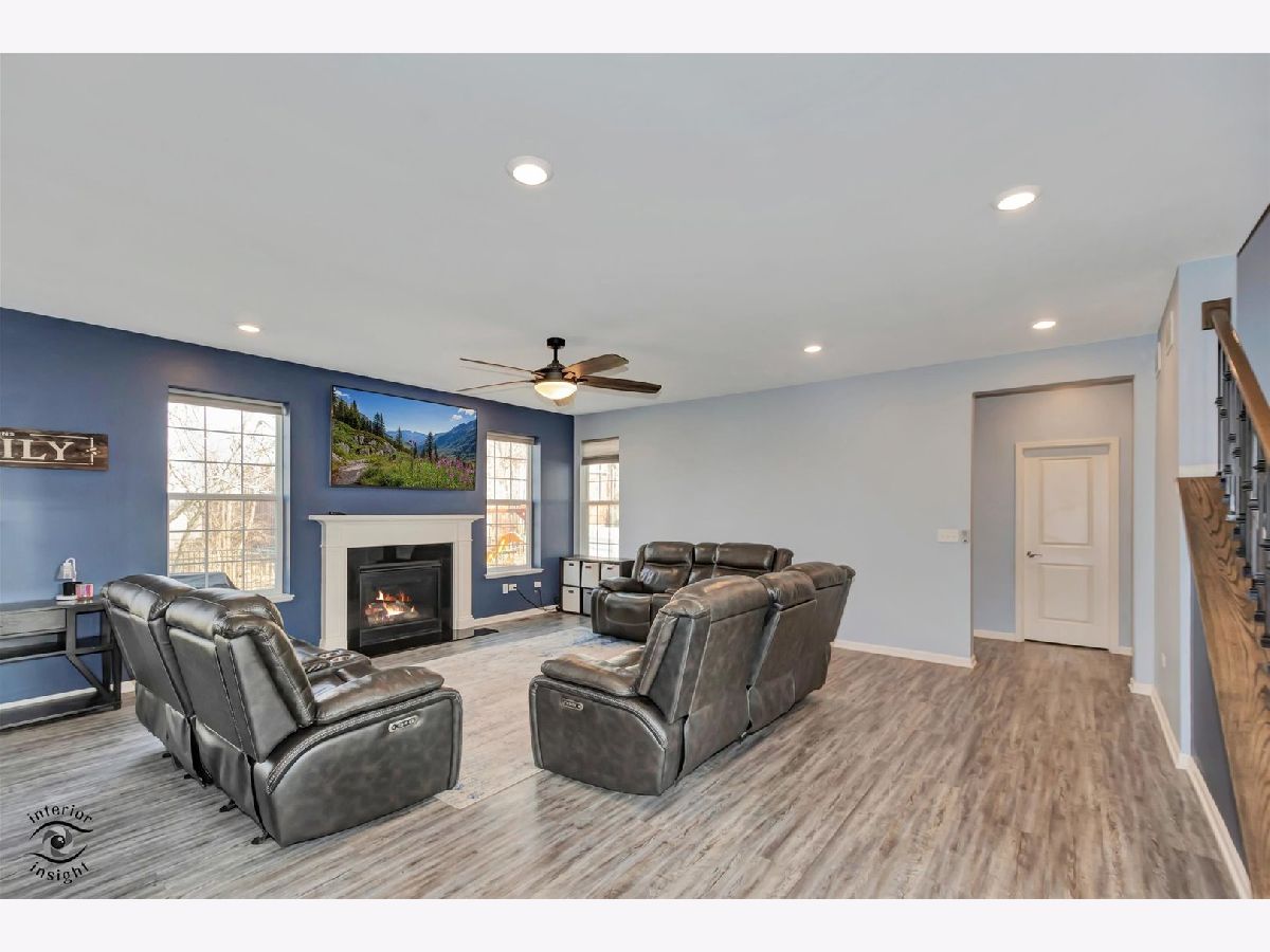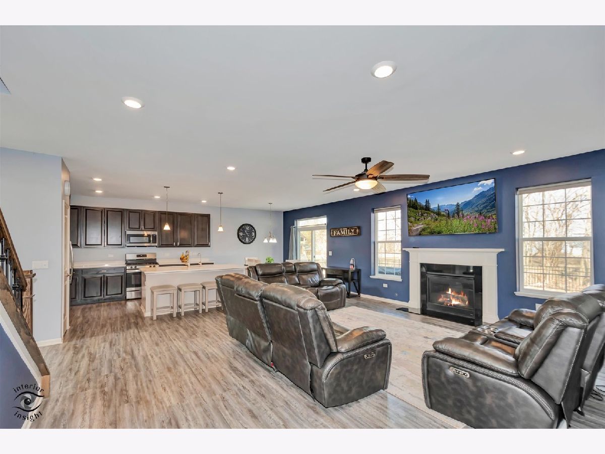 Welcome to this beautifully maintained 5 bedroom, 3.1 bath, 3 car garage, 3,263 SQFT Raleigh model home built in 2019, located in the highly sought-after Manhattan school district. As you walk up, a charming BRICK PAVER FRONT PATIO (2024) creates a welcoming outdoor sitting area and great curb appeal. Inside, you are greeted by a bright living room with VAULTED CEILINGS that flows seamlessly into the formal dining room. Straight ahead, the updated kitchen features stainless steel appliances, QUARTZ countertops, oversized cabinetry, pantry, can lighting, a large ISLAND, and a REVERSE OSMOSIS system with Culligan H2O purifier connected to both the sink and refrigerator (2024). The spacious EAT-IN area offers plenty of room for dining and provides direct access to the backyard. The kitchen opens to the family room with a GAS FIREPLACE, creating a functional open-concept layout ideal for everyday living and entertaining. The main level features 9 FT CEILINGS throughout and also includes a separate OFFICE that can easily function as a playroom or additional flex space. The laundry room is conveniently located on the main level with NEW WASHER AND DRYER (2025). The three-car garage is INSULATED and DRYWALLED (2021) and includes a TESLA CHARGER. Upstairs you will find 4 spacious bedrooms . The primary suite features TRAY CEILINGS, TWO WALK-IN closets, and an updated bathroom. One of the secondary bedrooms also includes its own walk-in closet. The staircase is accented with ROD IRON railings, adding a nice architectural detail. The FINISHED BASEMENT (2022) includes a BEDROOM, FULL BATHROOM, and open flex space, currently used by the sellers as an IN-LAW SUITE. The fully FENCED in yard features a large PATIO, GAS LINE for the grill, and a NEW SWING SET (2025). Updates include: fence (Spring 2022), basement finish with in-law suite and full bath (Spring 2022), garage insulated and drywalled (Dec 2021), front brick patio (Spring 2024), Culligan H2O purification system for sink and refrigerator (2024), playset (2025), powder room vanity (Fall 2025), office built-in desk (2022), dishwasher (2025), washer and dryer (2025), and a grill gas hardline. This home offers modern construction, tons of space, thoughtful updates, and a highly functional layout in a location known for excellent schools and strong community appeal.